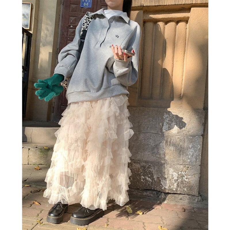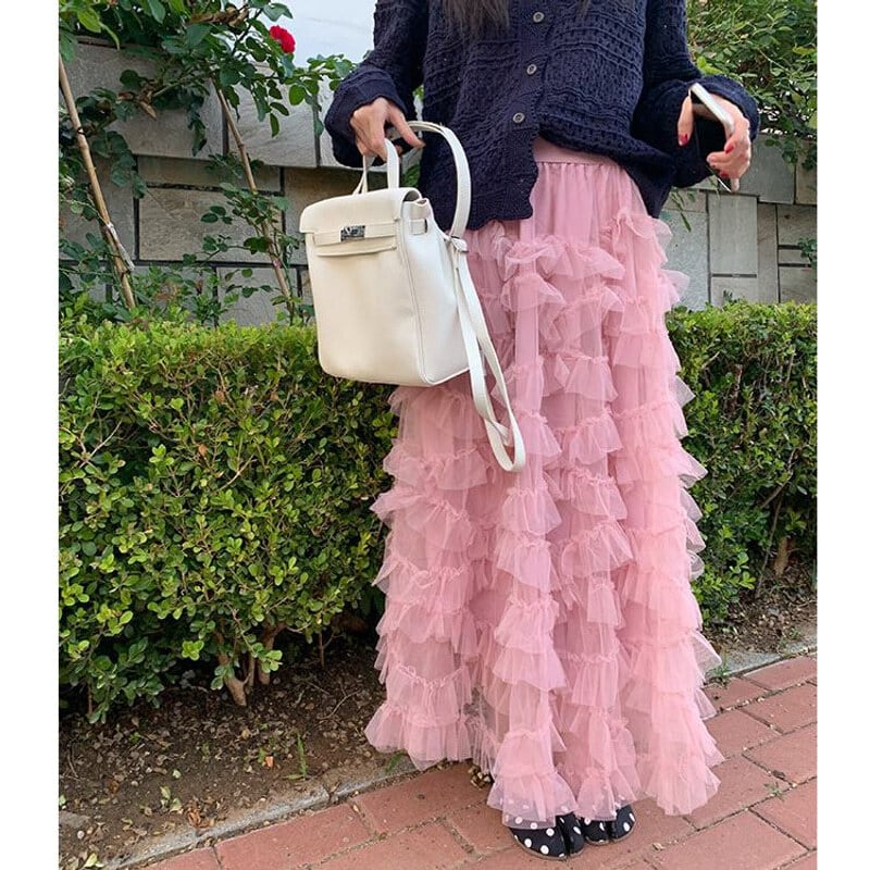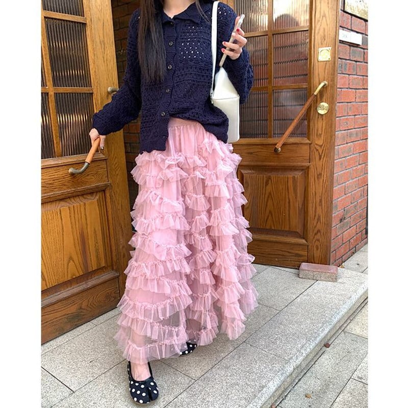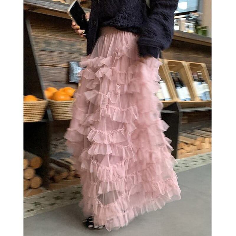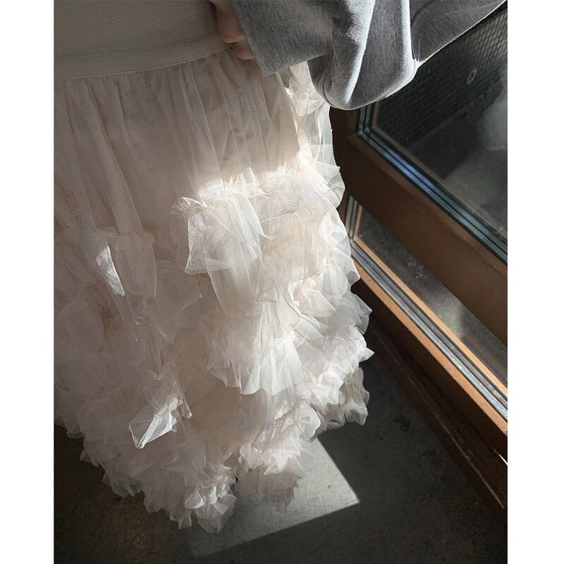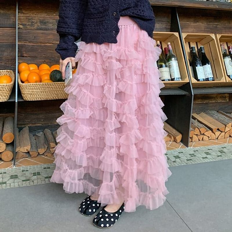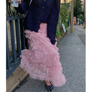 Volume tulle frill long skirt B3972