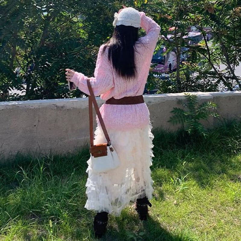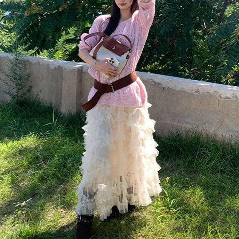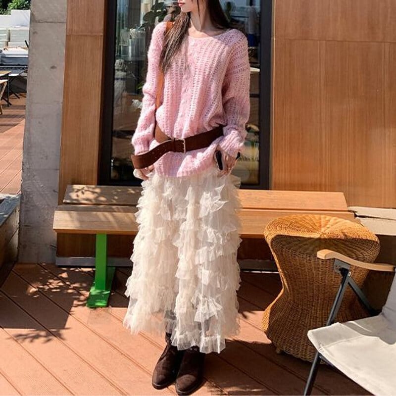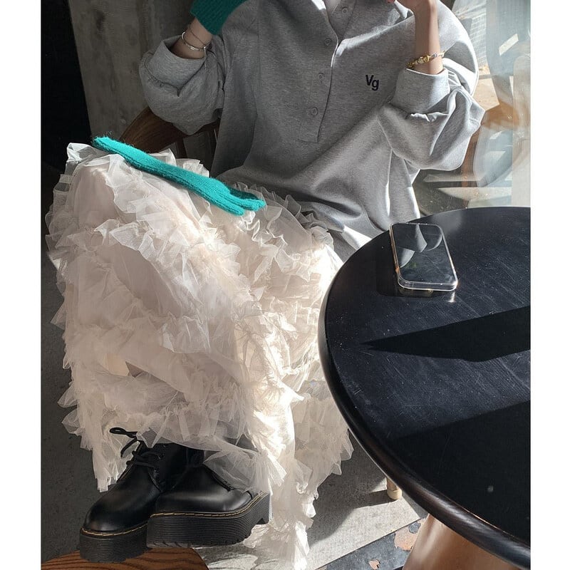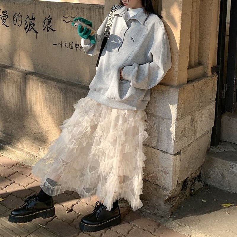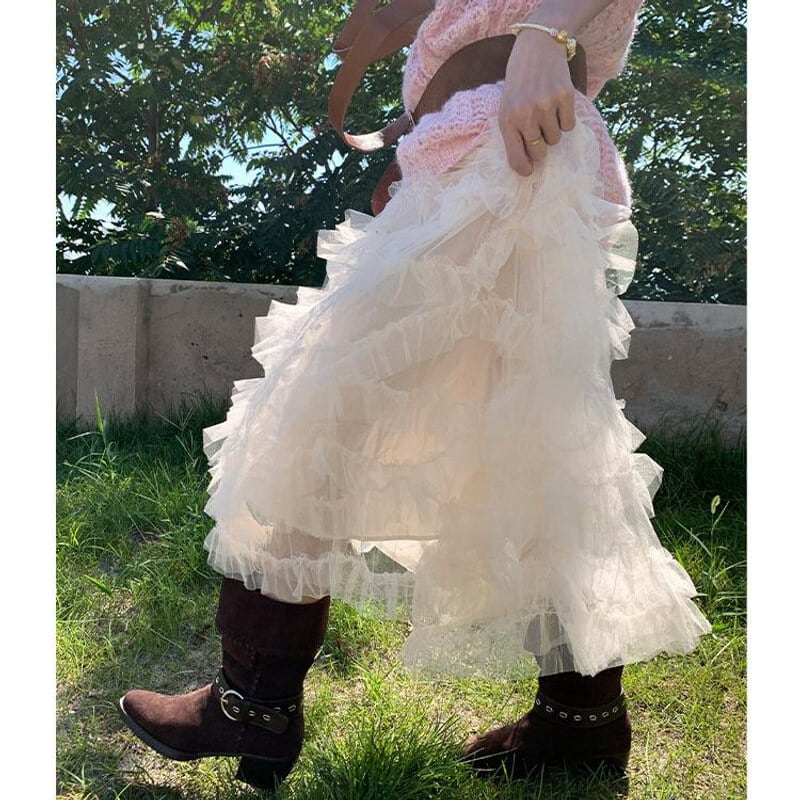 Volume tulle frill long skirt B3972