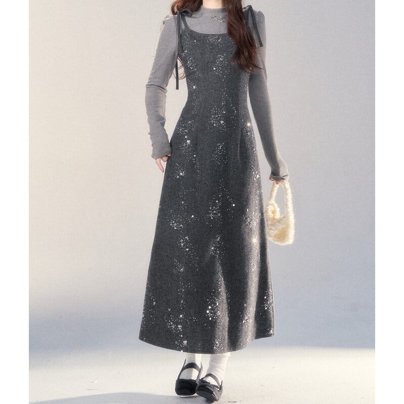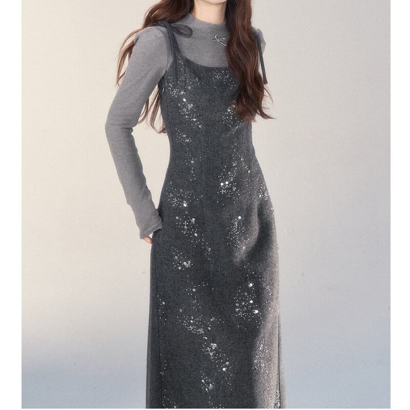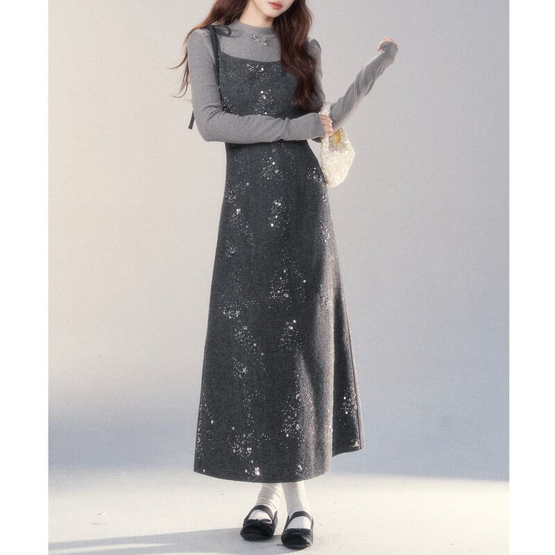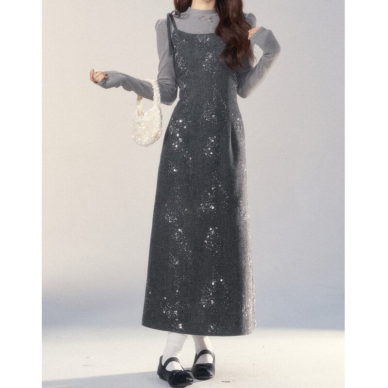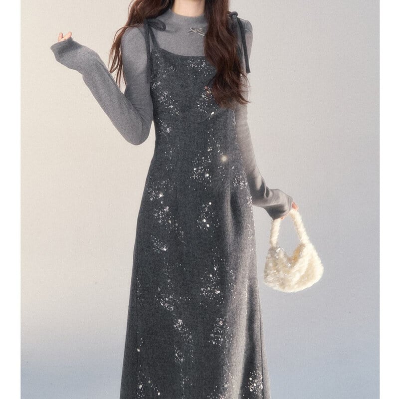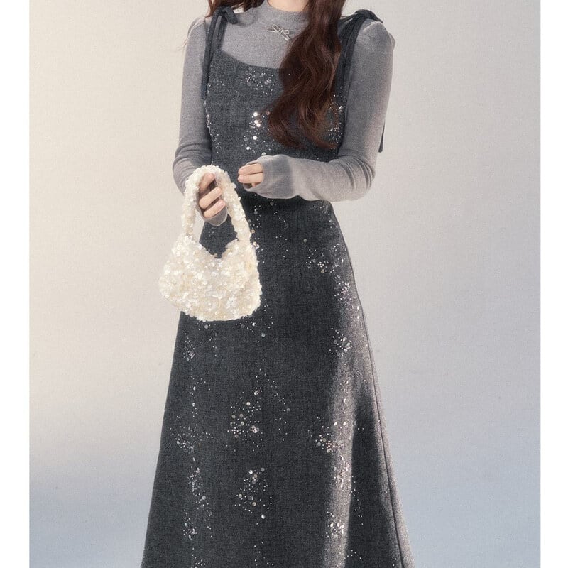 Ribbon strap tweed jumper skirt B3977