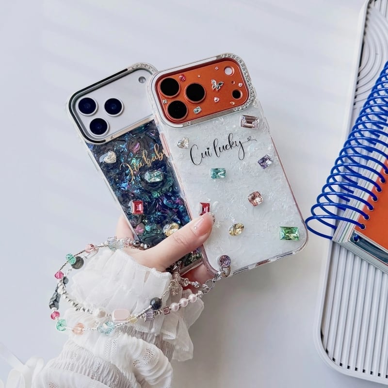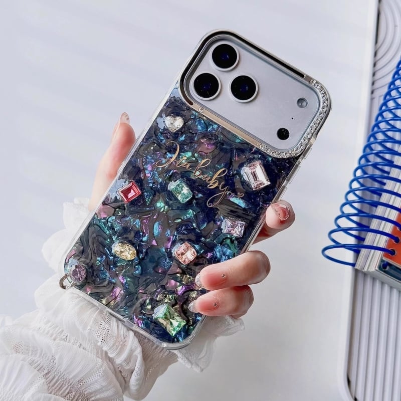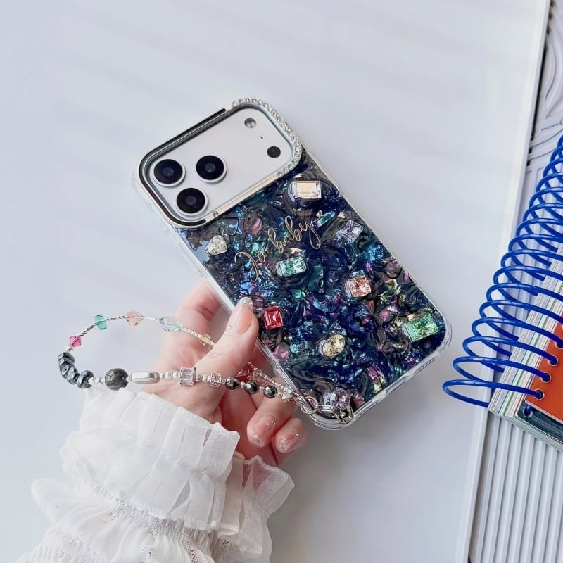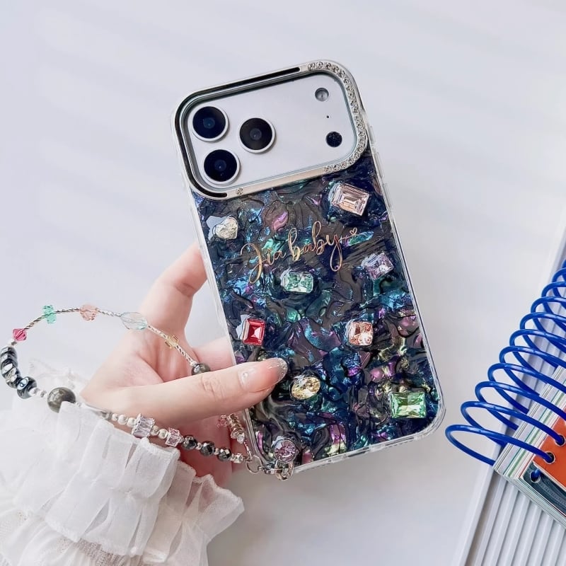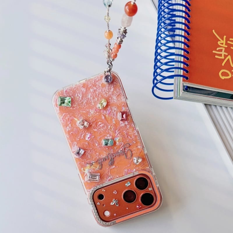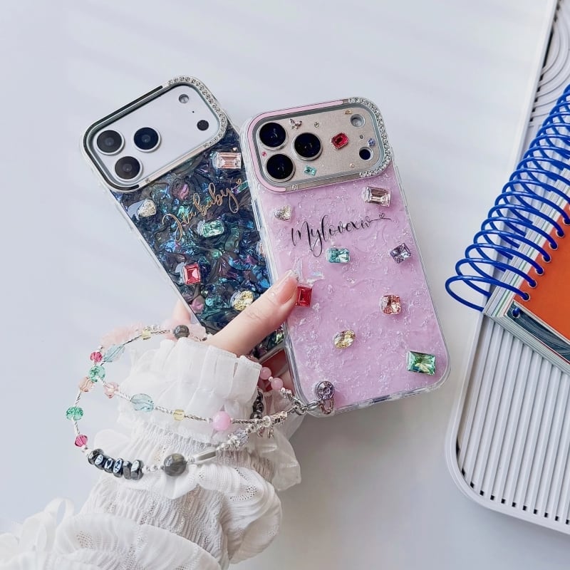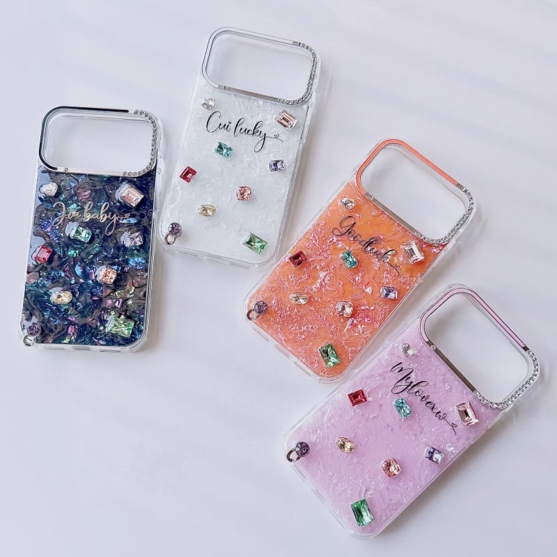 全4色/【名入れ可能】Mosaic shell bijou iPhone case B4028