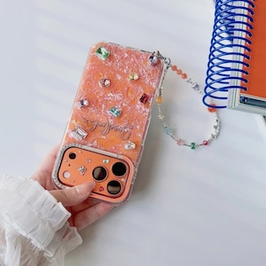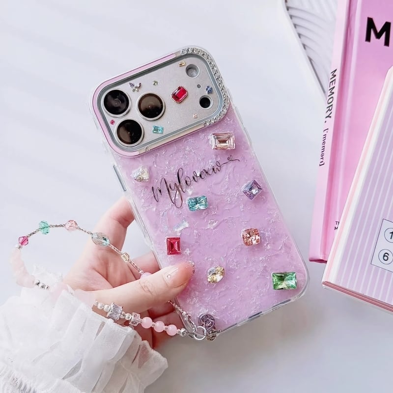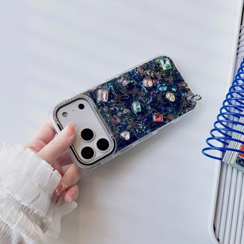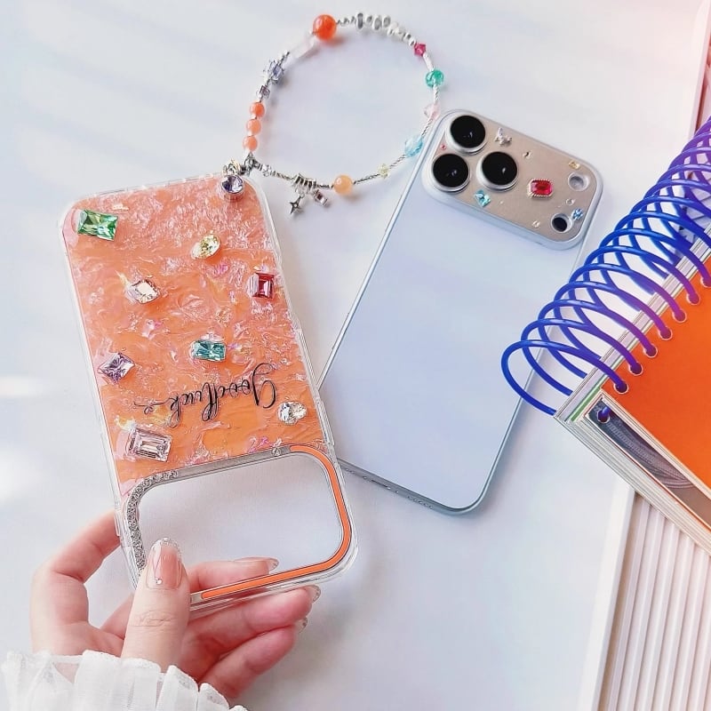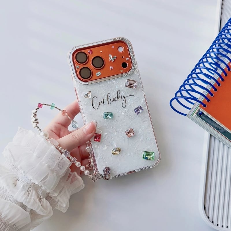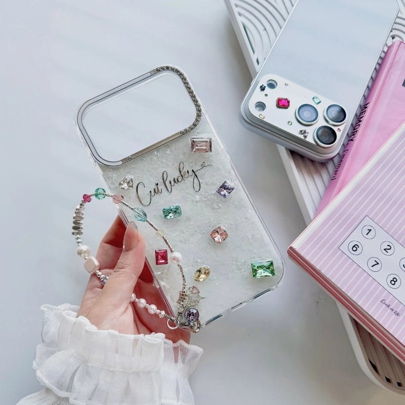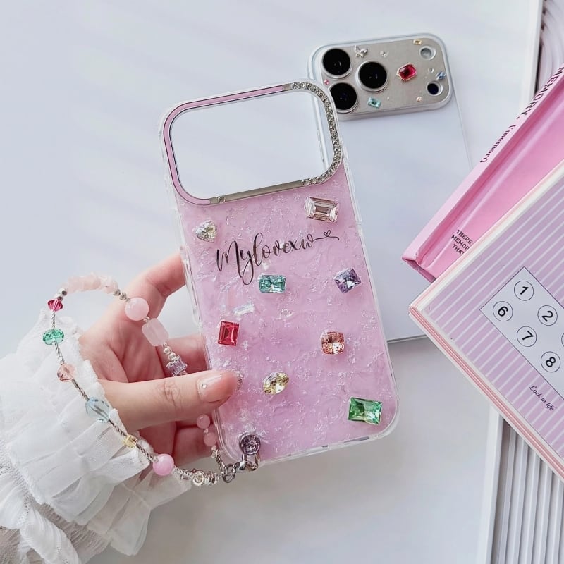 全4色/【名入れ可能】Mosaic shell bijou iPhone case B4028