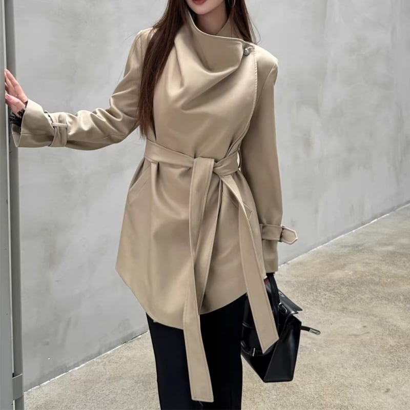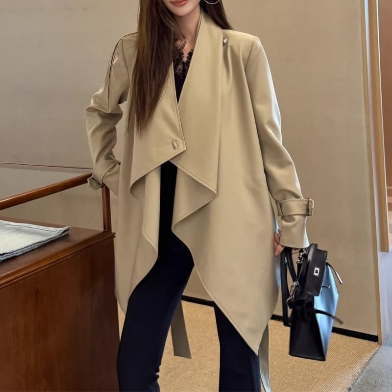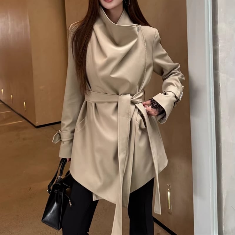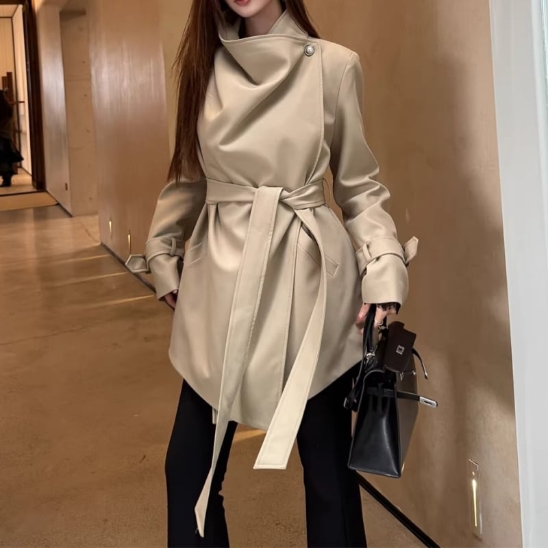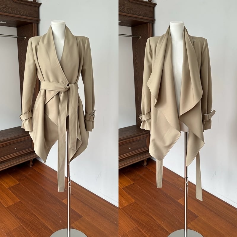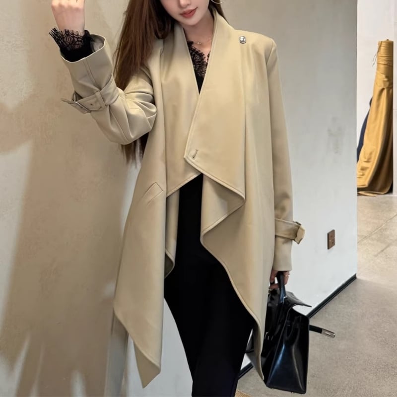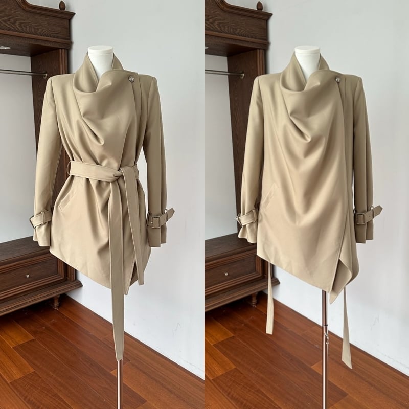 Draped collar trench coat M452