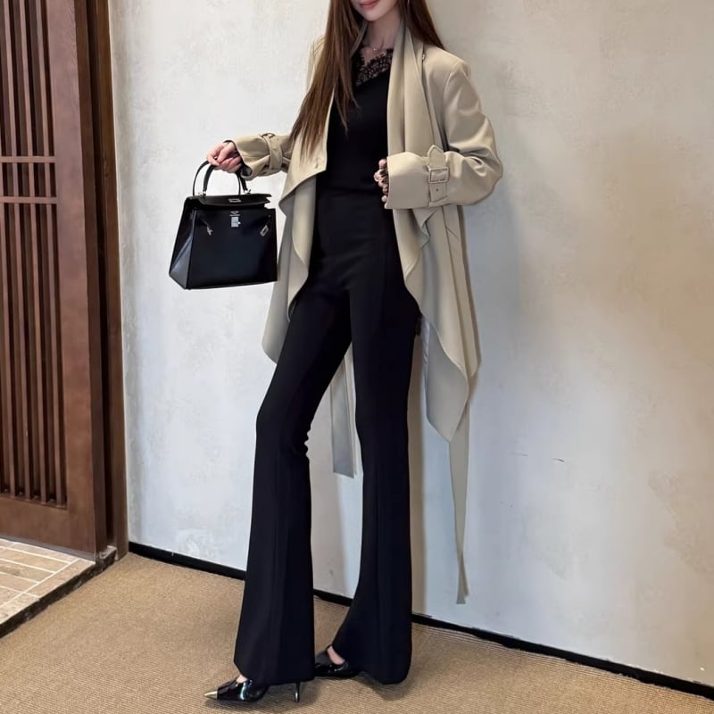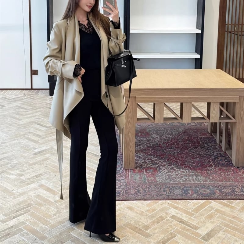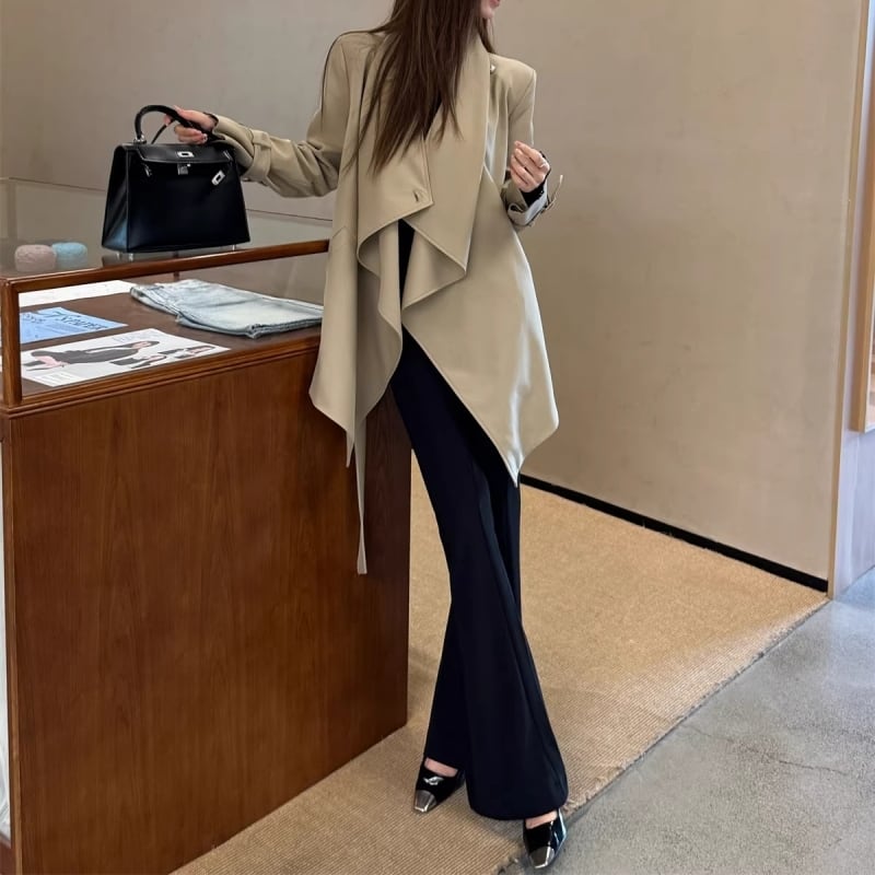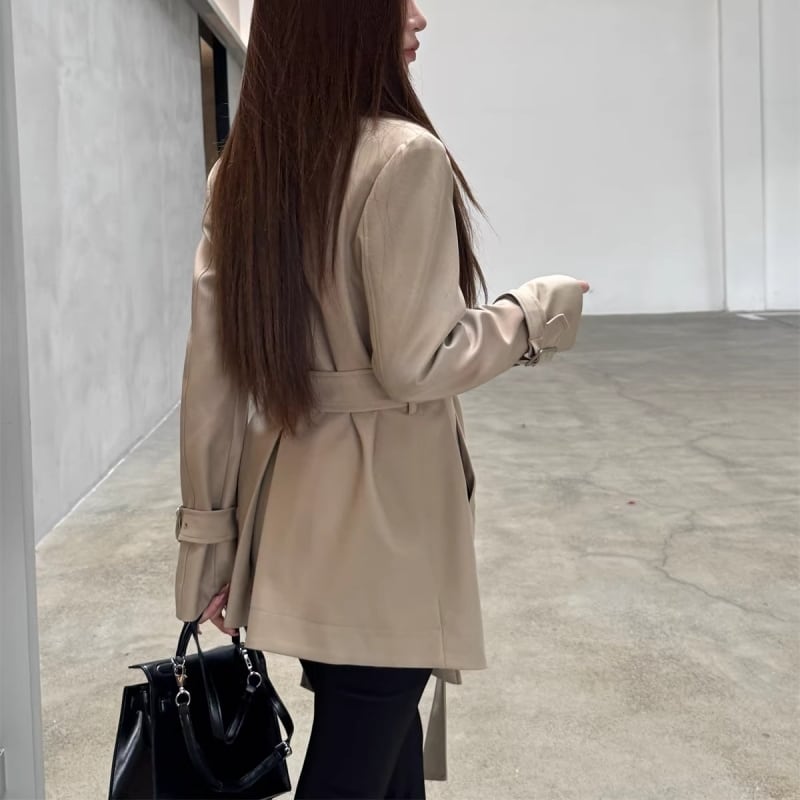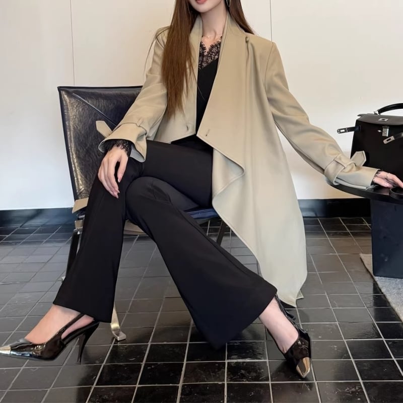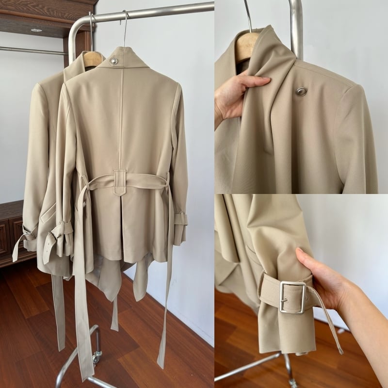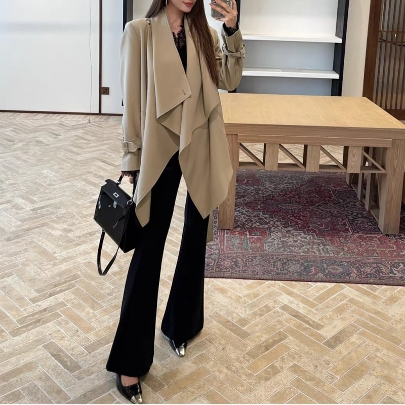 Draped collar trench coat M452