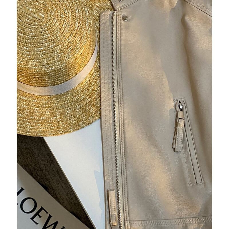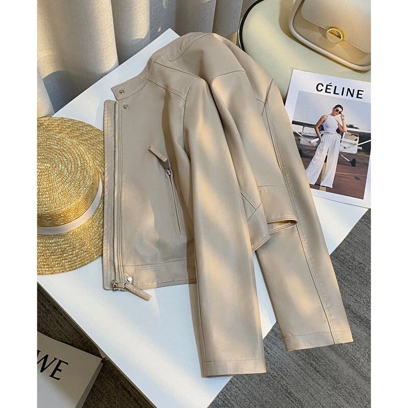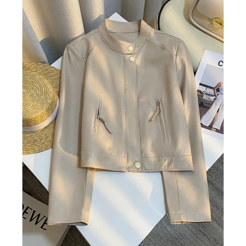 Stand collar leather jacket B4147