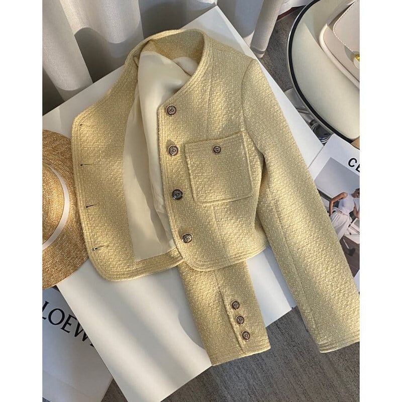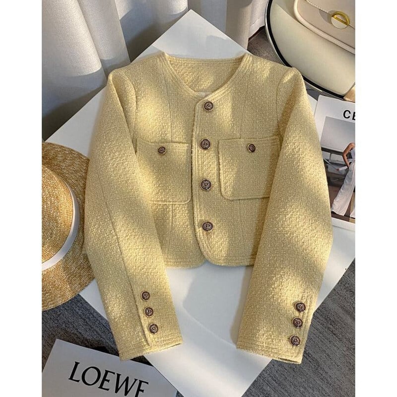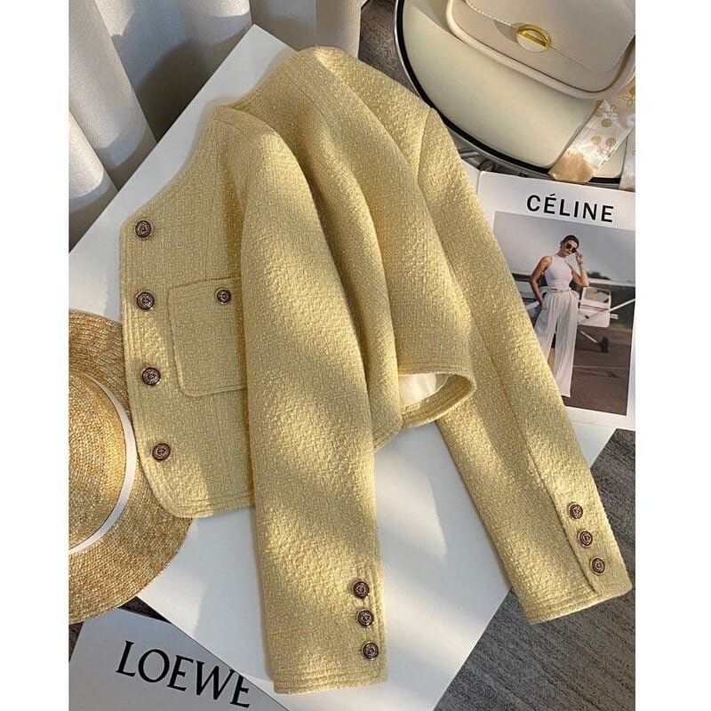 Yellow tweed cropped jacket B4151