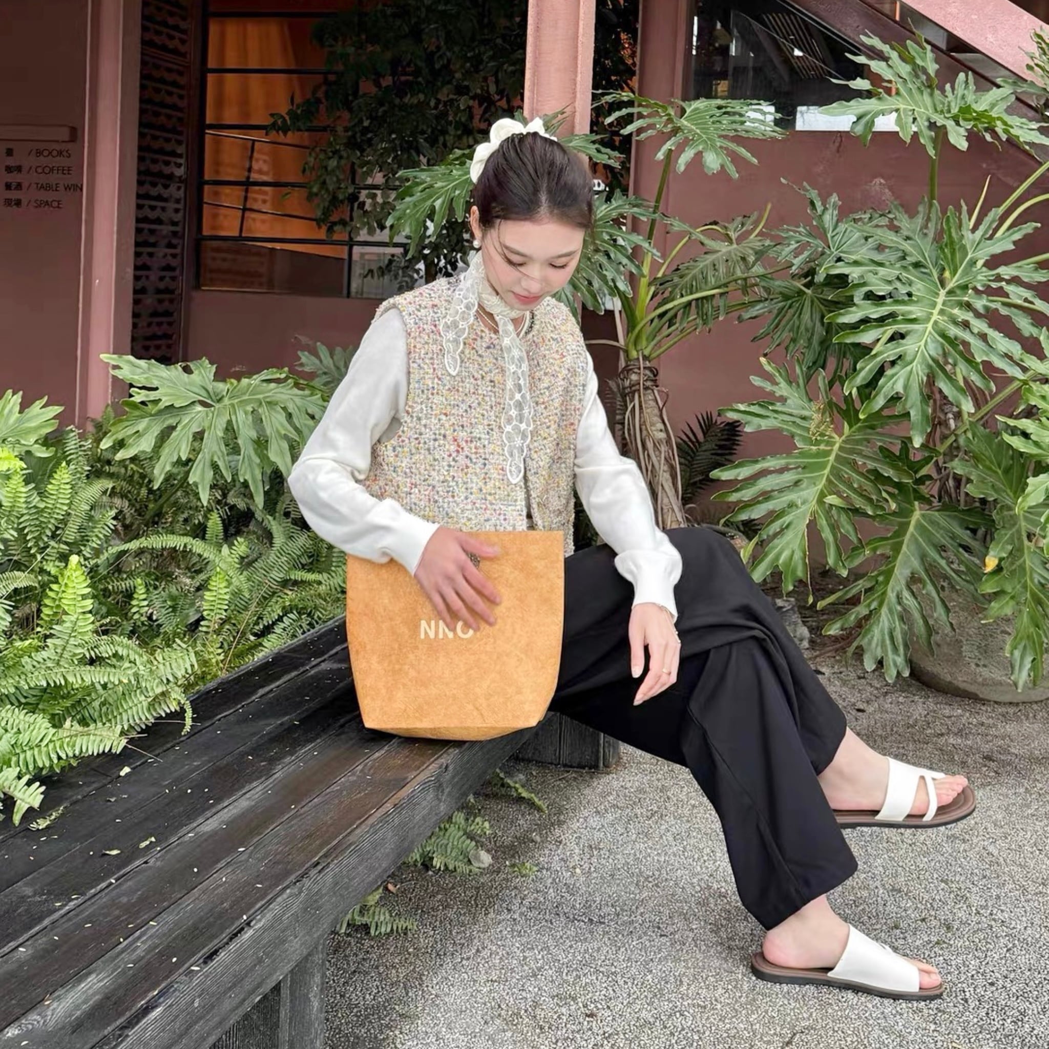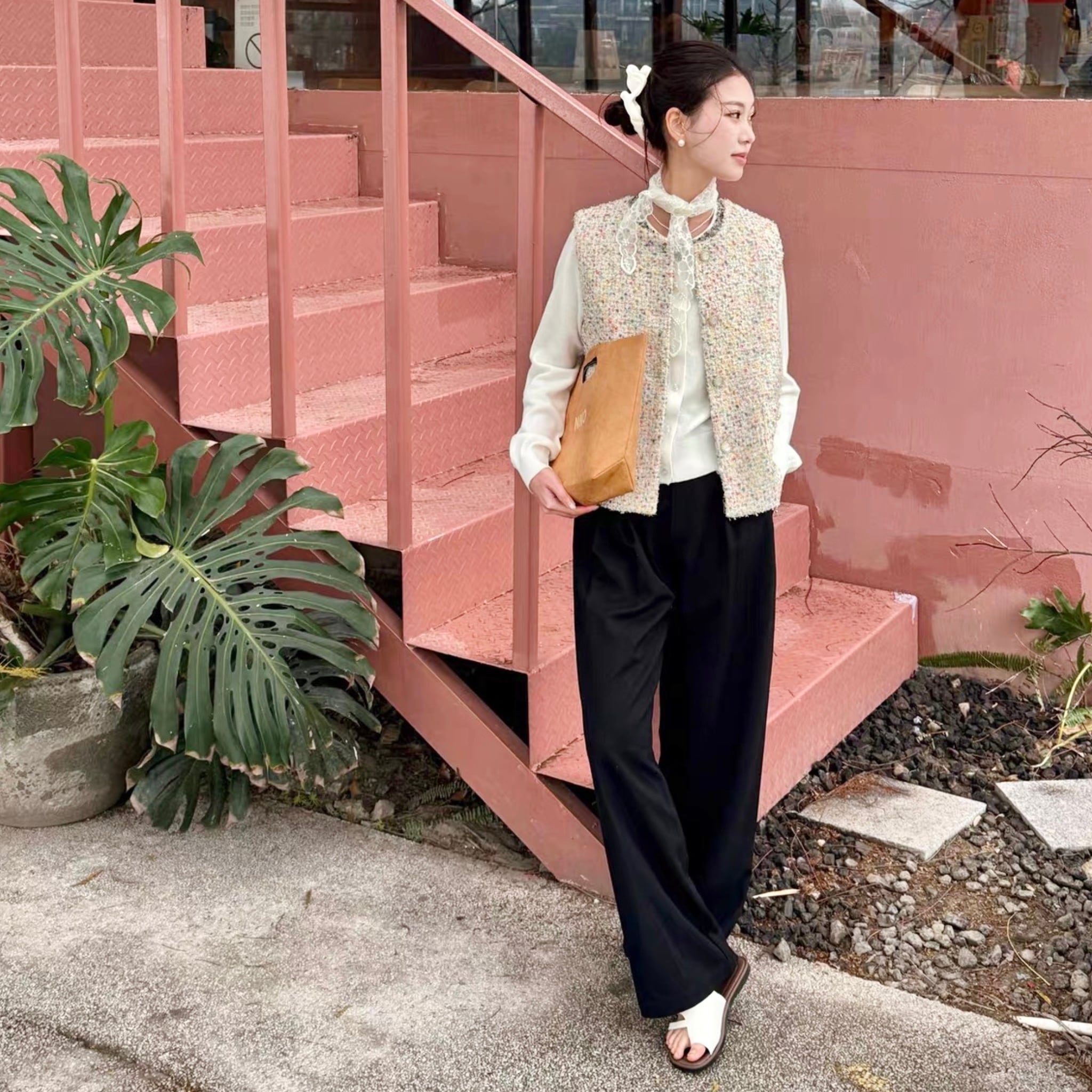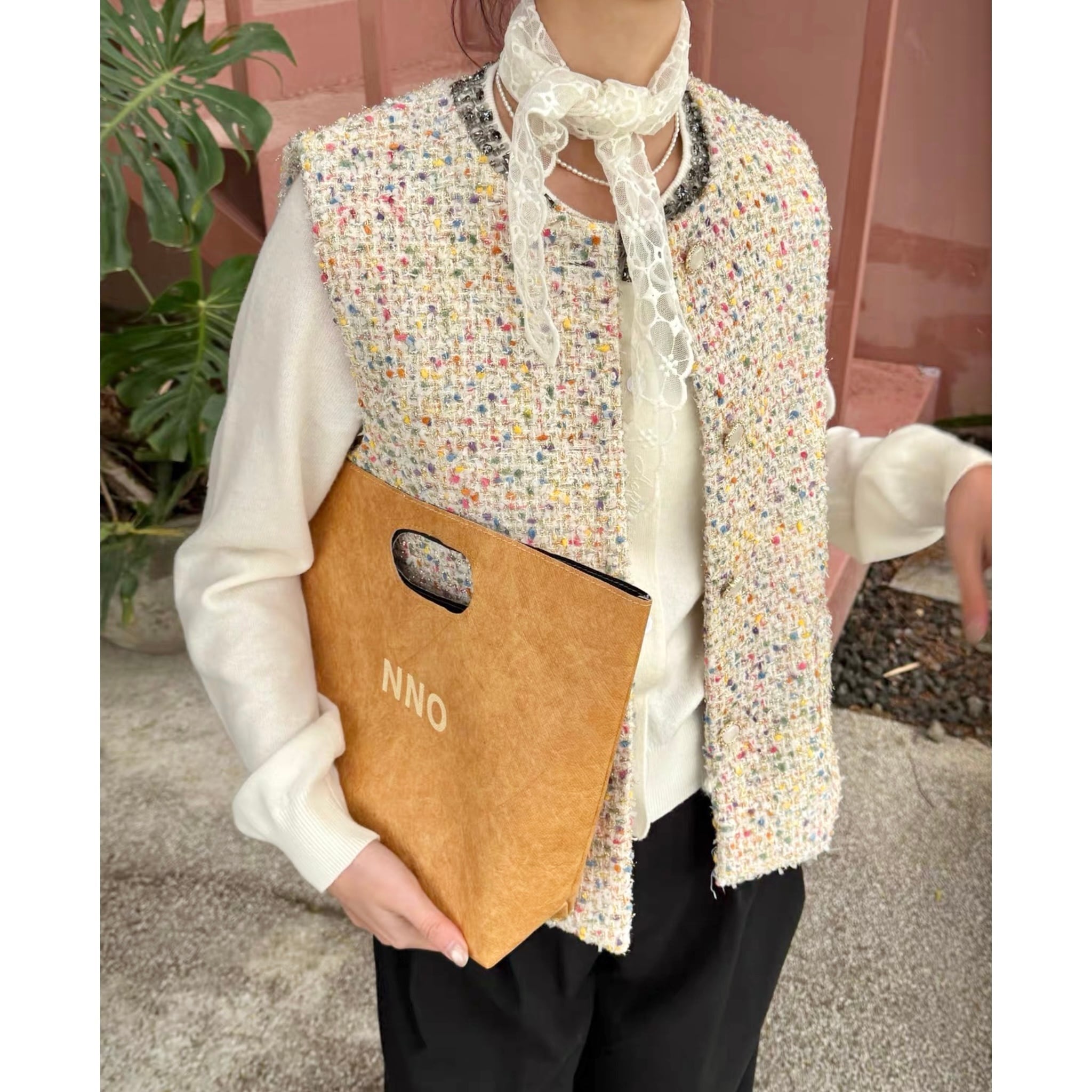 Color mix tweed gilet B4171