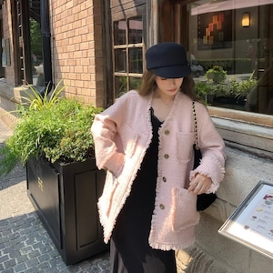 Blush pink longline tweed jacket M466