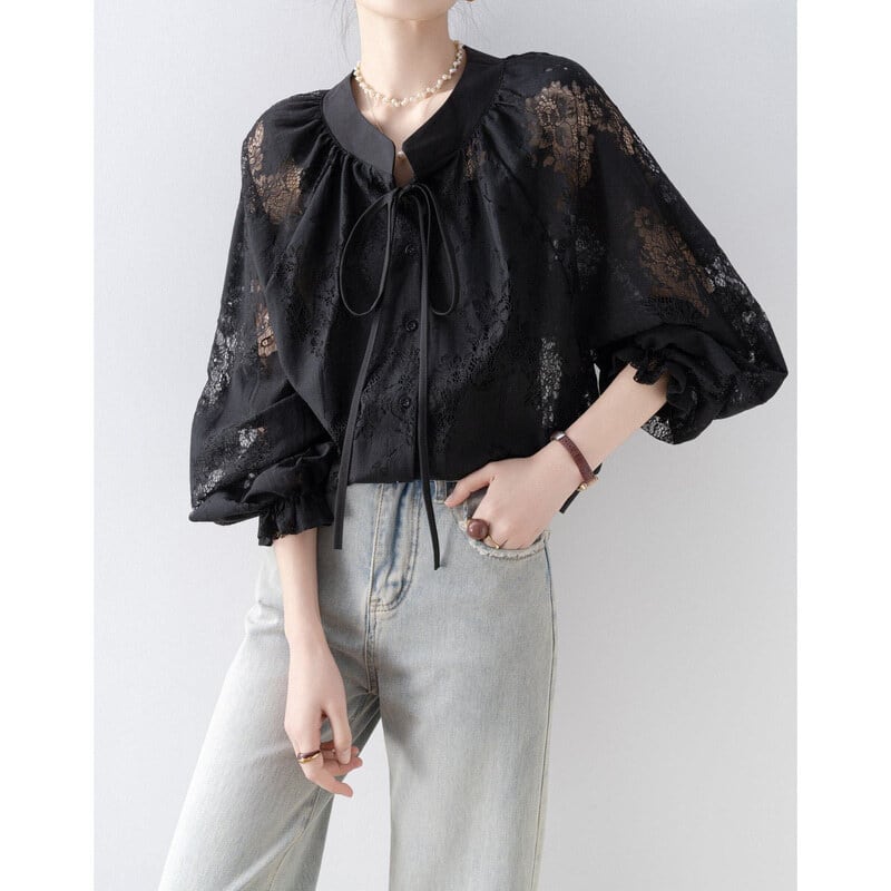 Black lace blouse B4223