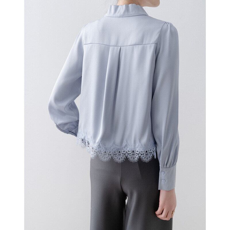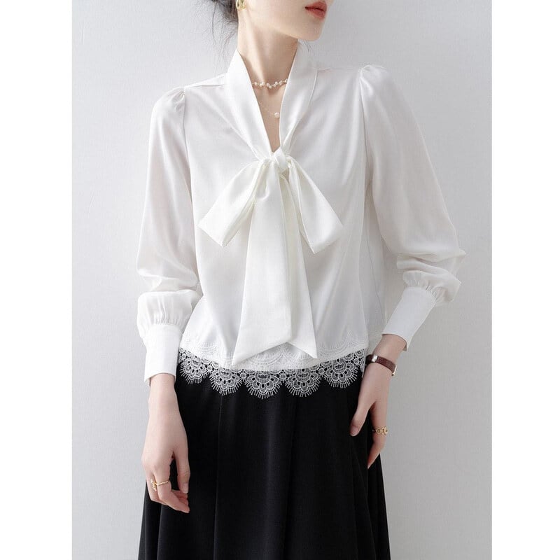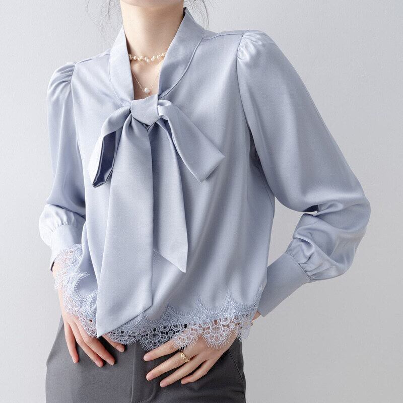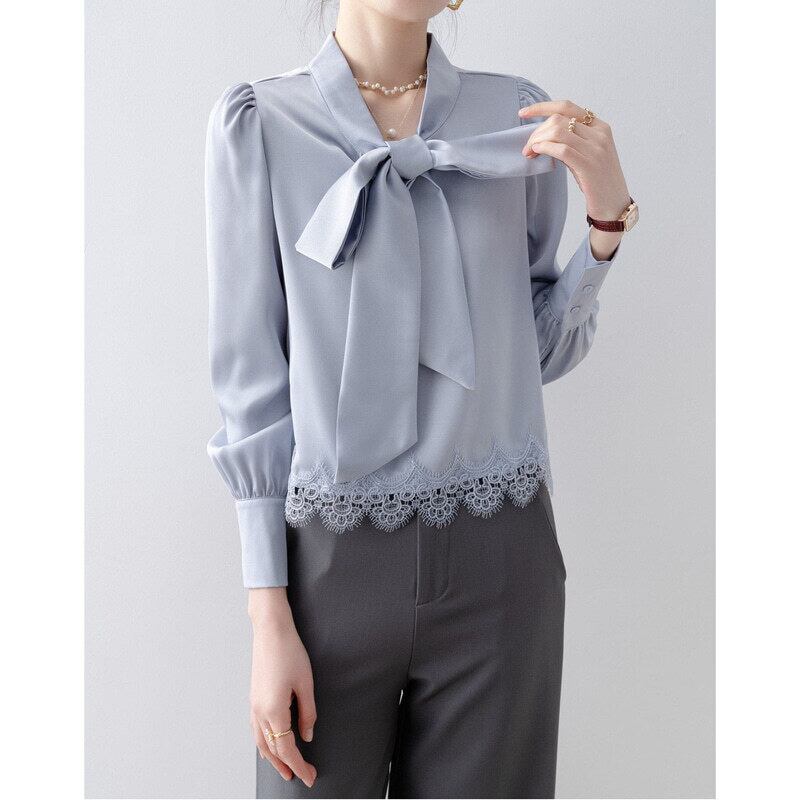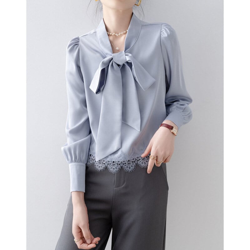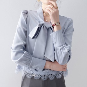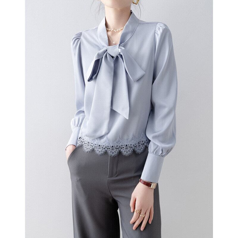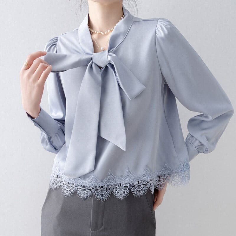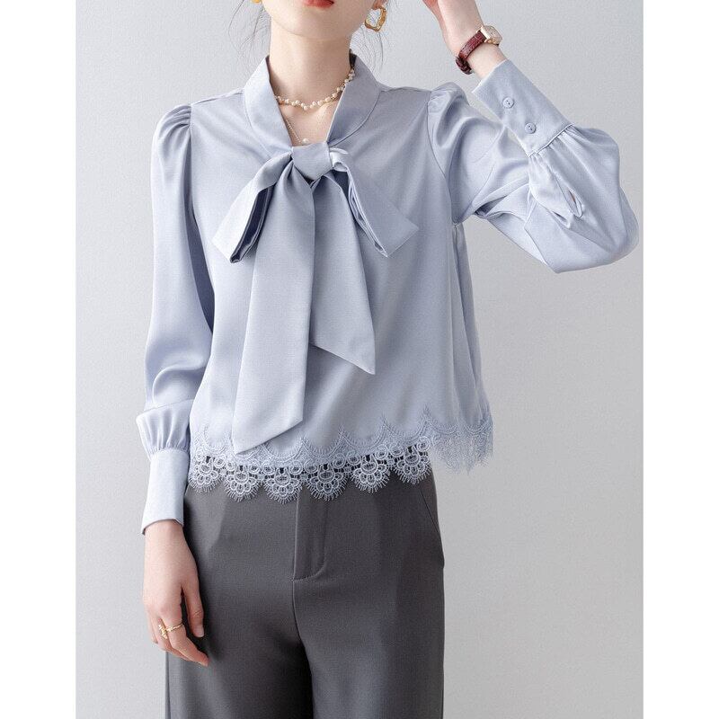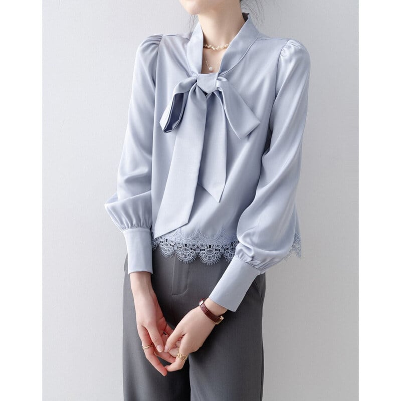 Lace hem bow tie blouse B4238