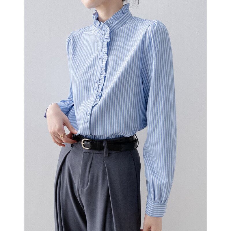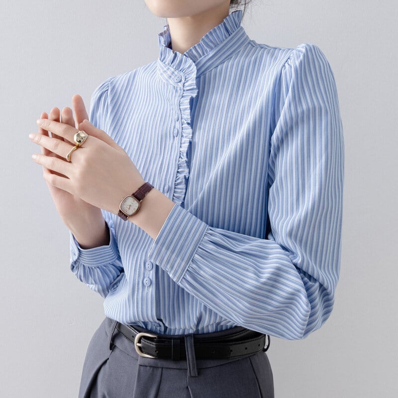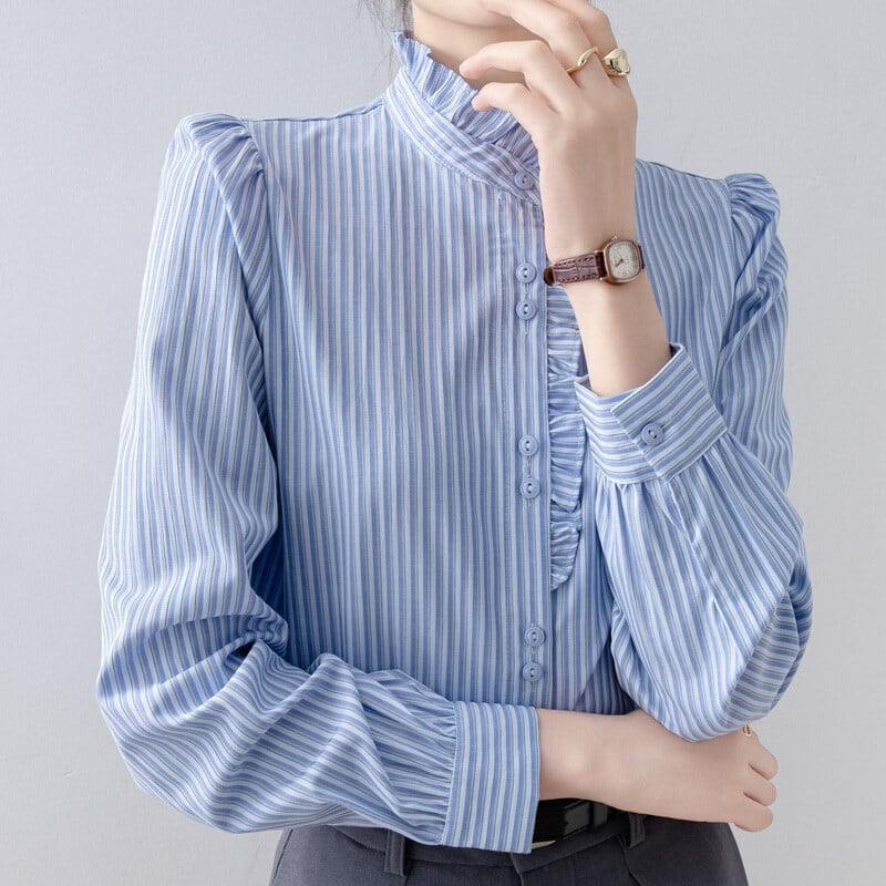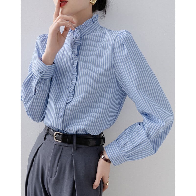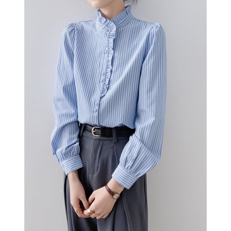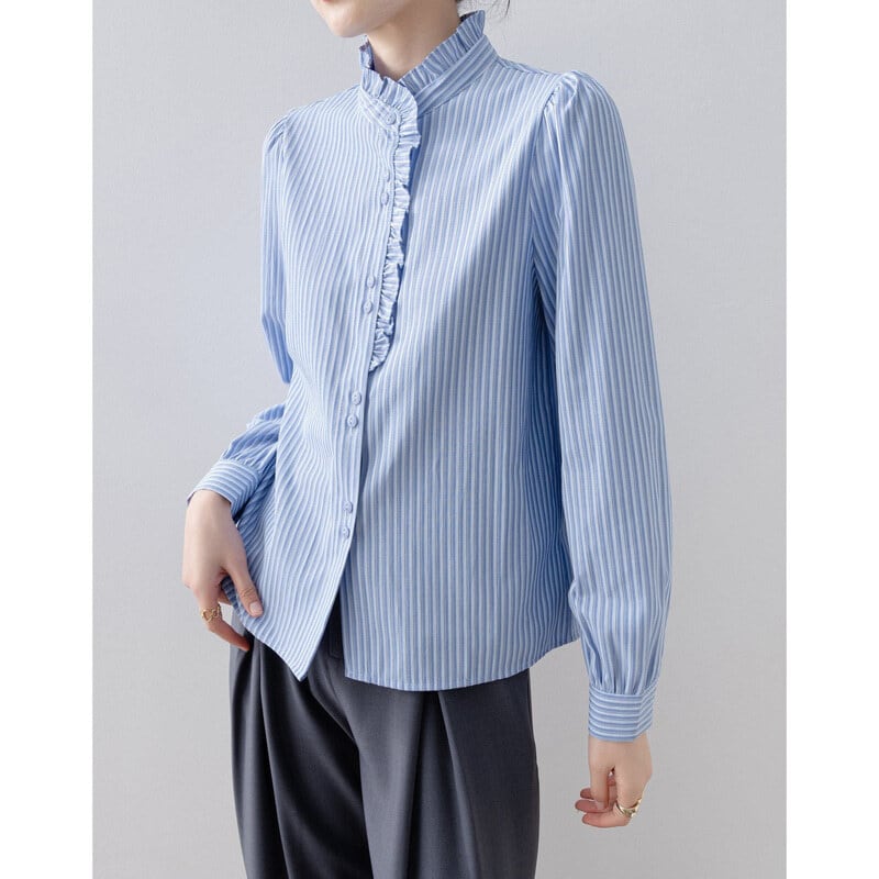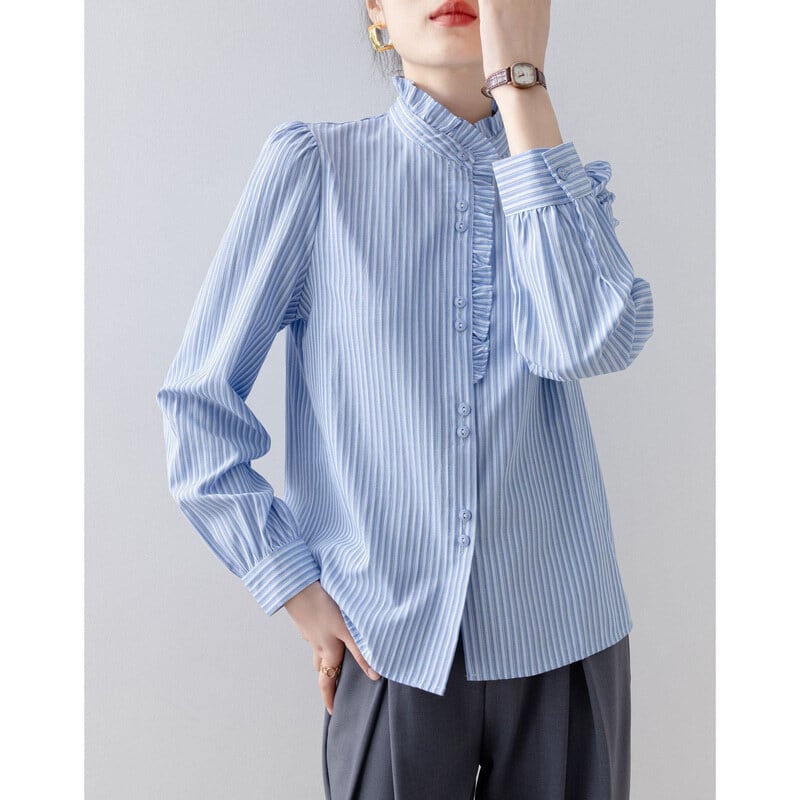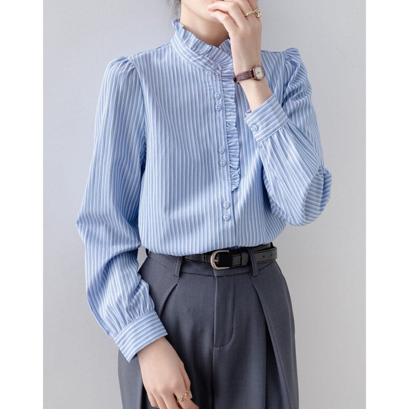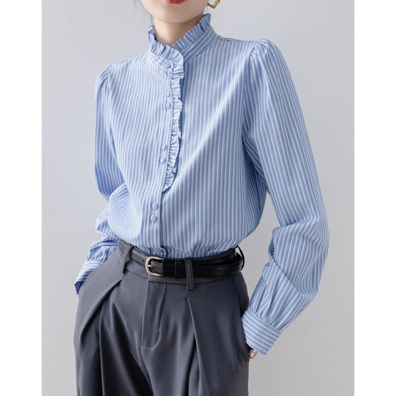 Frill neck stripe blouse B4239