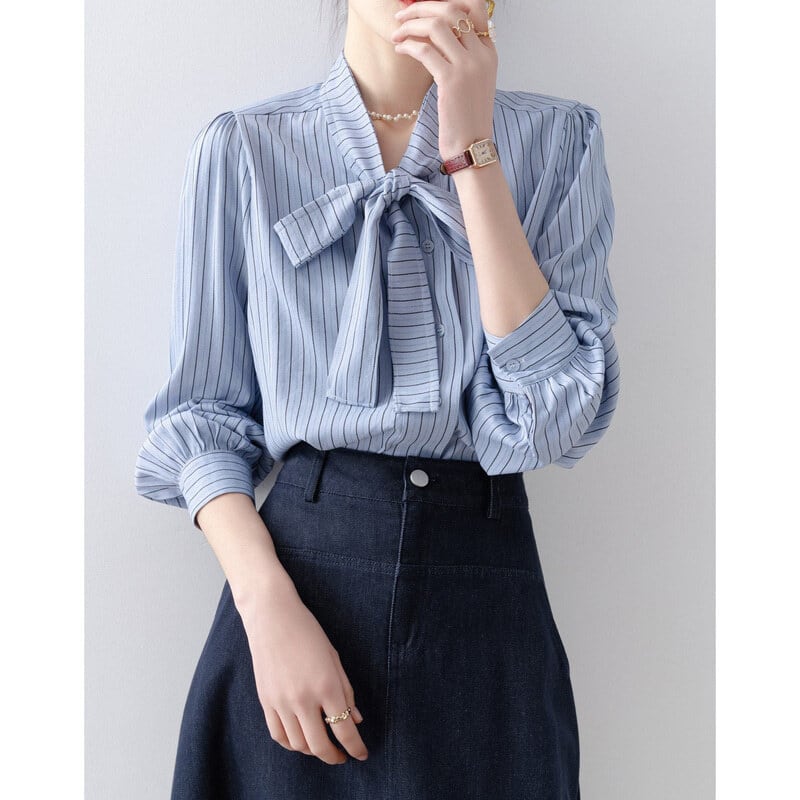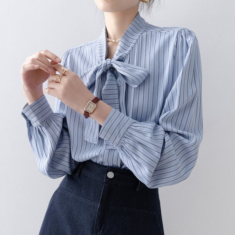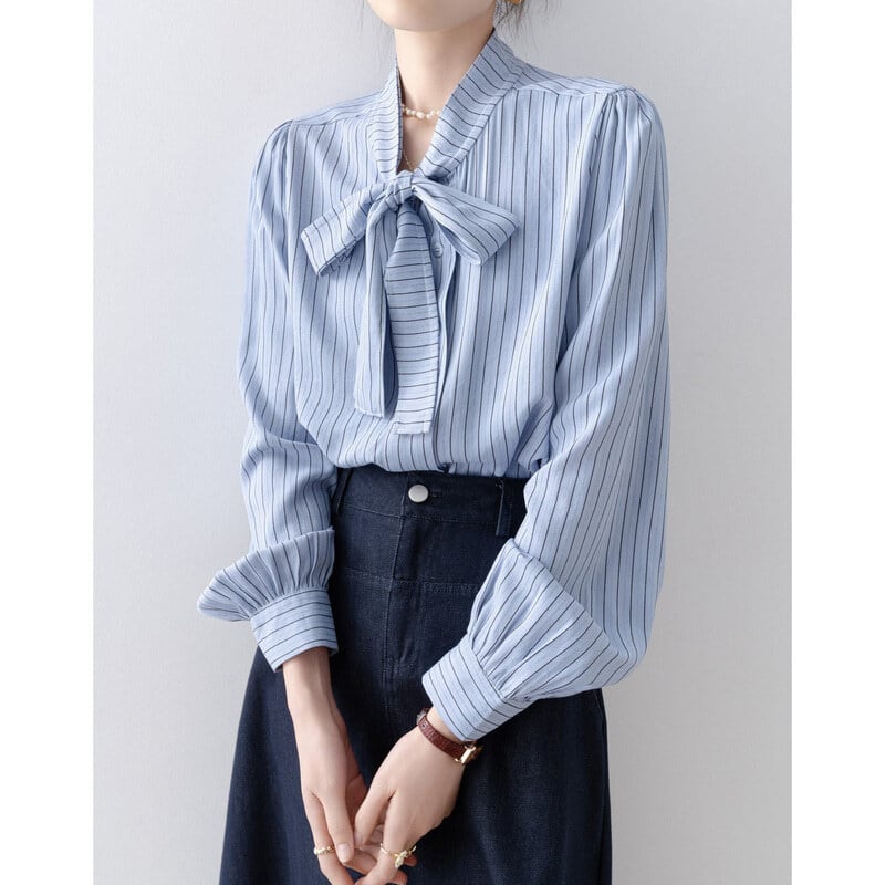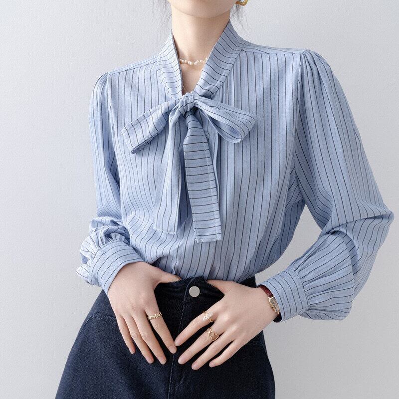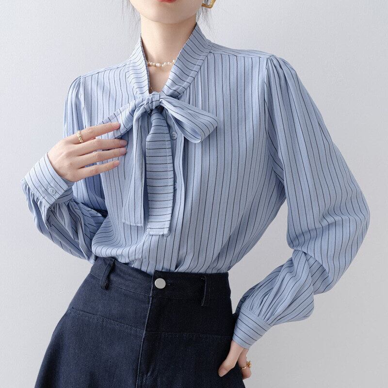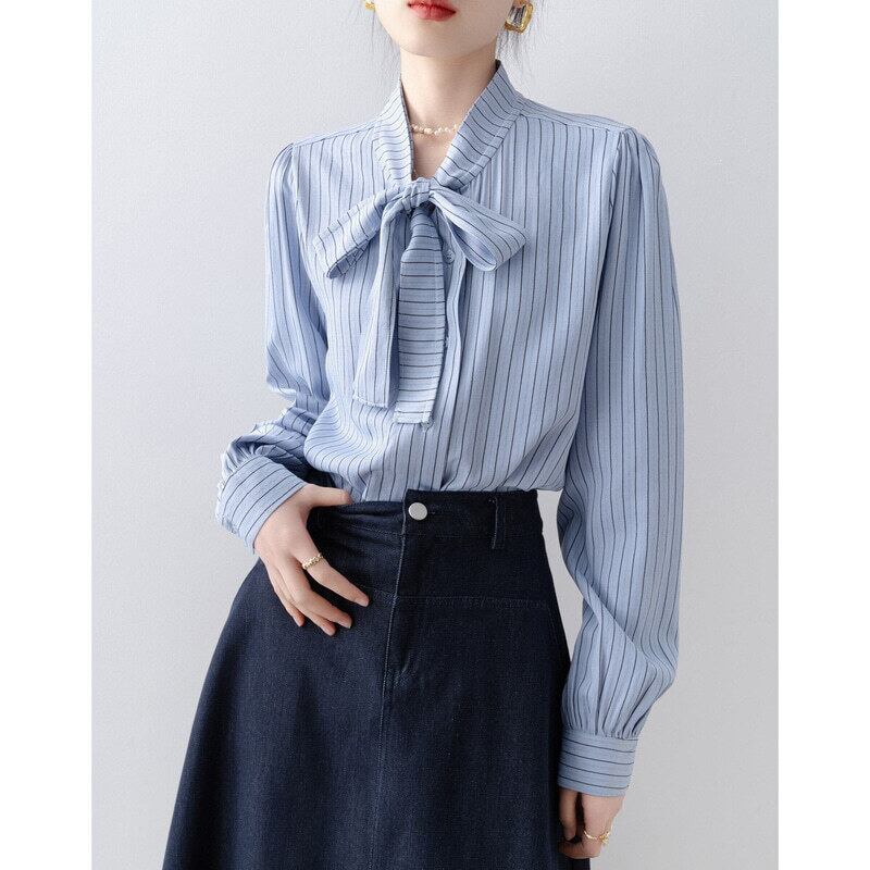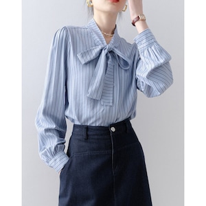 Stripe bow tie blouse B4240