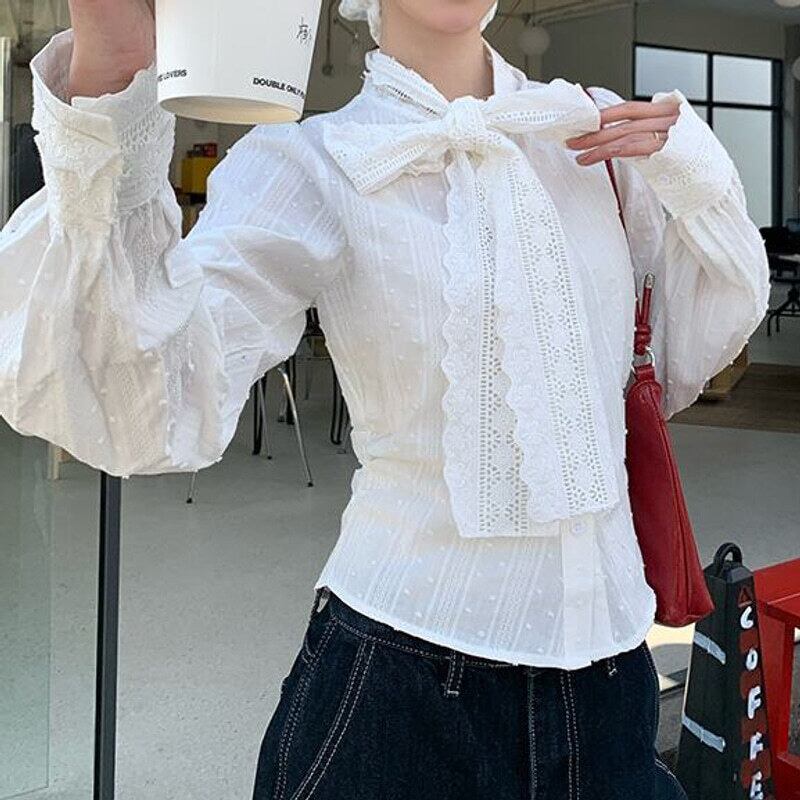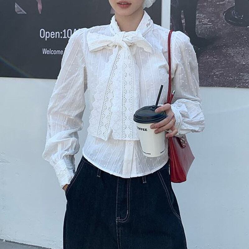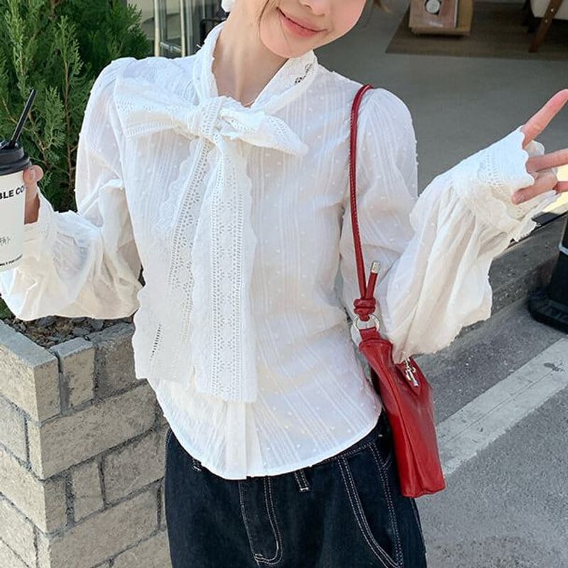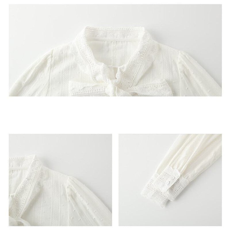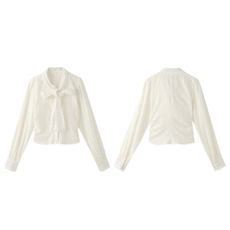 Vintage lace bow tie blouse M419