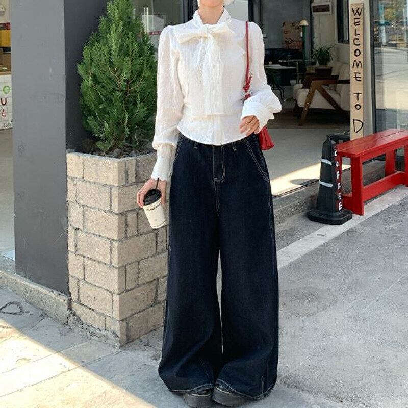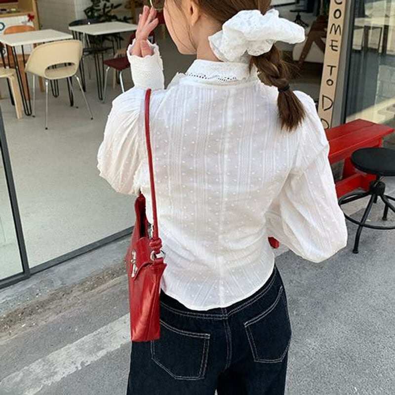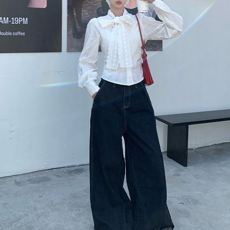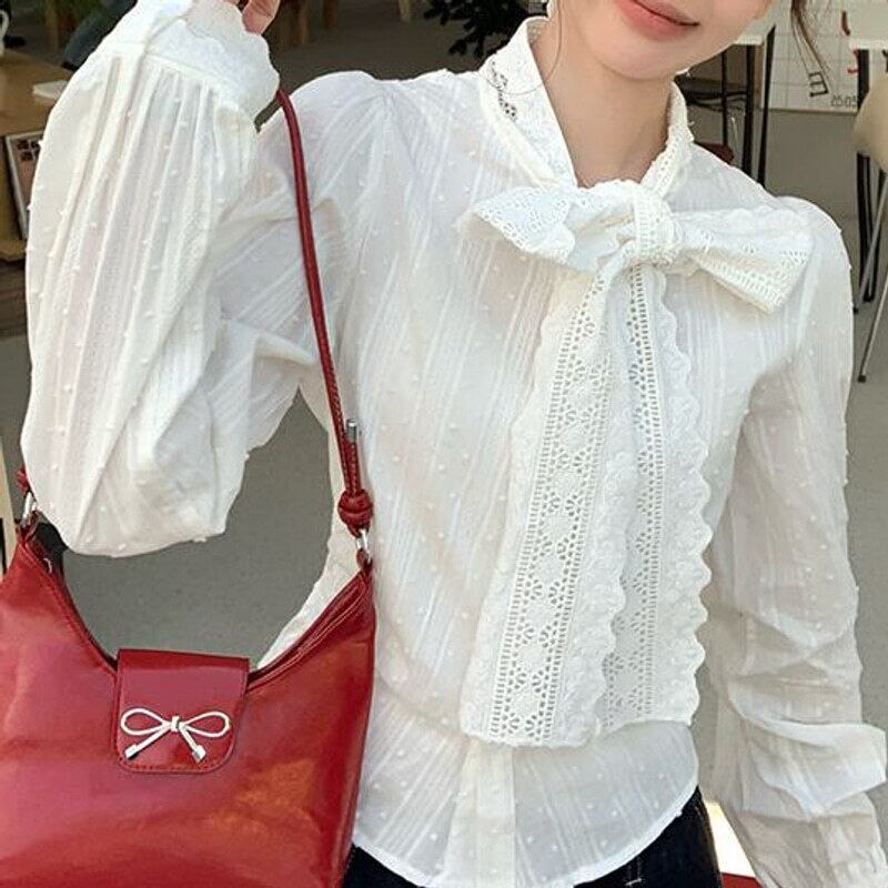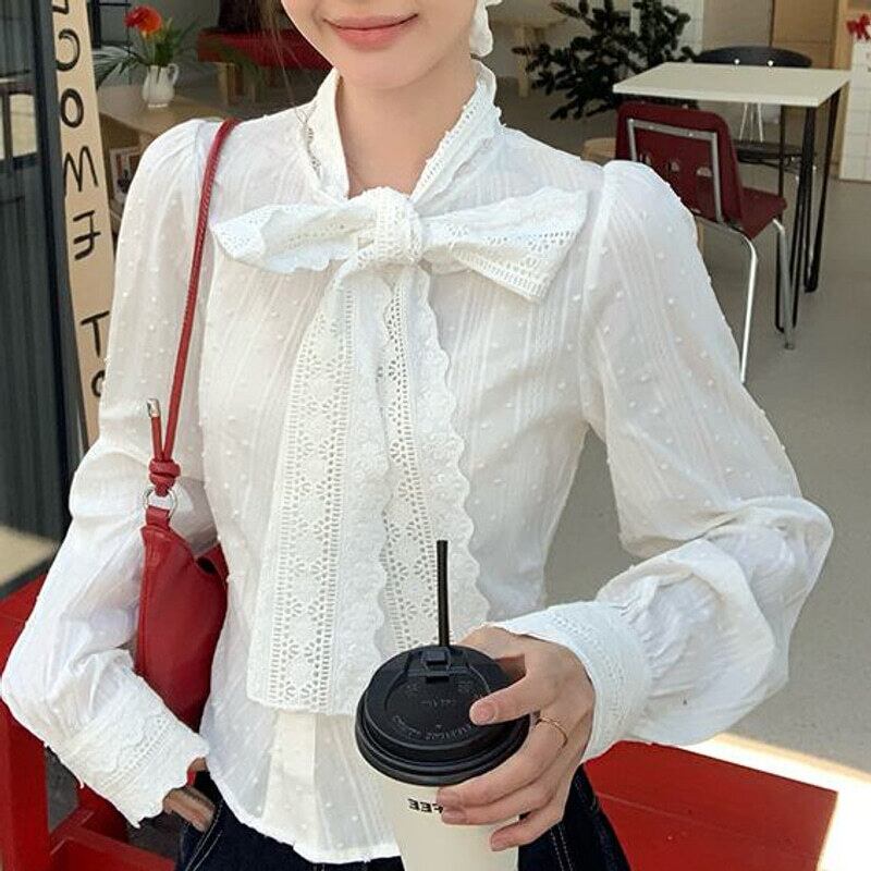Vintage lace bow tie blouse M419