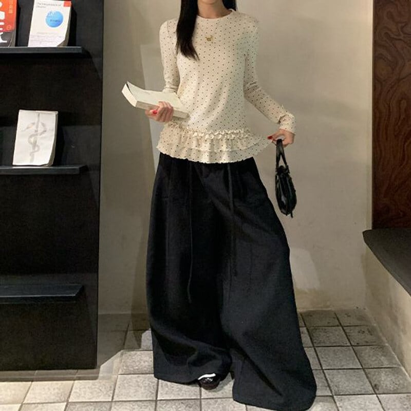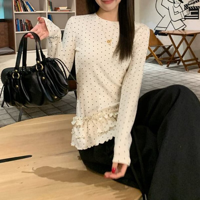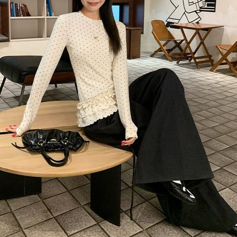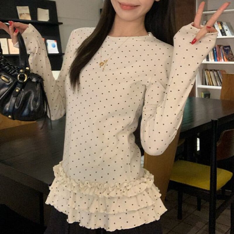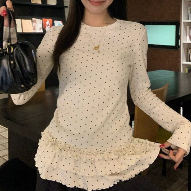 Dot frill hem tops M439
