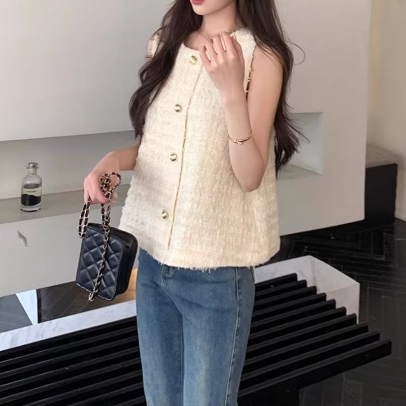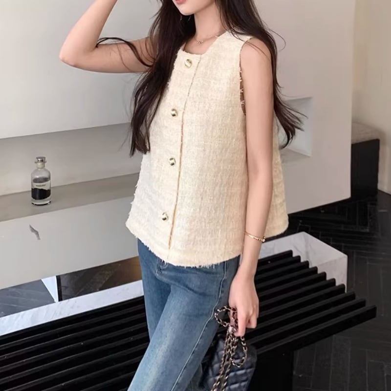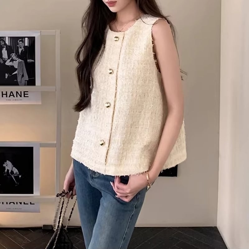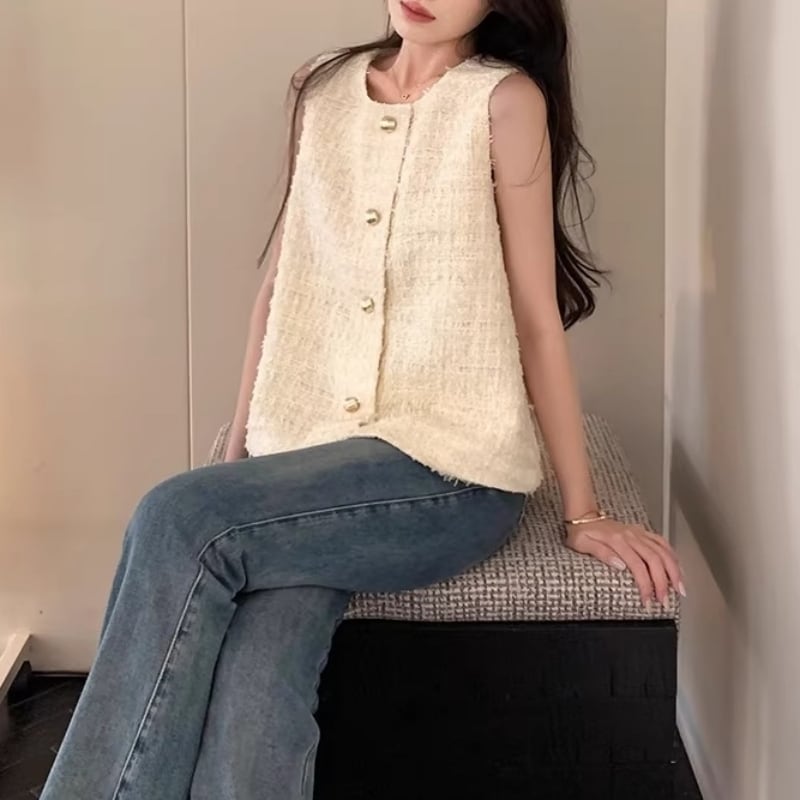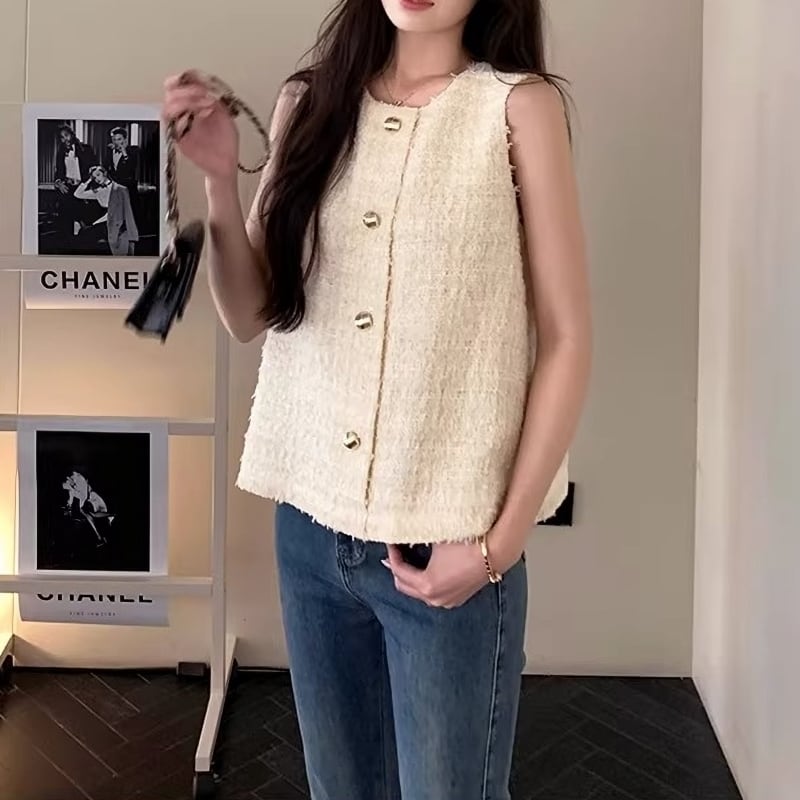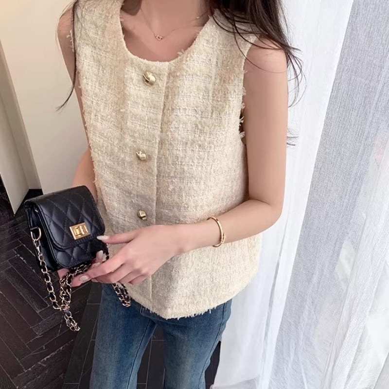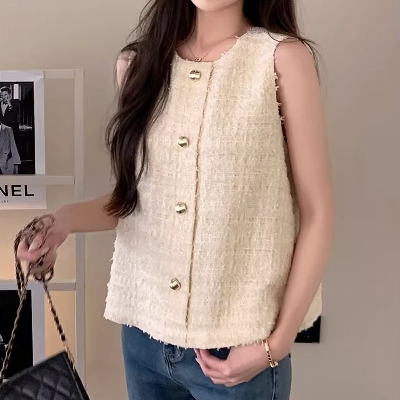 Gold button fancy yarn tweed vest M478