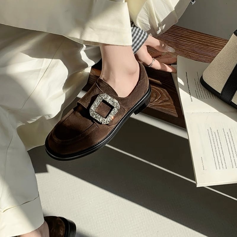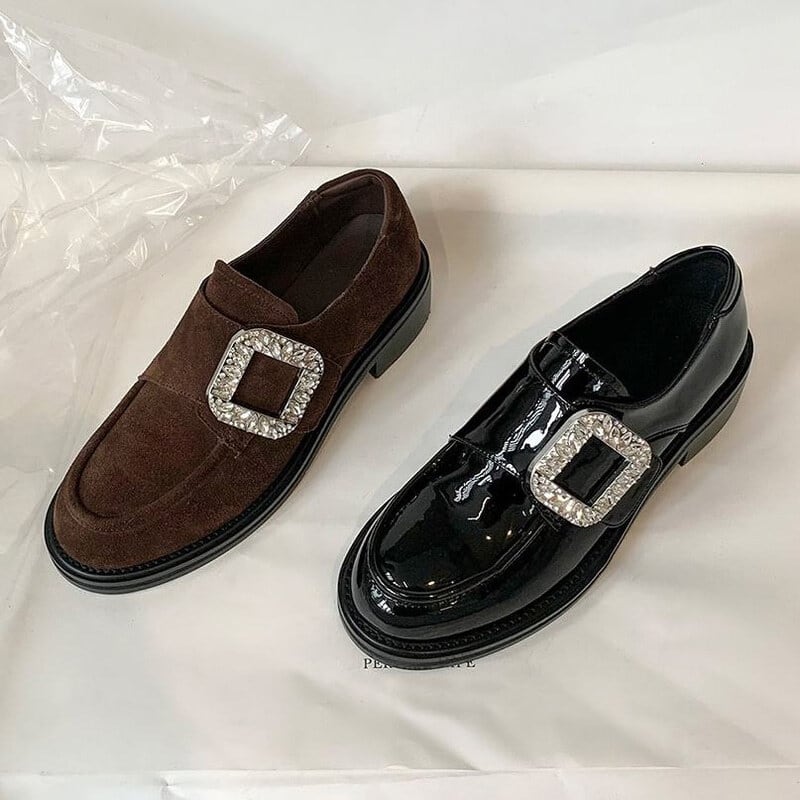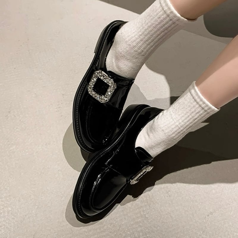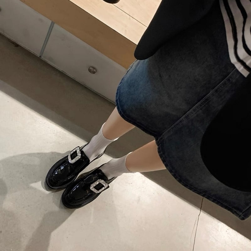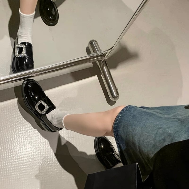 【35-40】Crystal square buckle loafer B4270