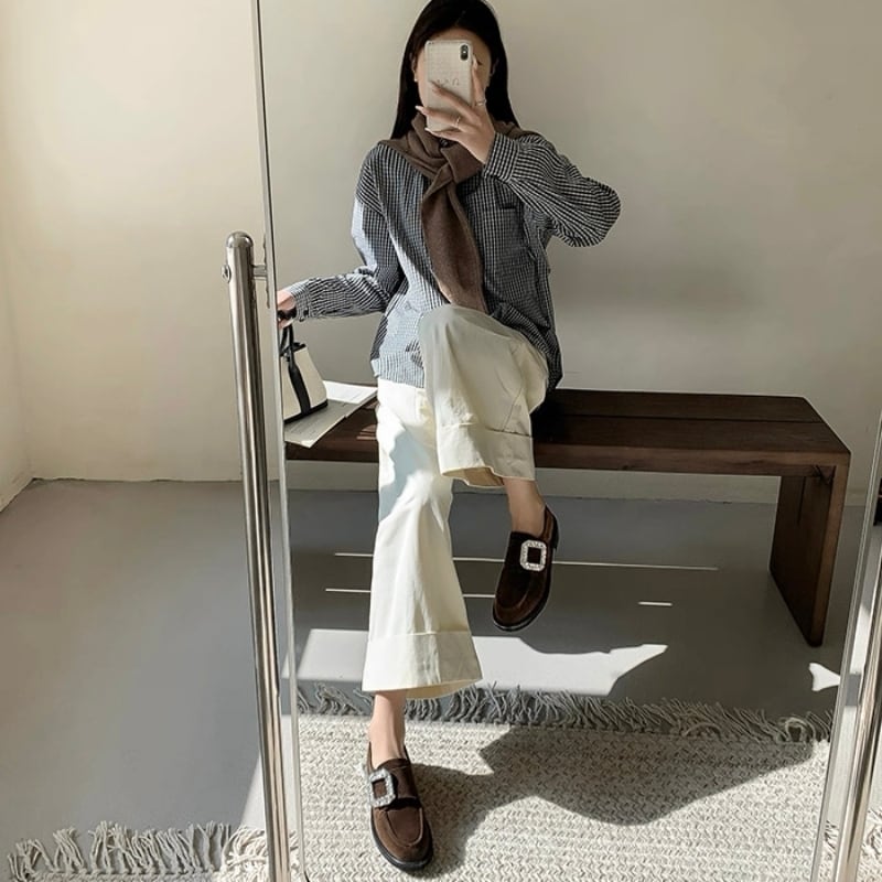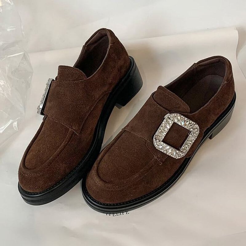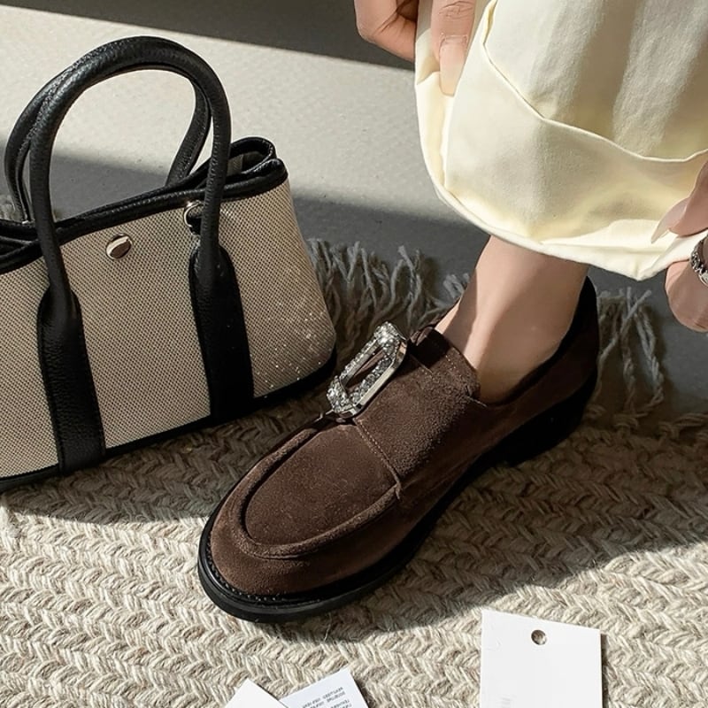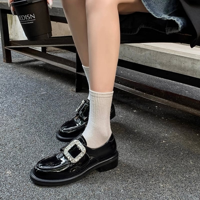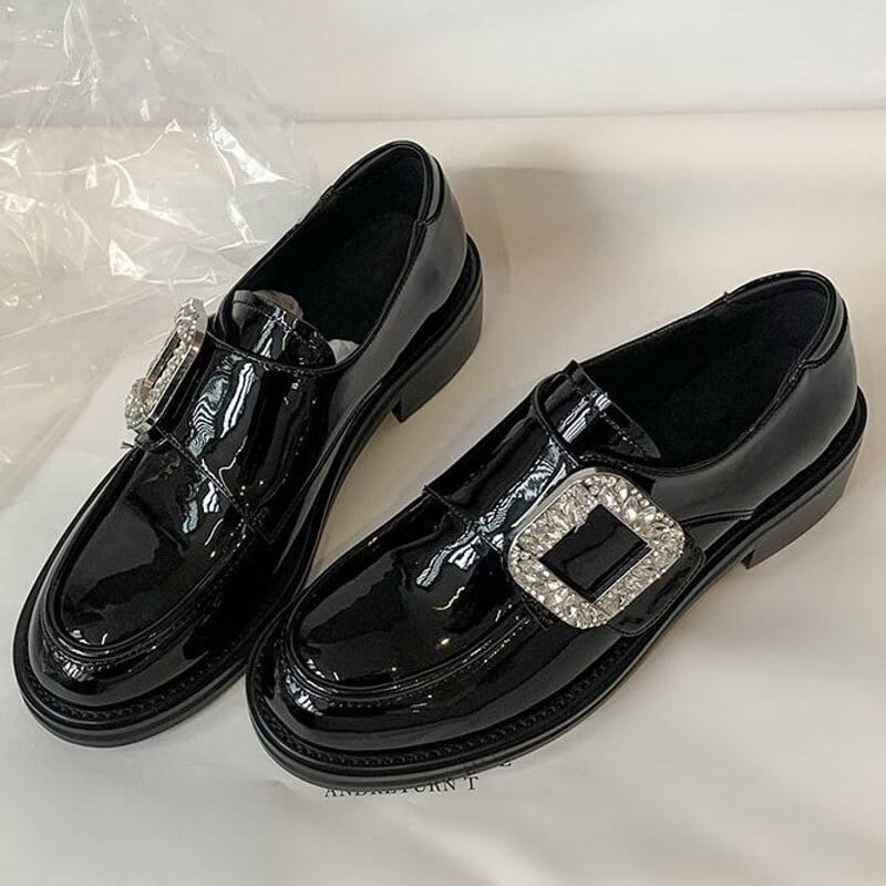 【35-40】Crystal square buckle loafer B4270