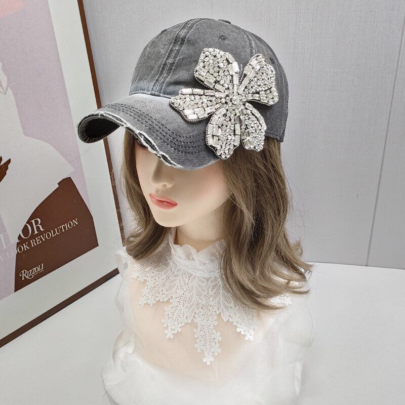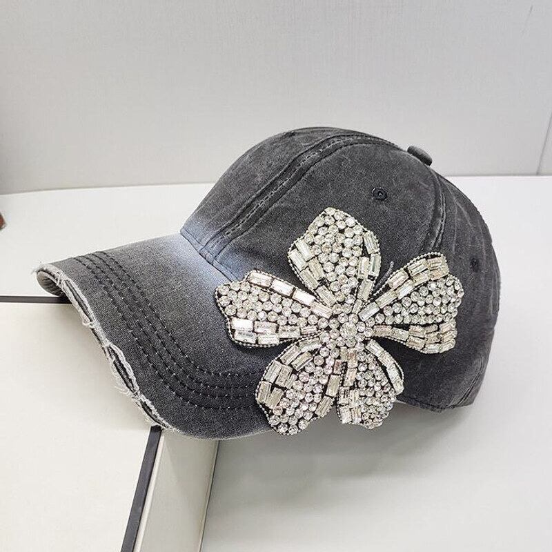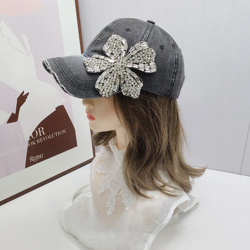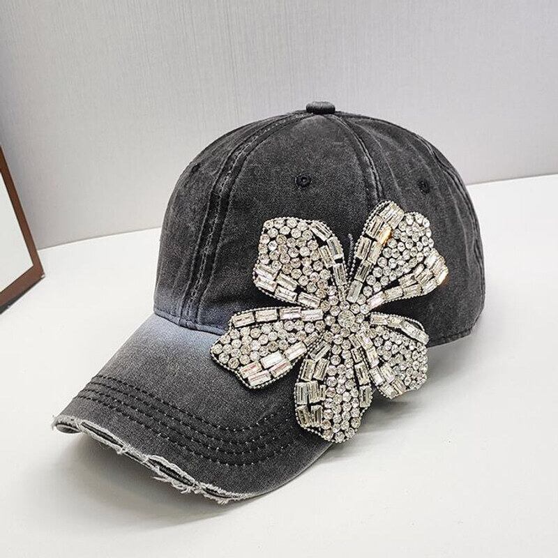 Crystal flower denim cap B4279