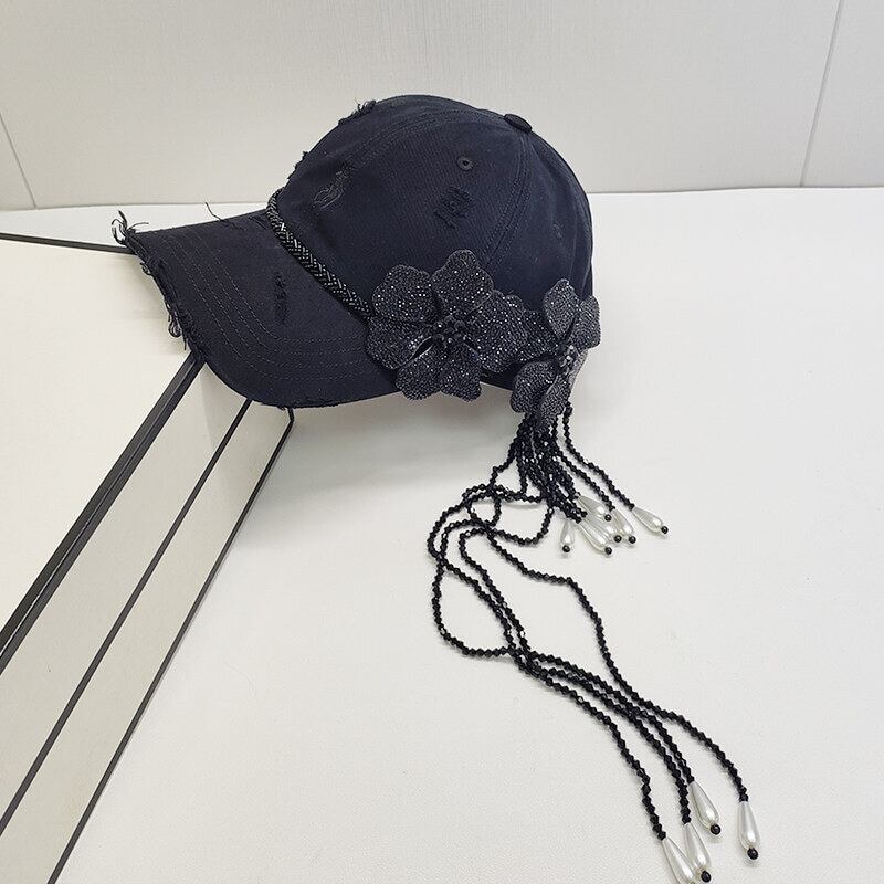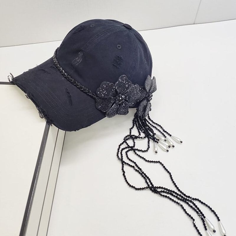 Rhinestone flower tassel cap B4292