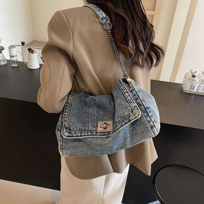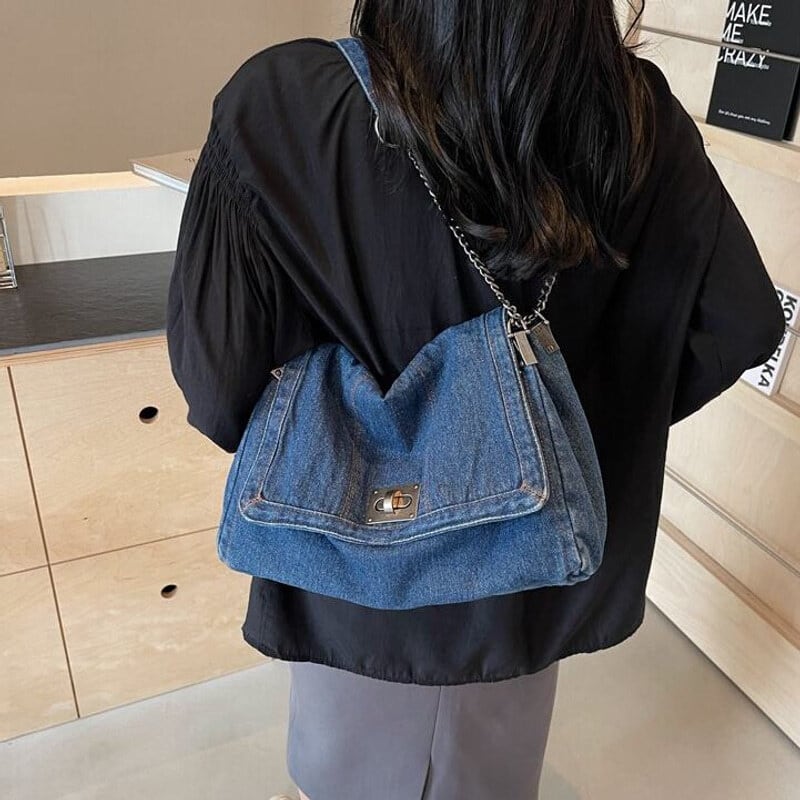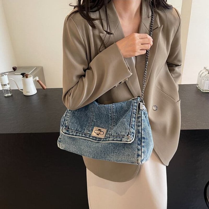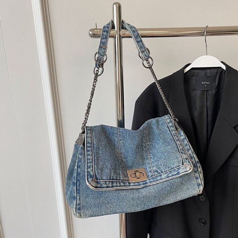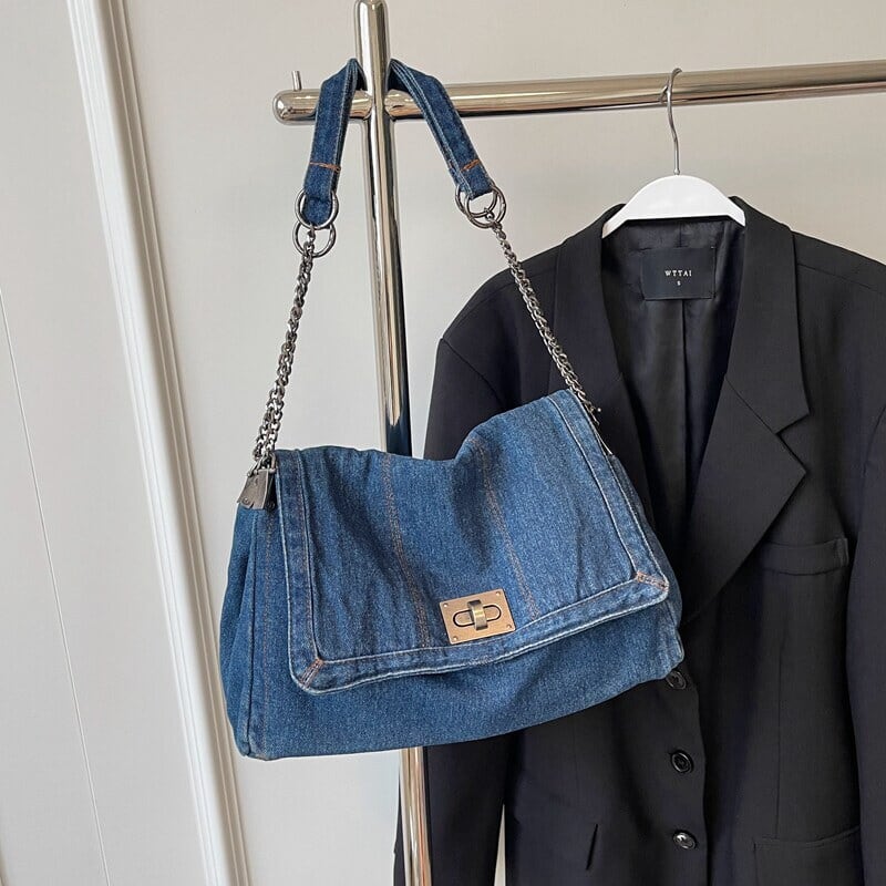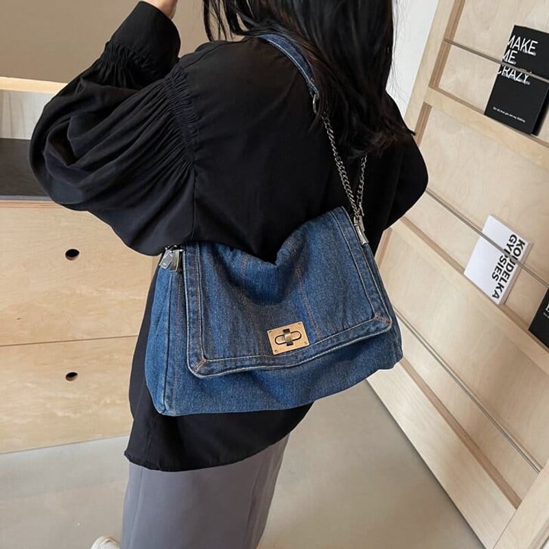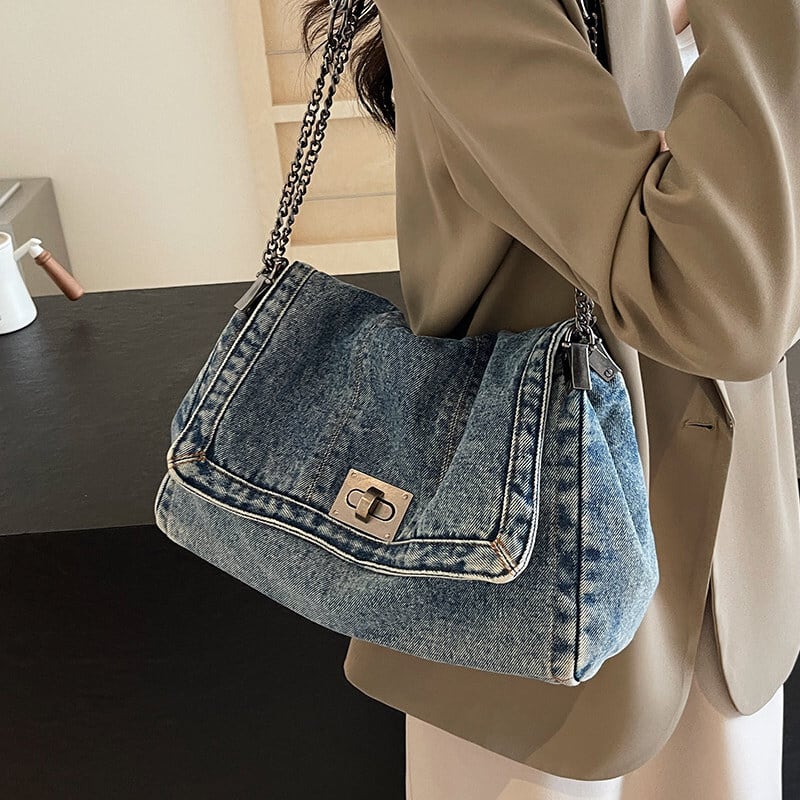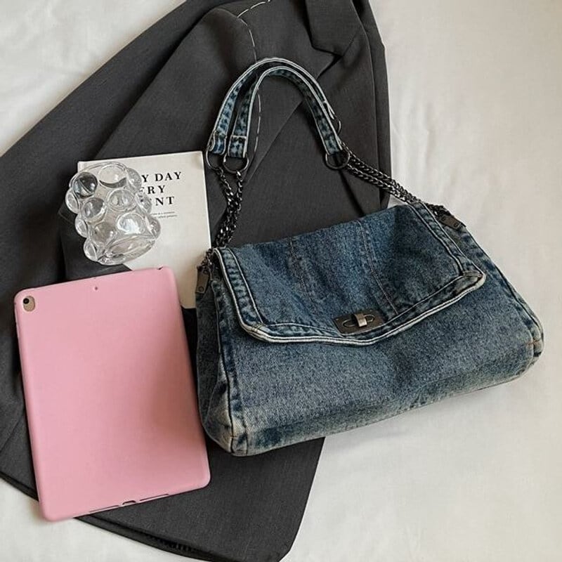 全3色/Denim flap shoulder bag B4323