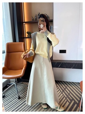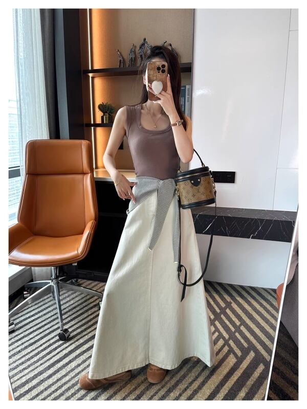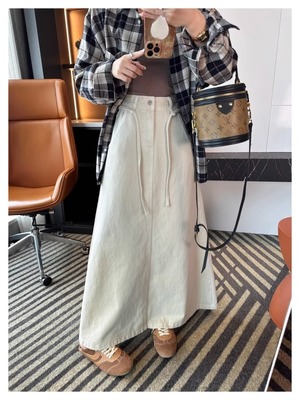 Rope waist A-line long skirt M501