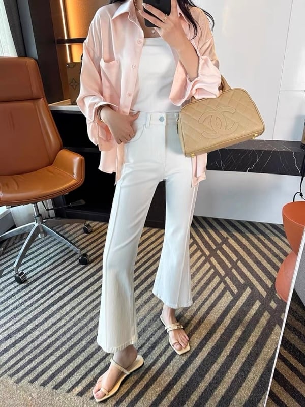 White stretch flare denim M481
