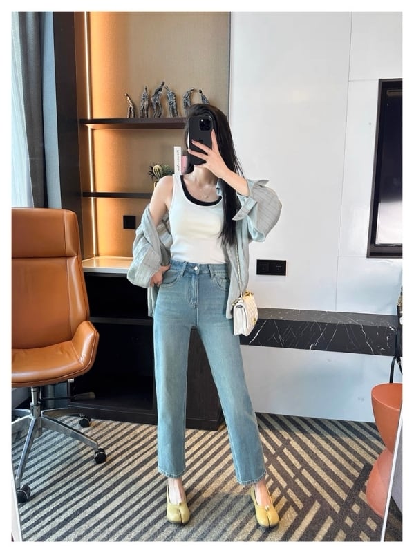 Stretch straight cropped denim M486