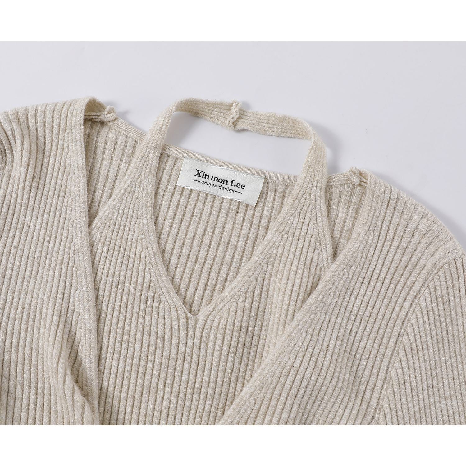 全3色/Layered halter neck knit B4133
