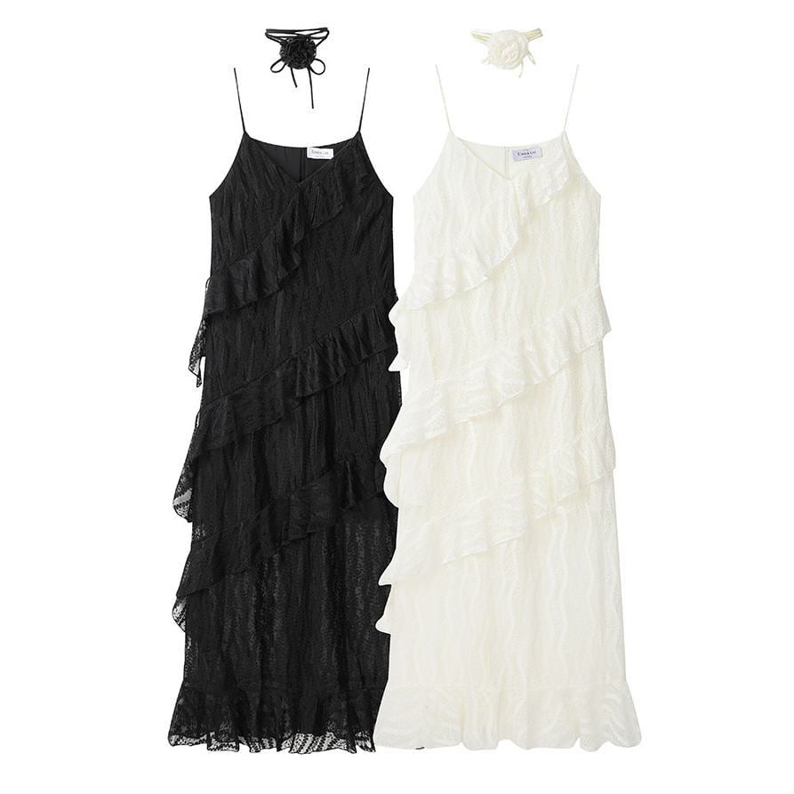 Flower choker lace long dress M1026