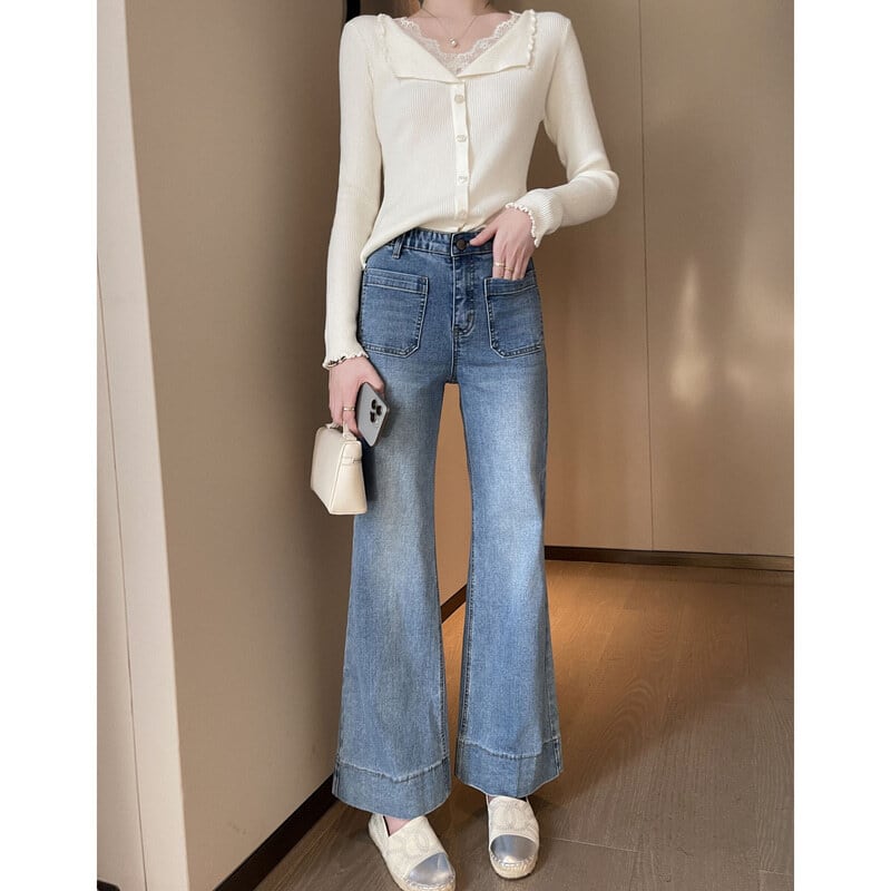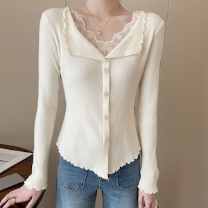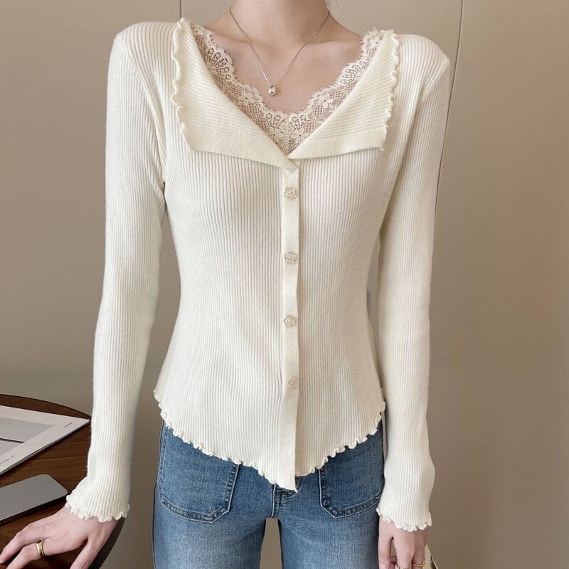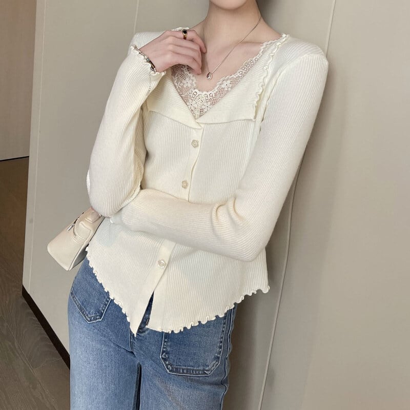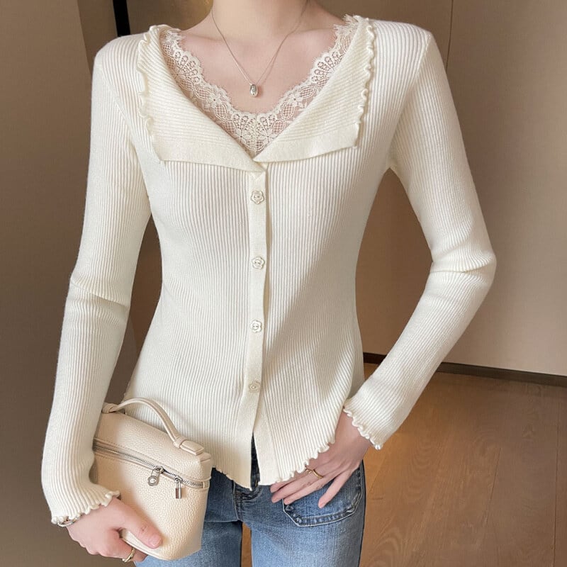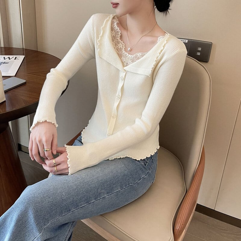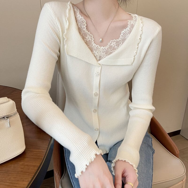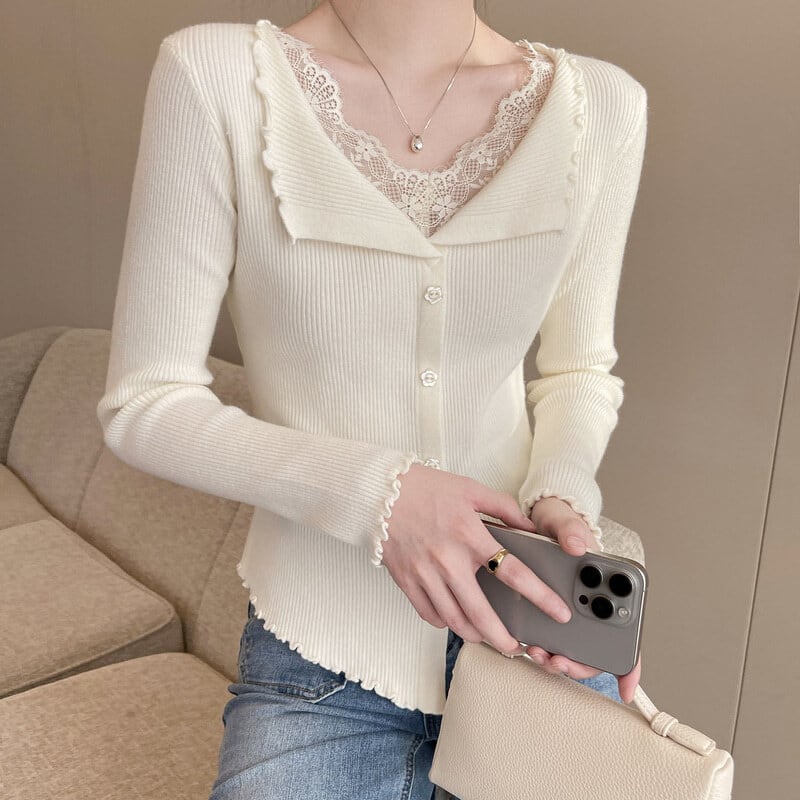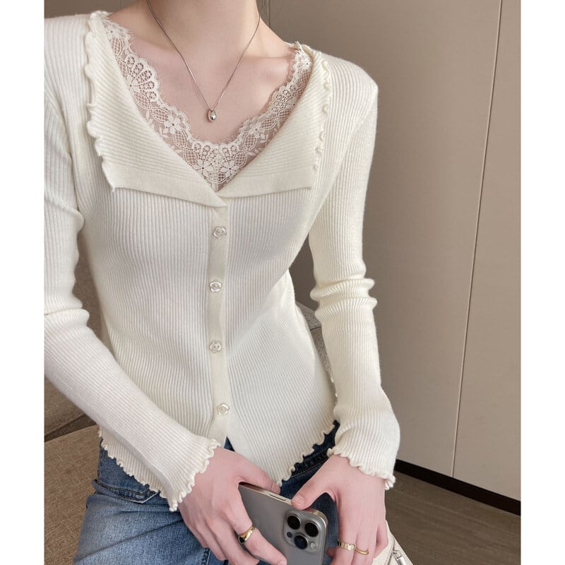 Lace layered slim knit M1040