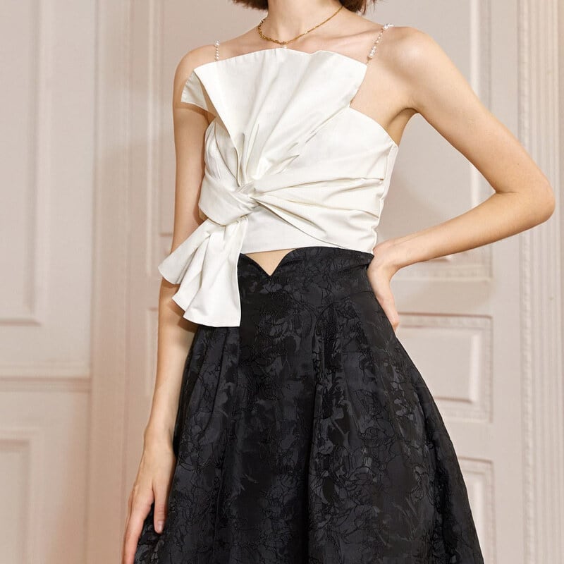 Pearl strap ribbon bustier M1051