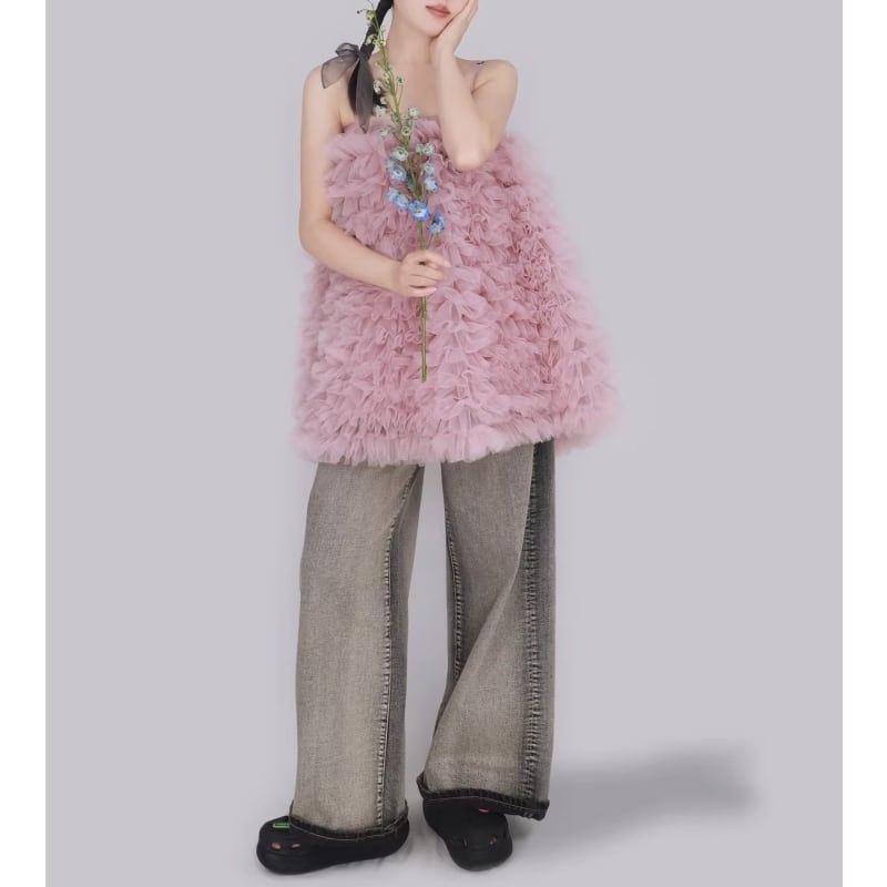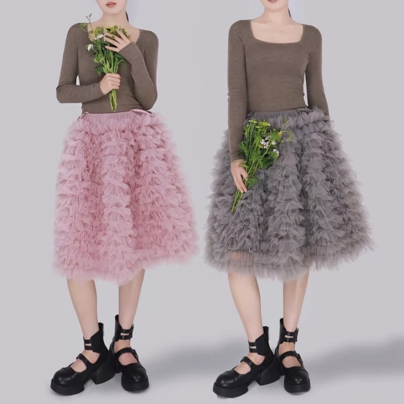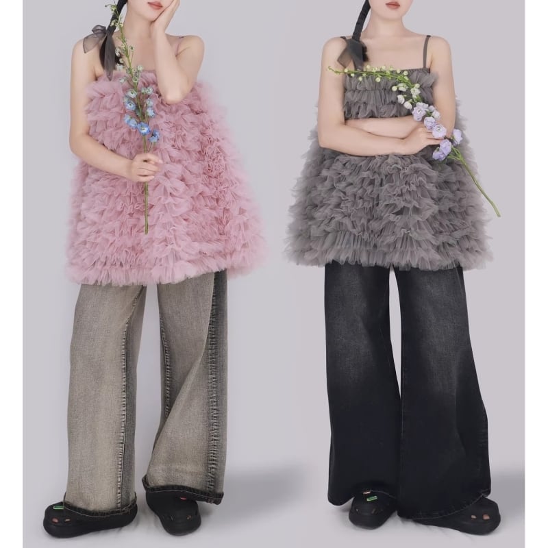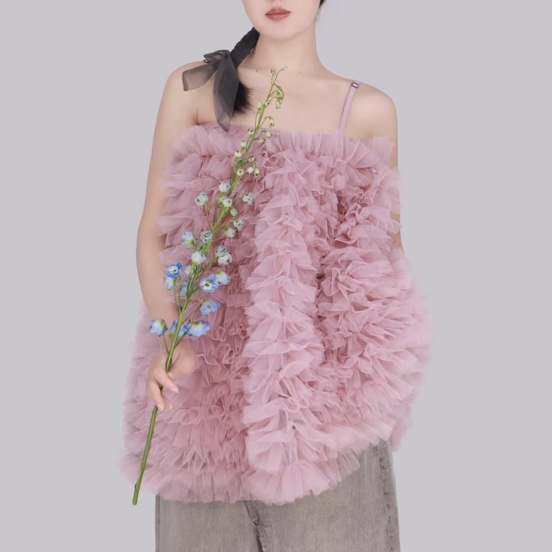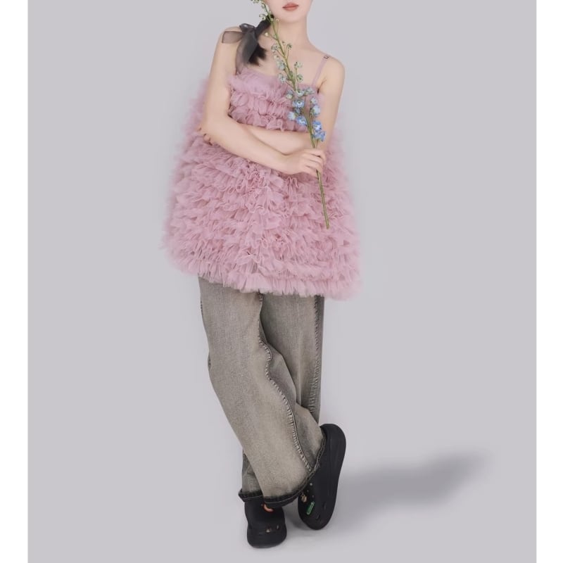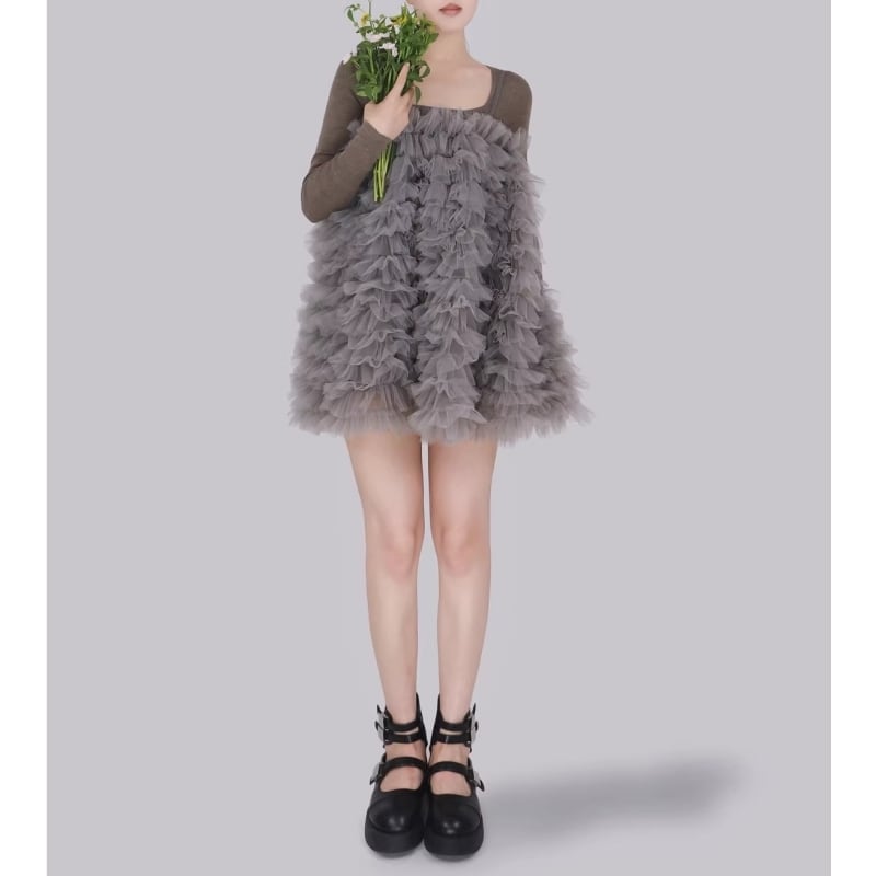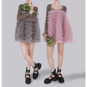 3way tulle ruffle dress – PK/GY M1983