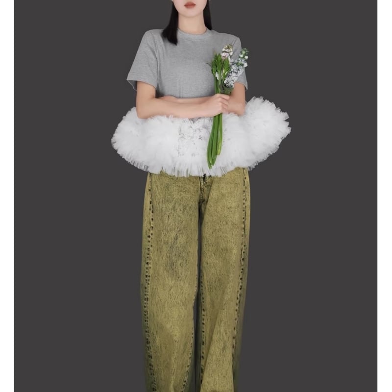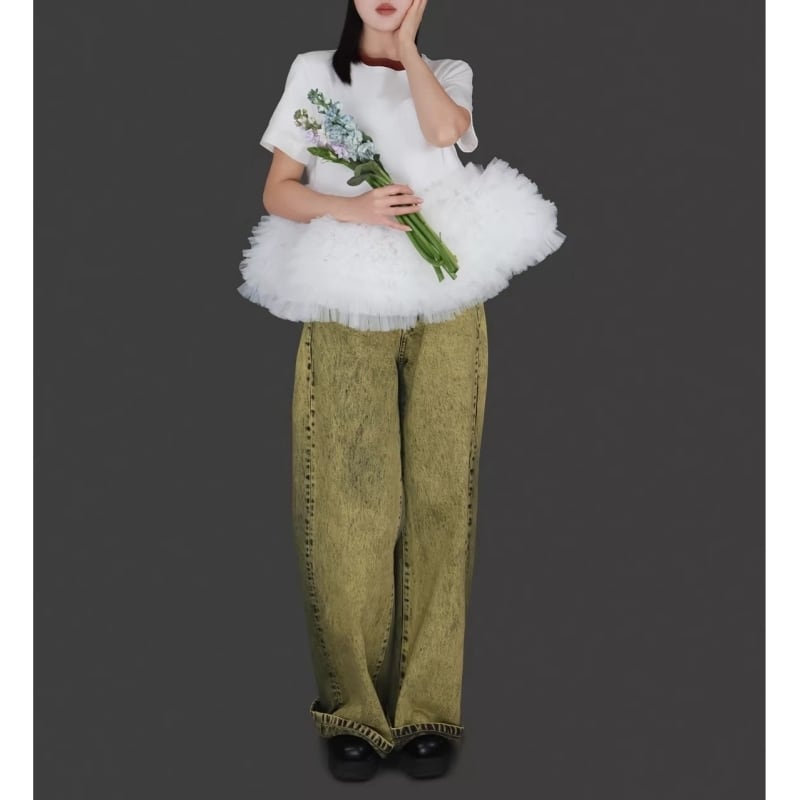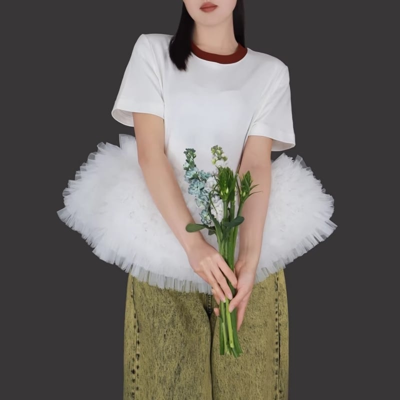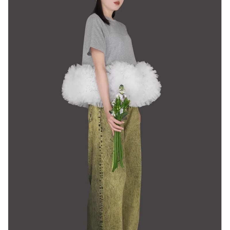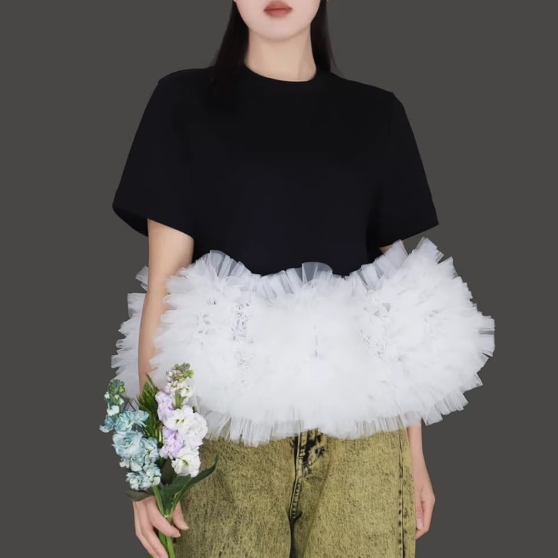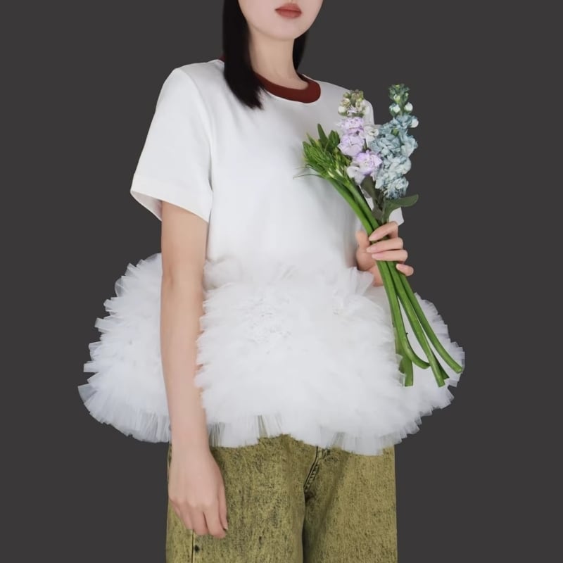 全3色/Cloud tulle peplum tee M1989