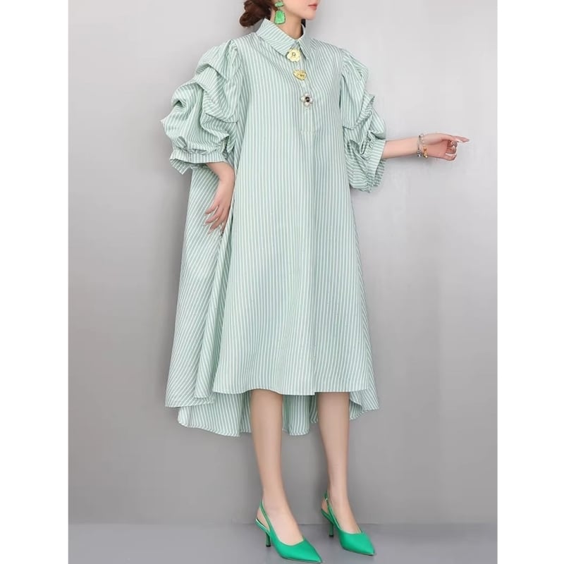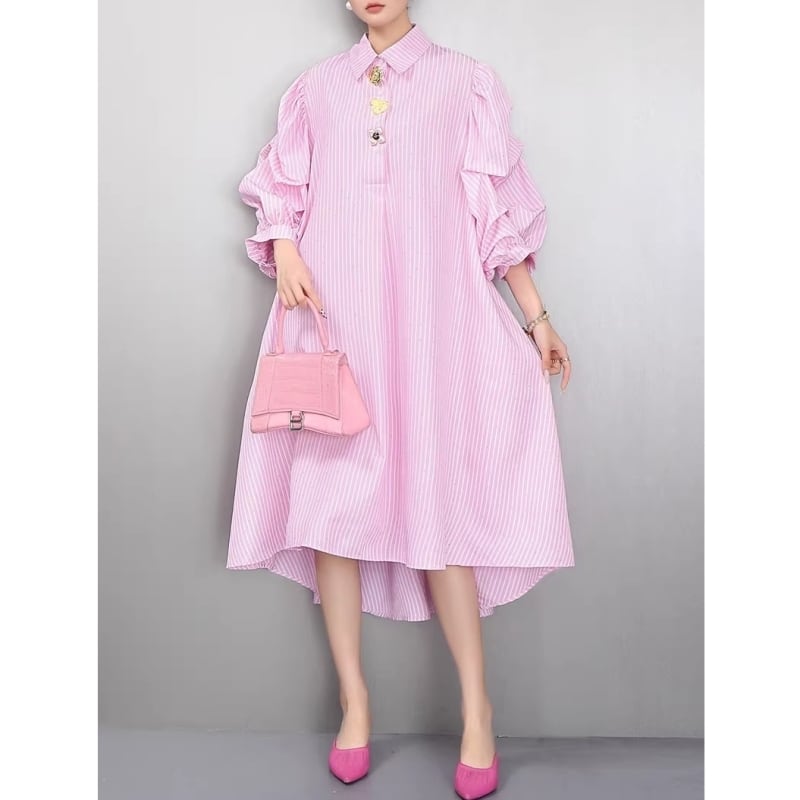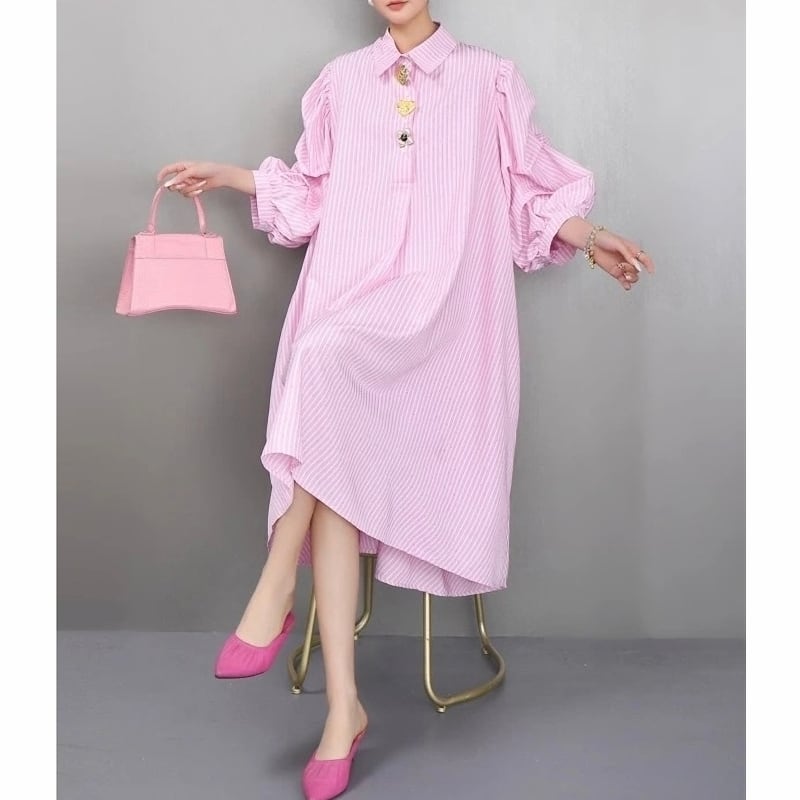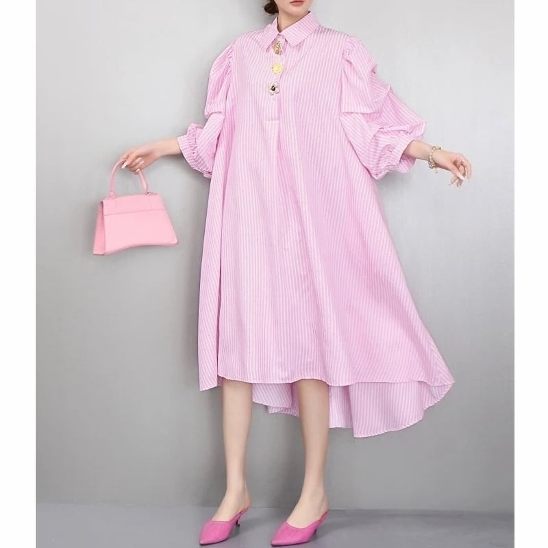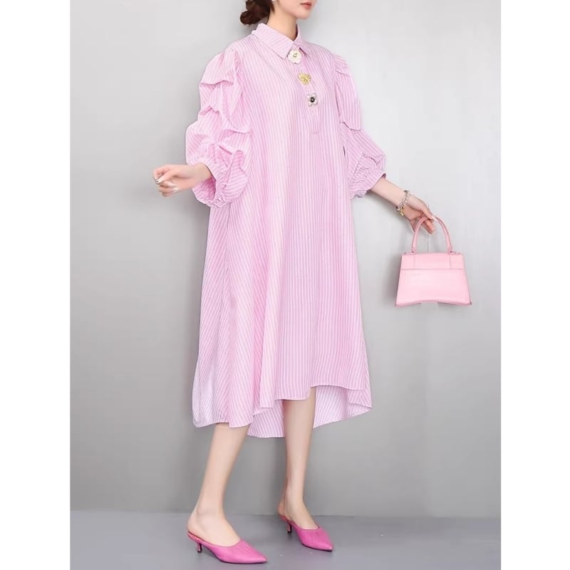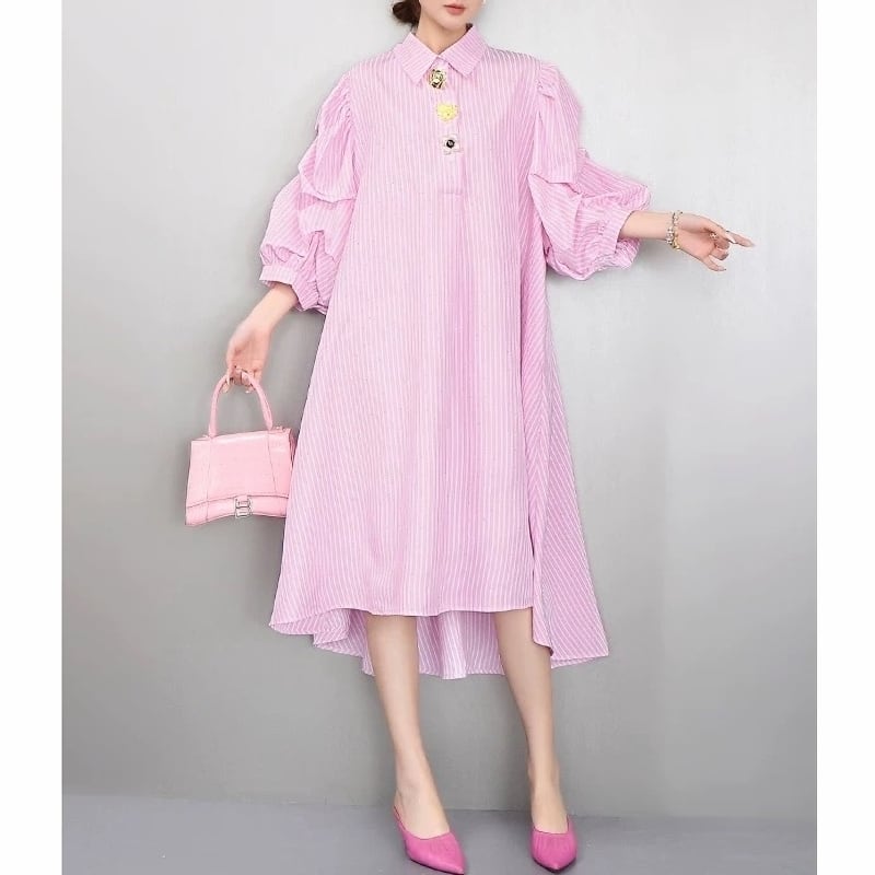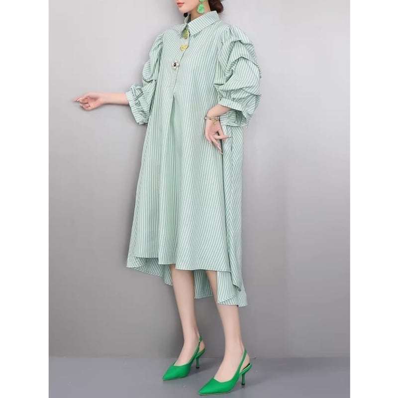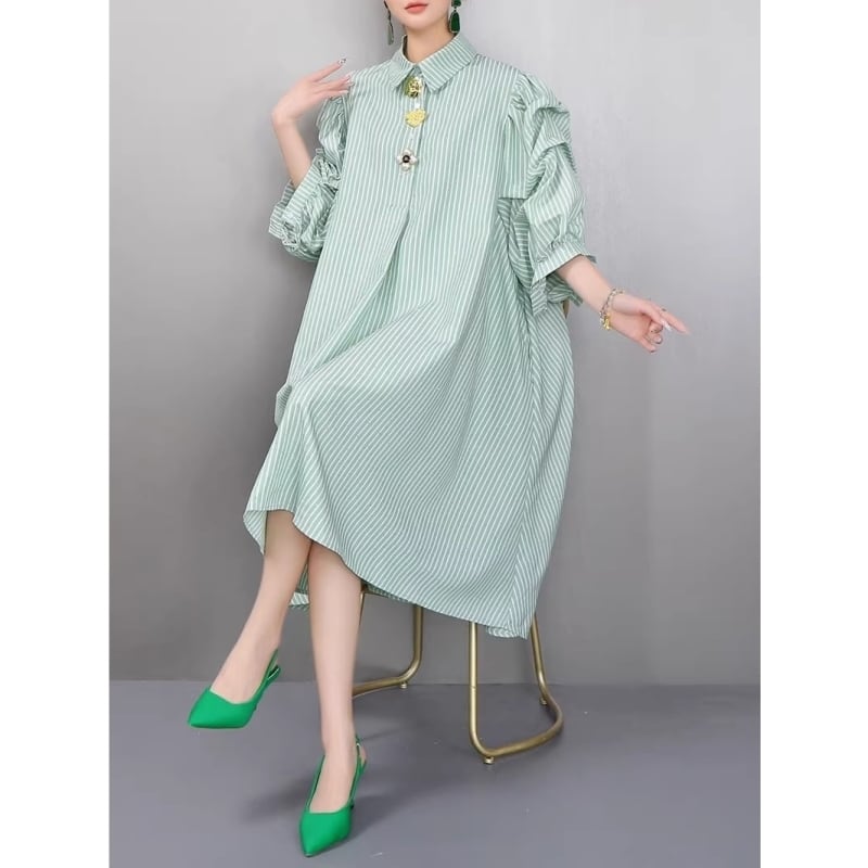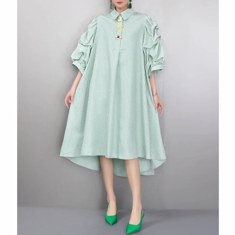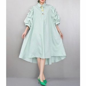 Stripe volume sleeve shirt dress M1993