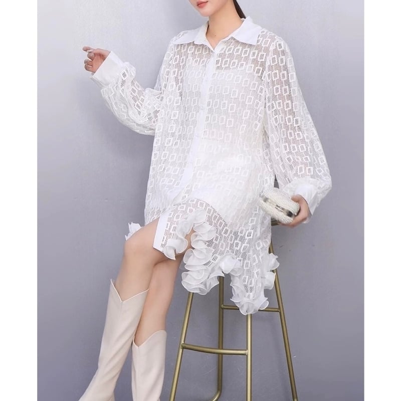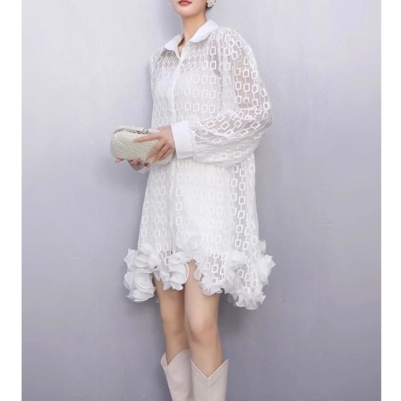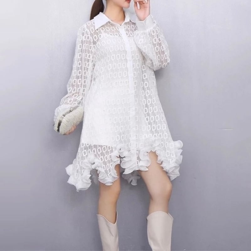 Geometric lace shirt dress M2823