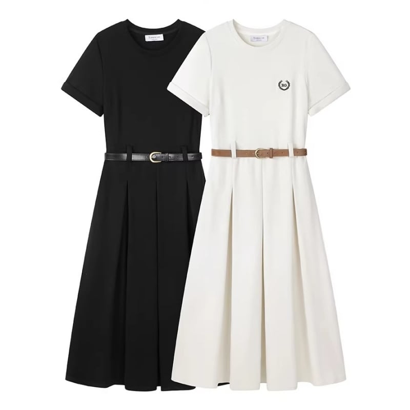 全3色/Belted tuck pleated dress M707