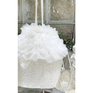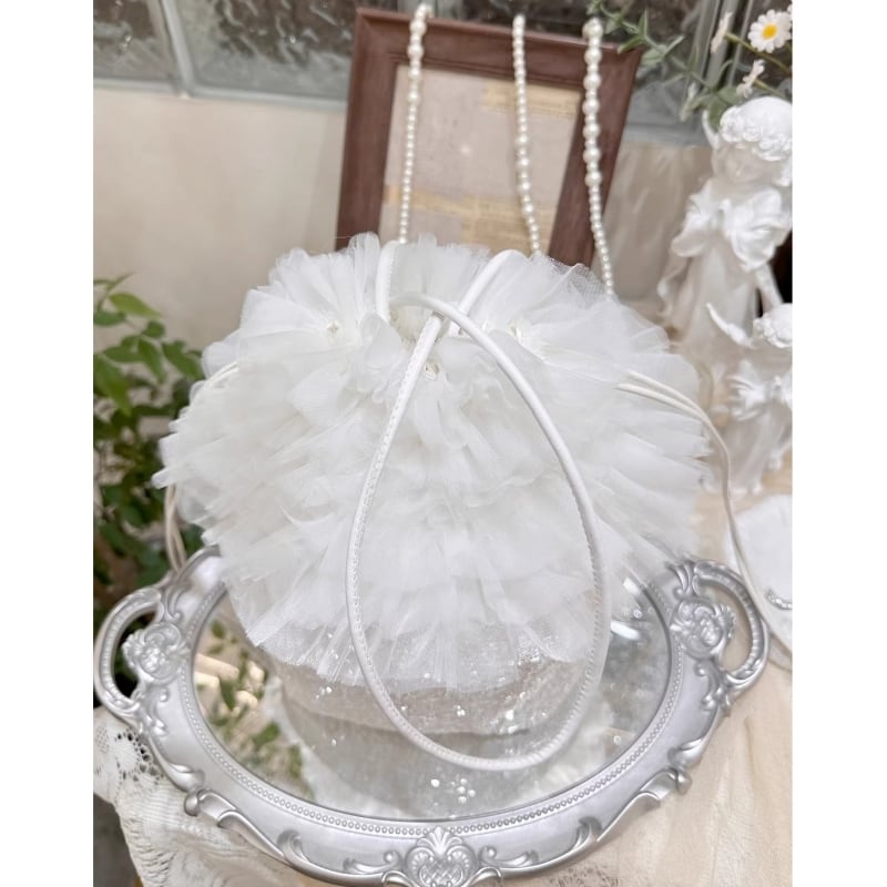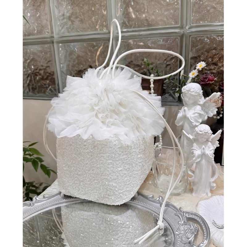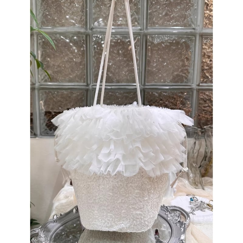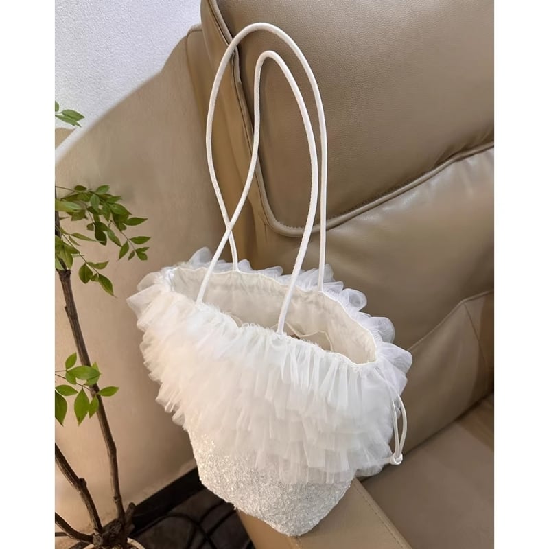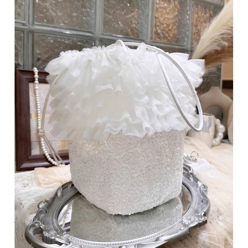 Tulle ruffle sequin bucket bag - WH M782