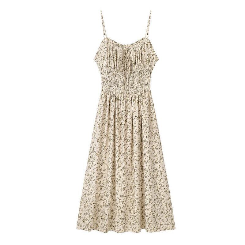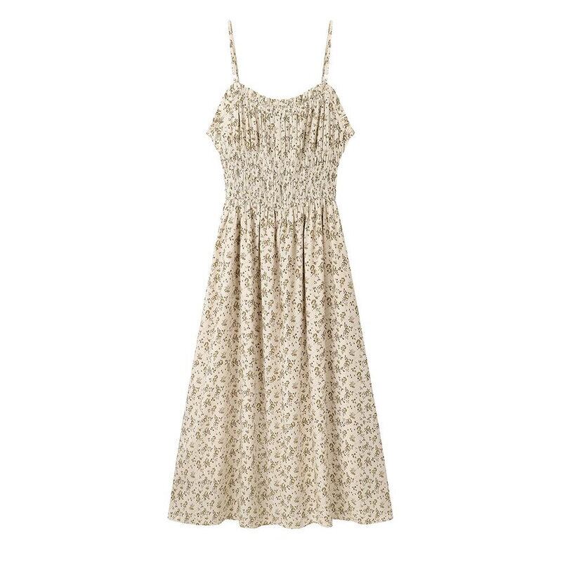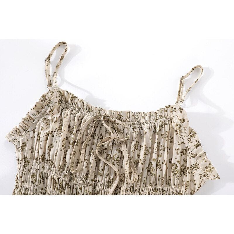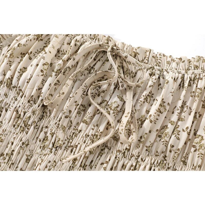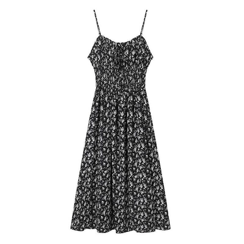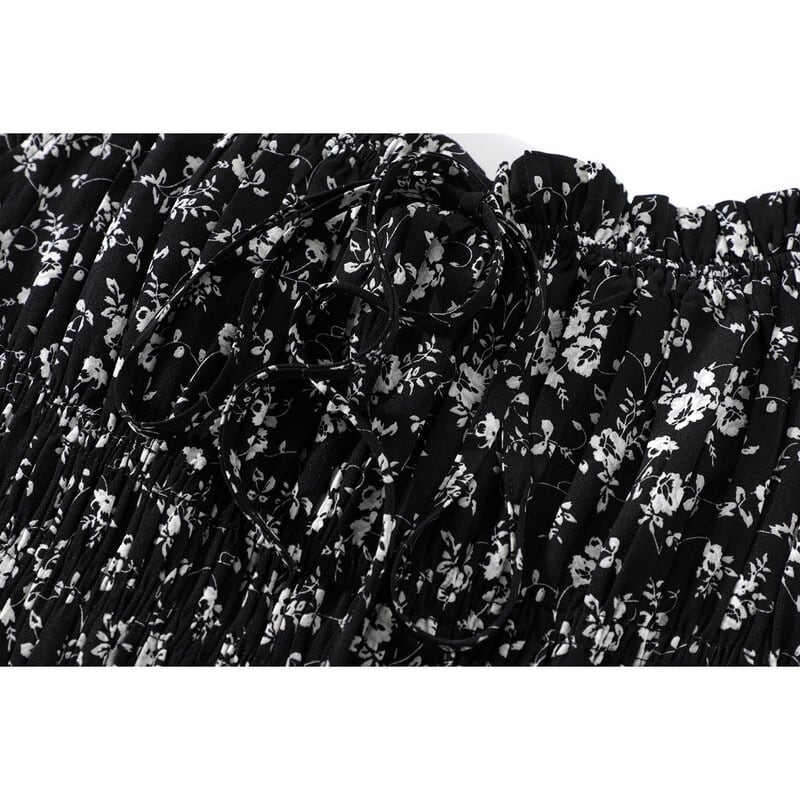 Flower shirring flare dress M717