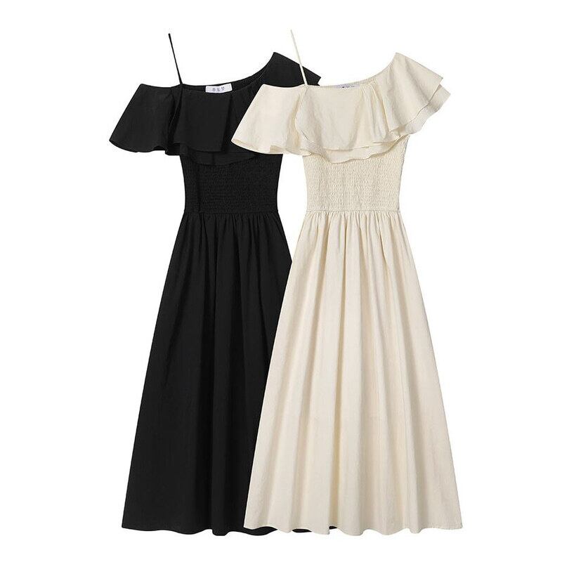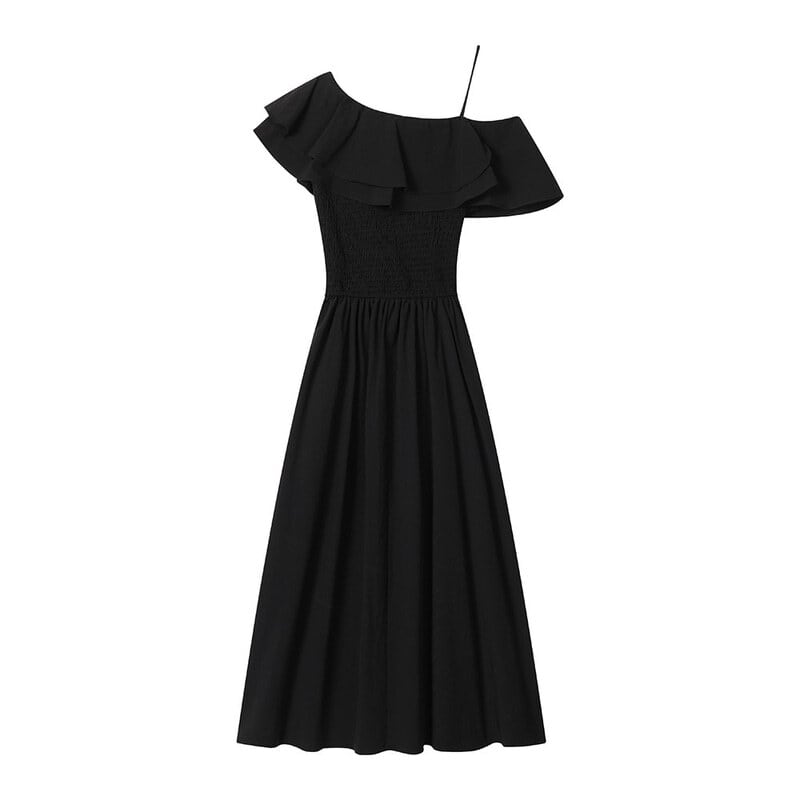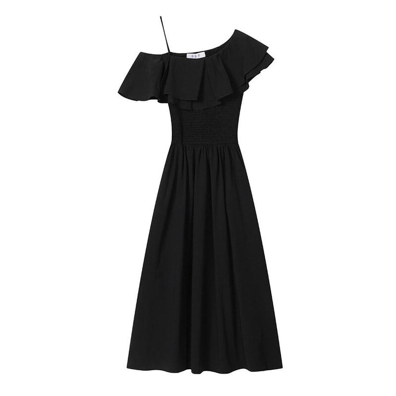 One shoulder flare dress M721