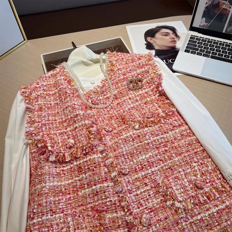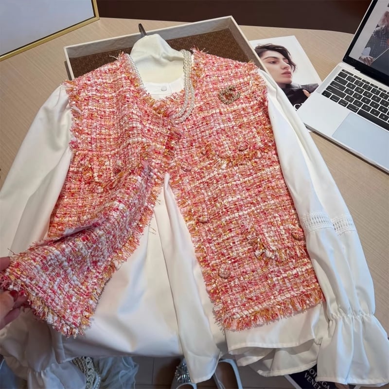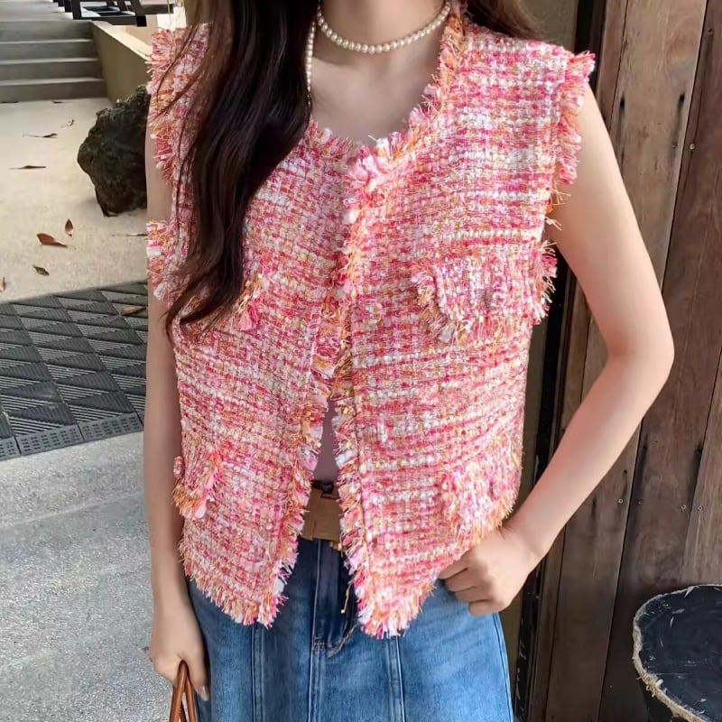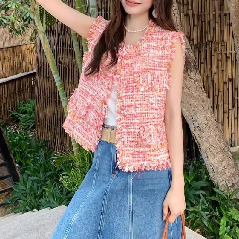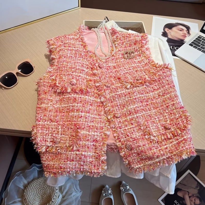 Coral blush tweed gilet M826