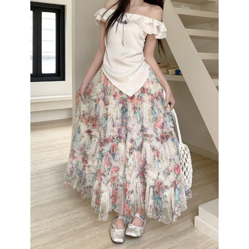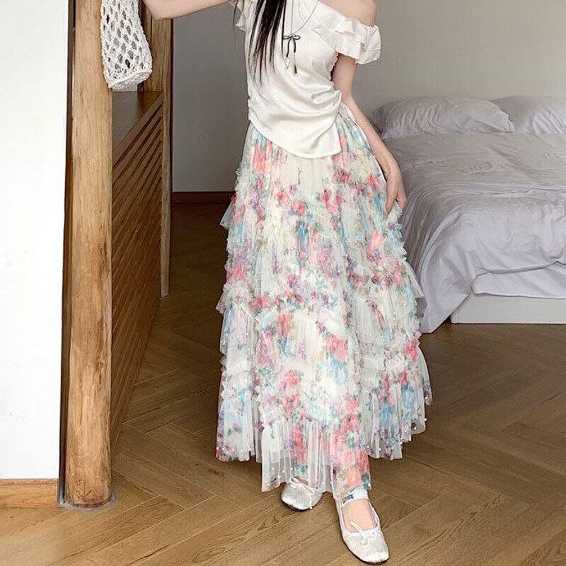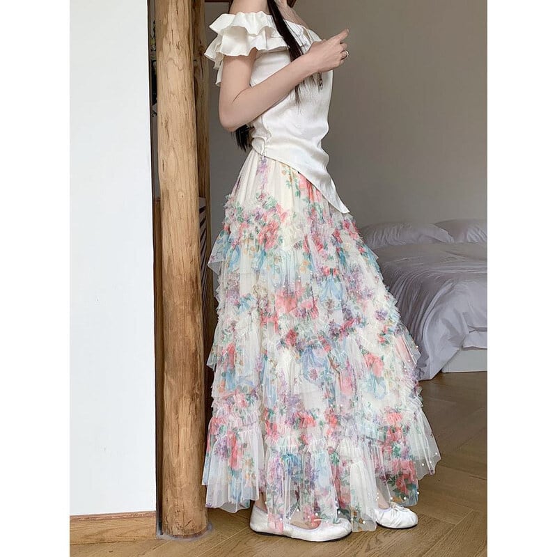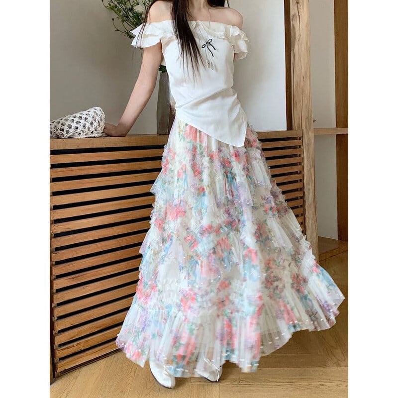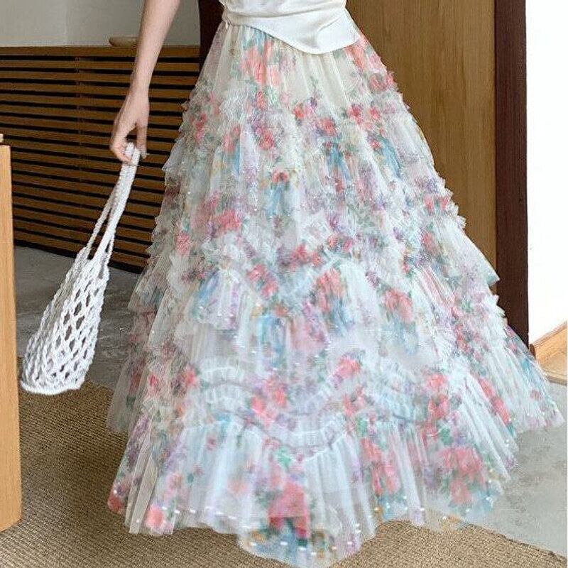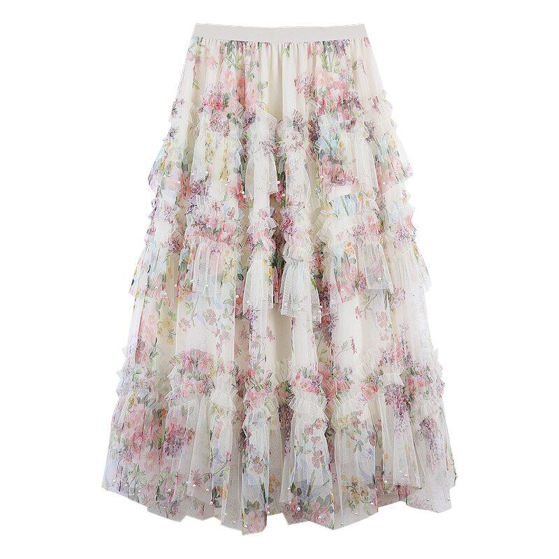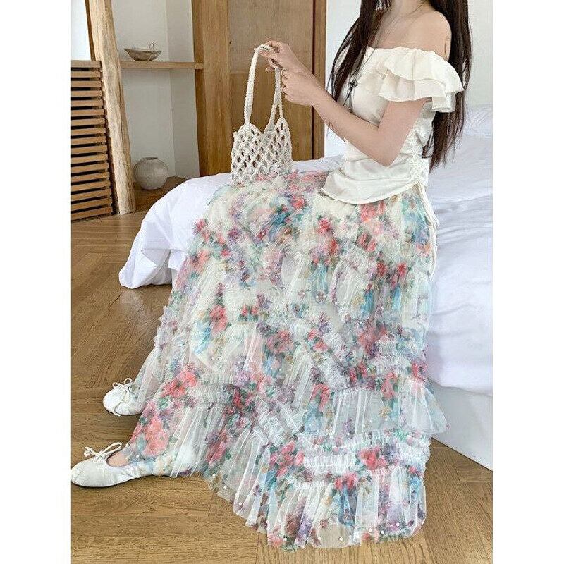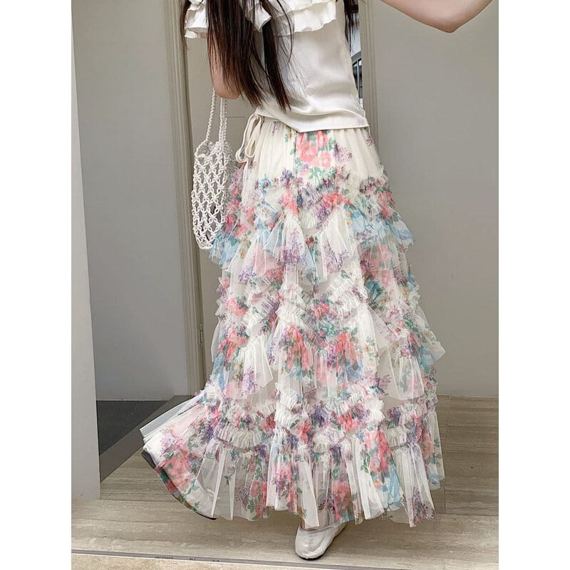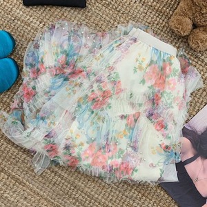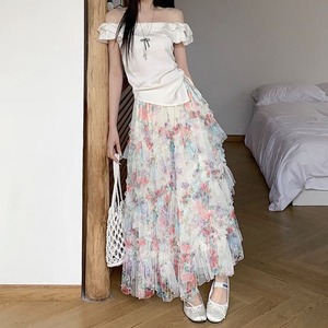 Flower tulle long flare skirt M567