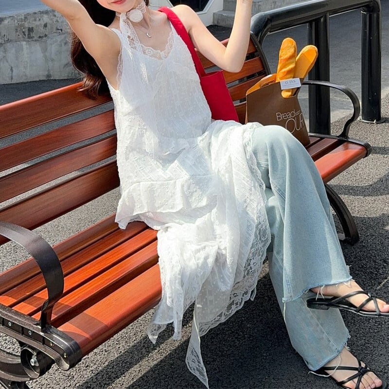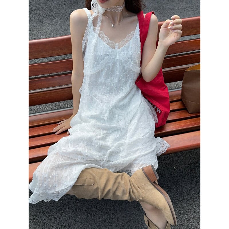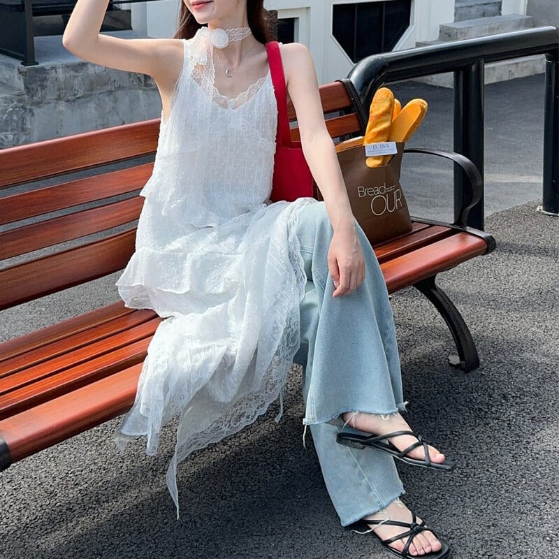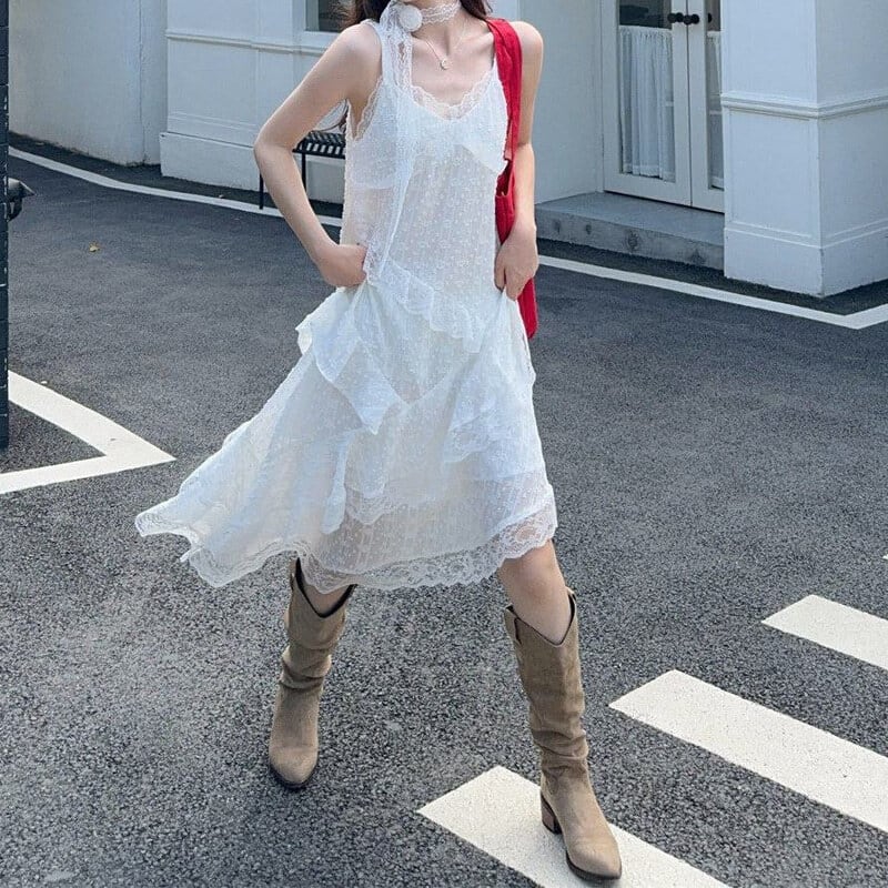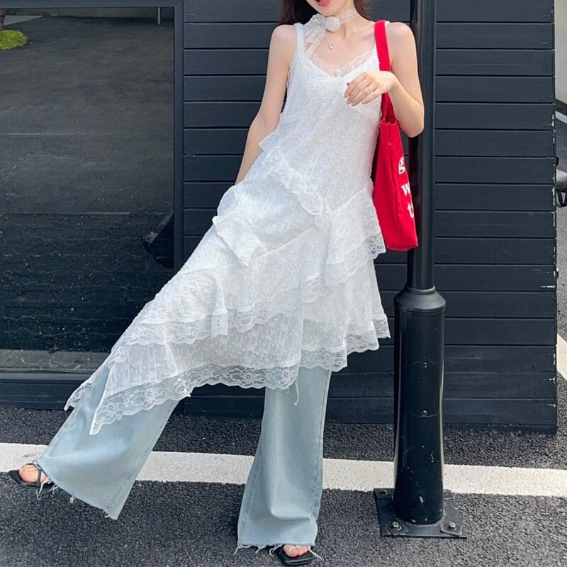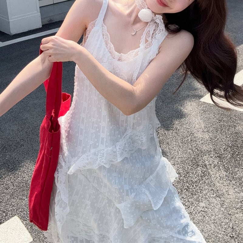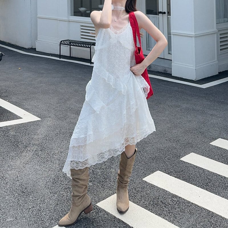 Asymmetry lace cami dress M568