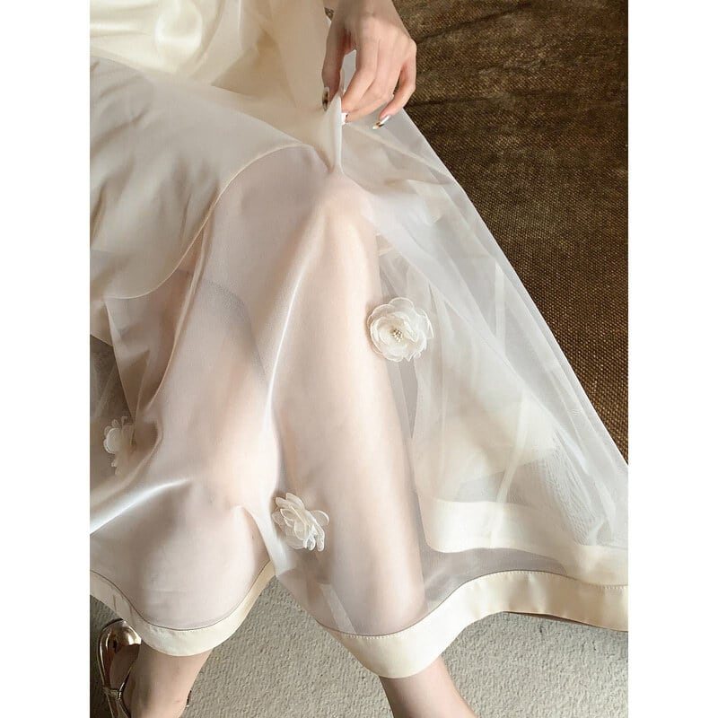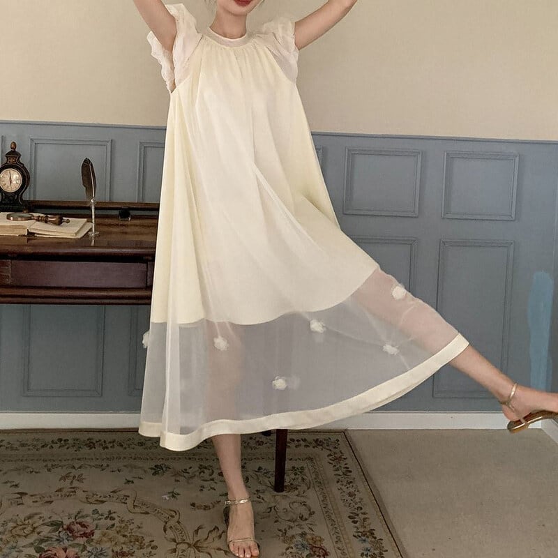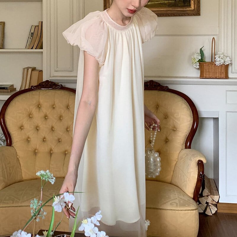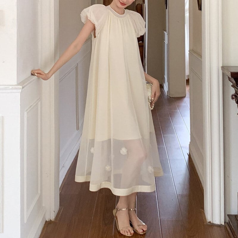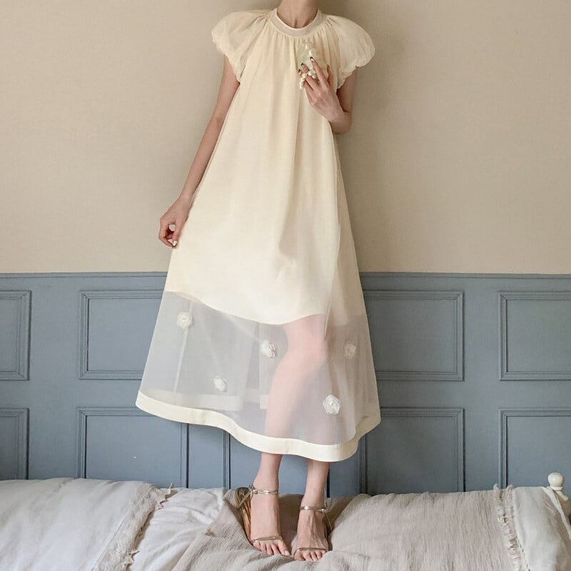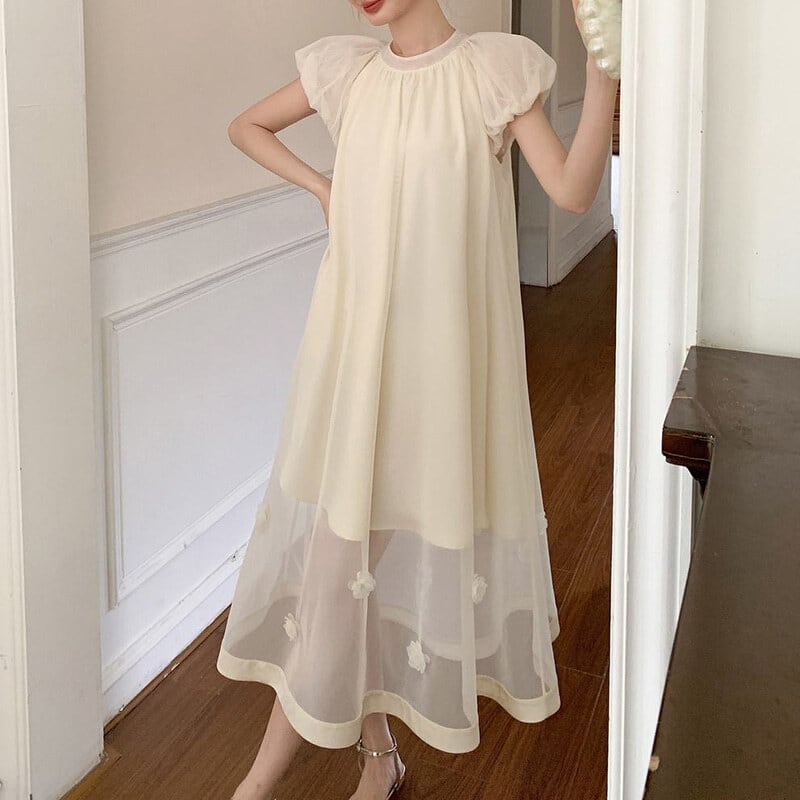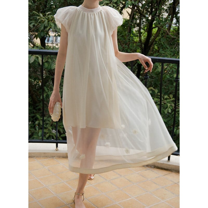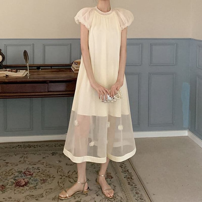 Sheer hem puff dress M590
