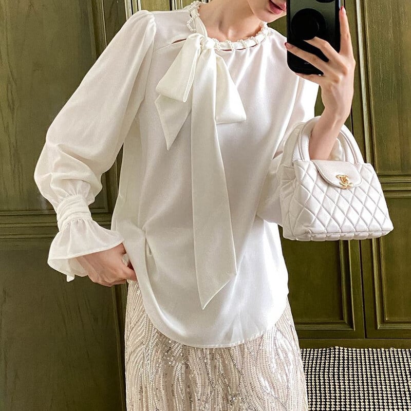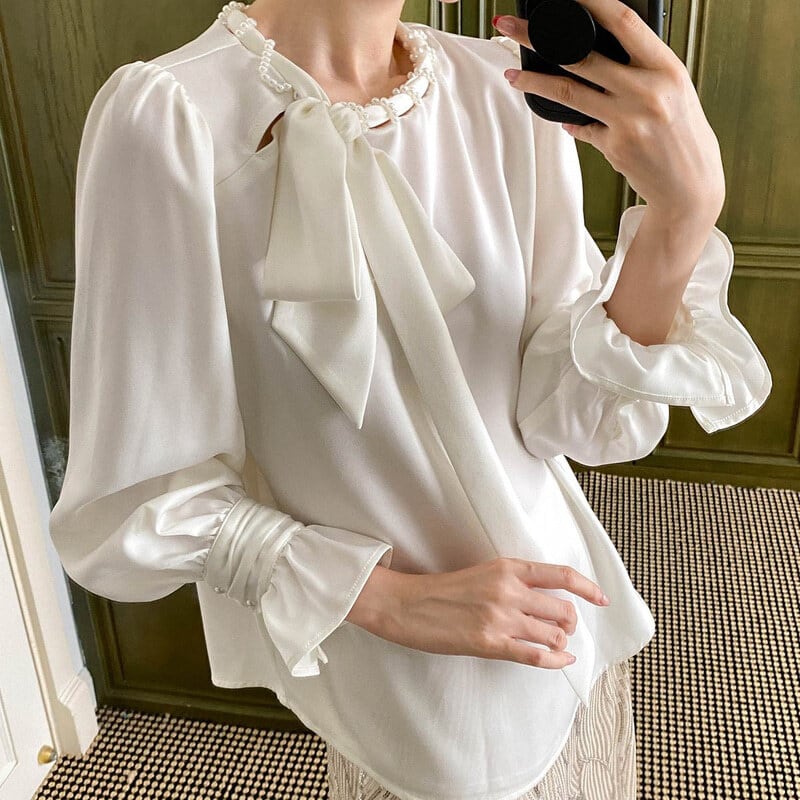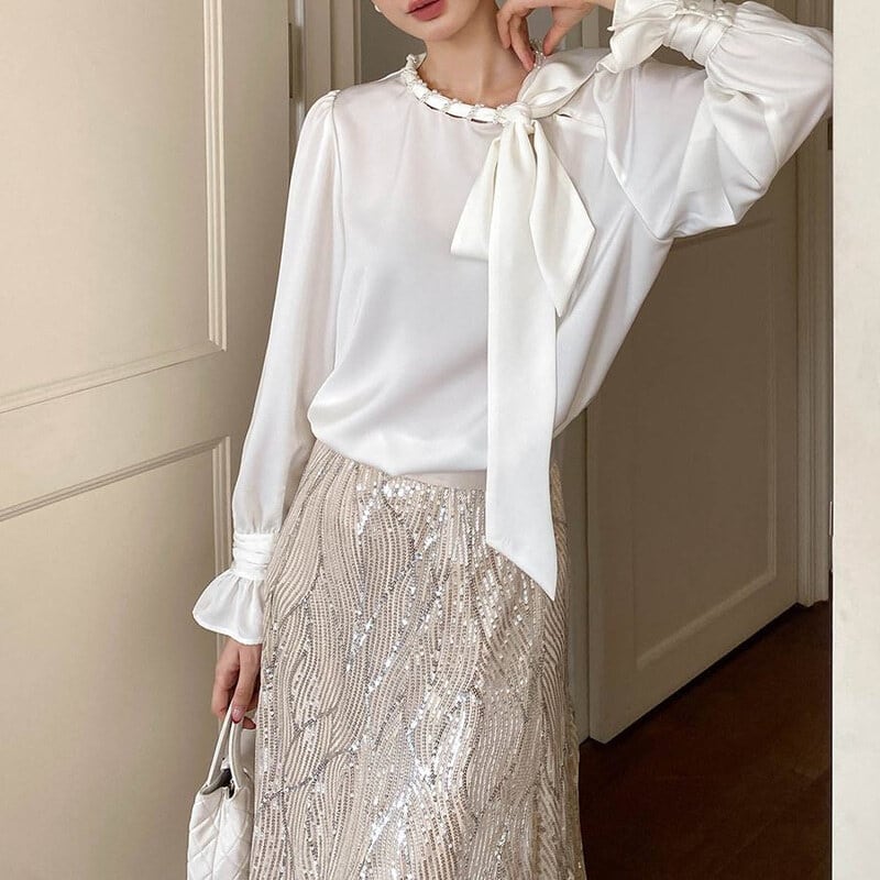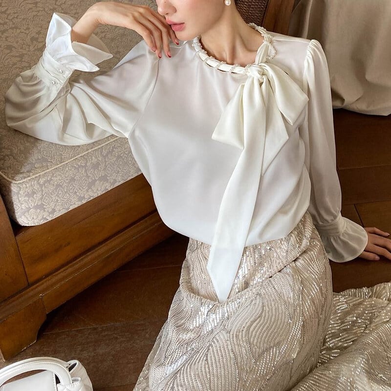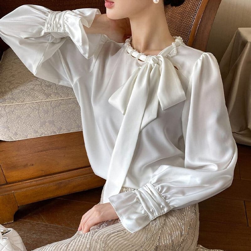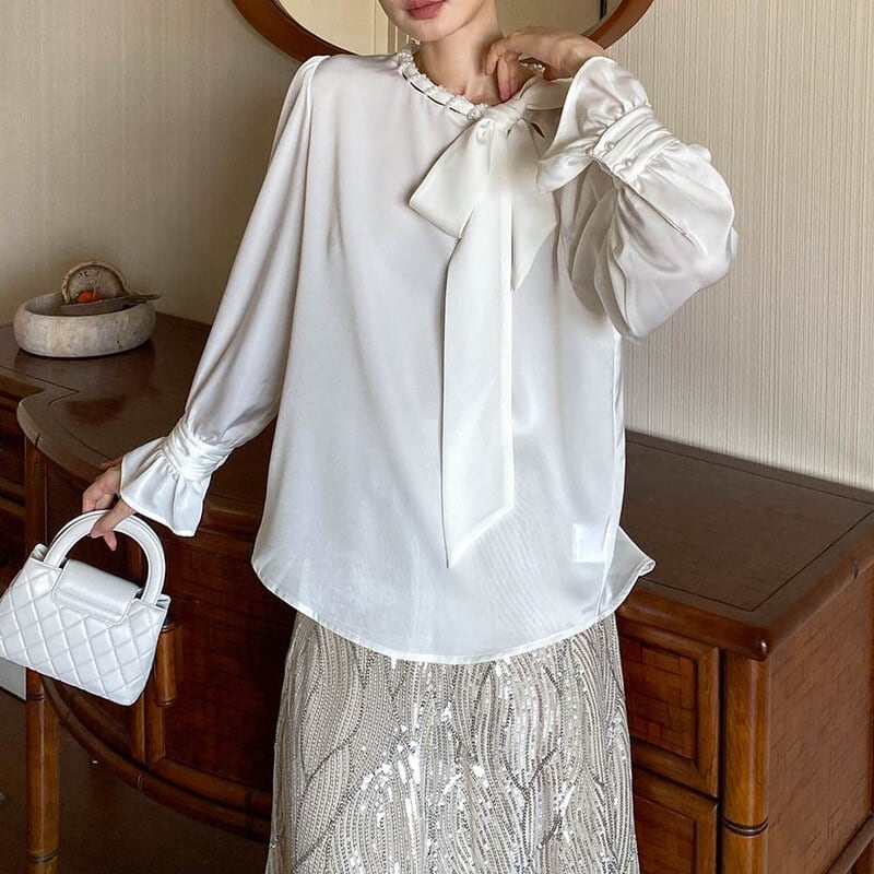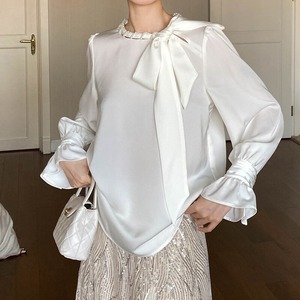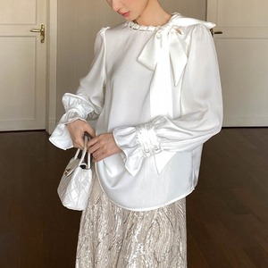 Satin bowtie blouse M671
