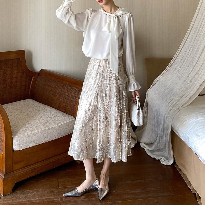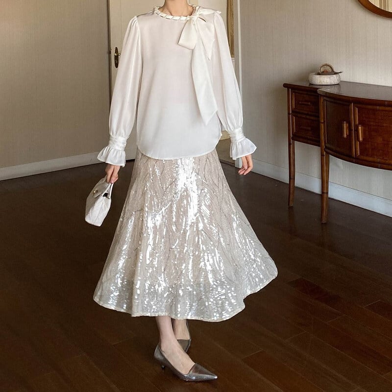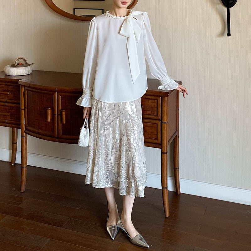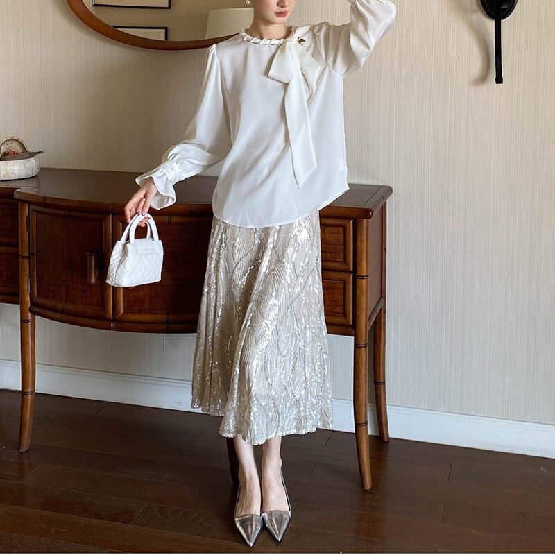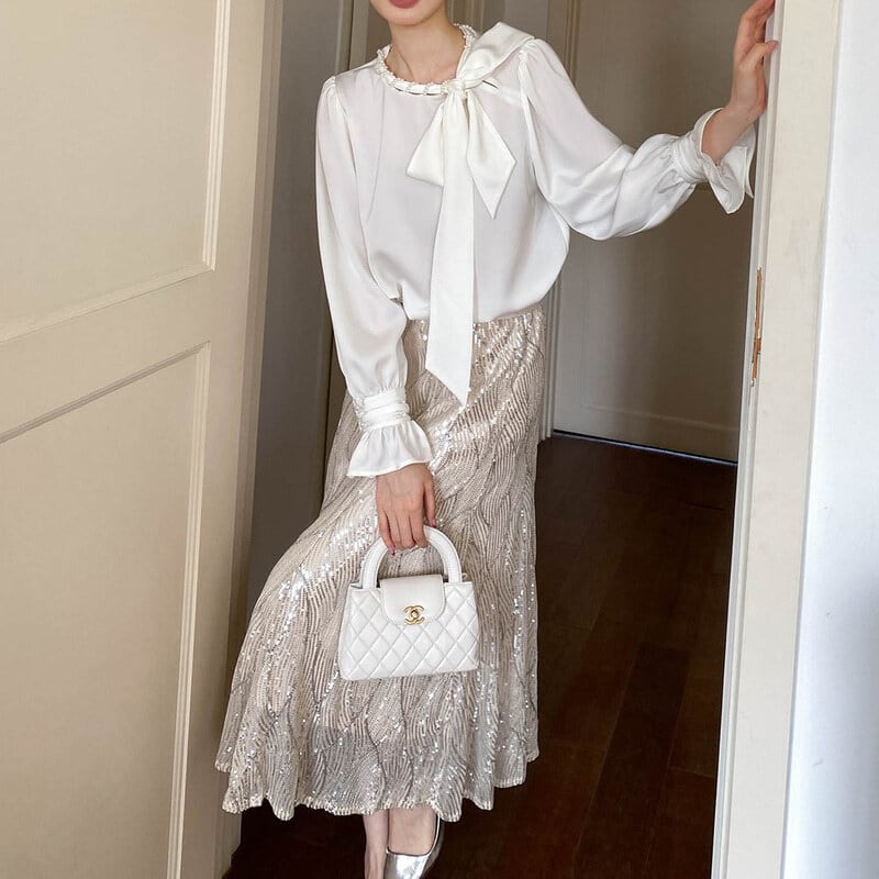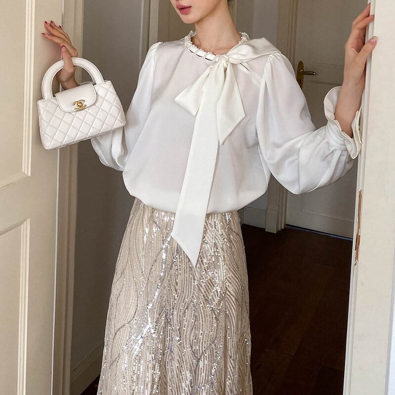 Satin bowtie blouse M671