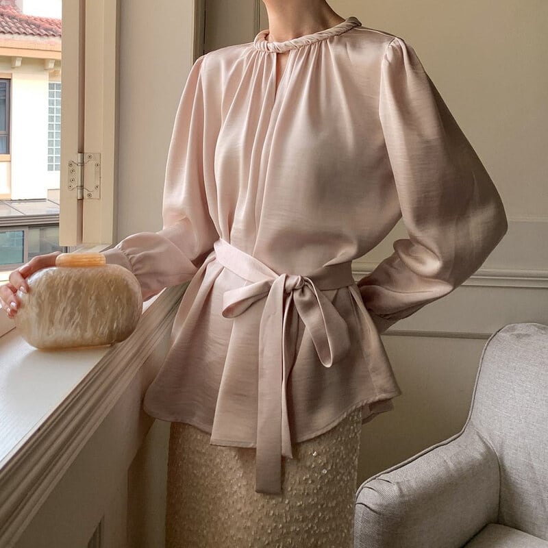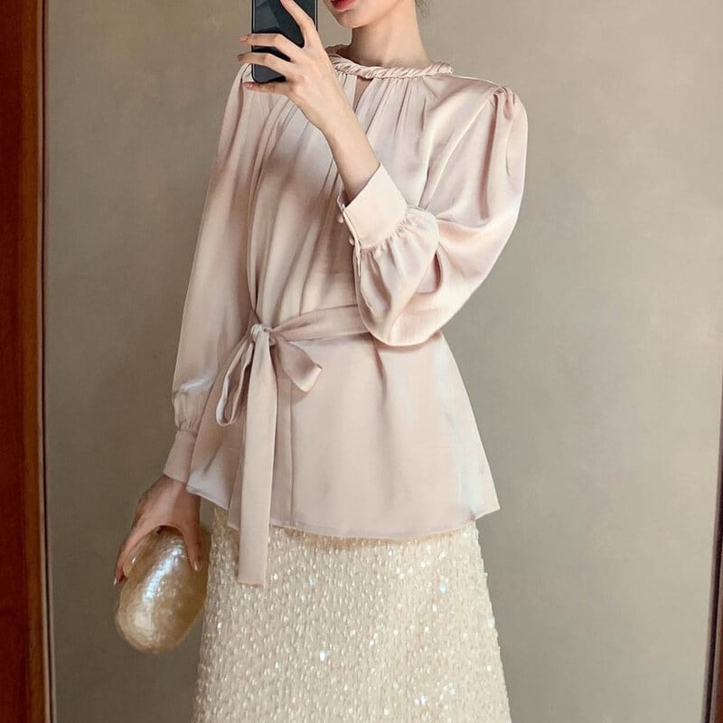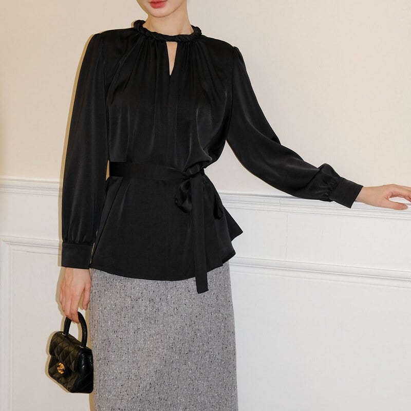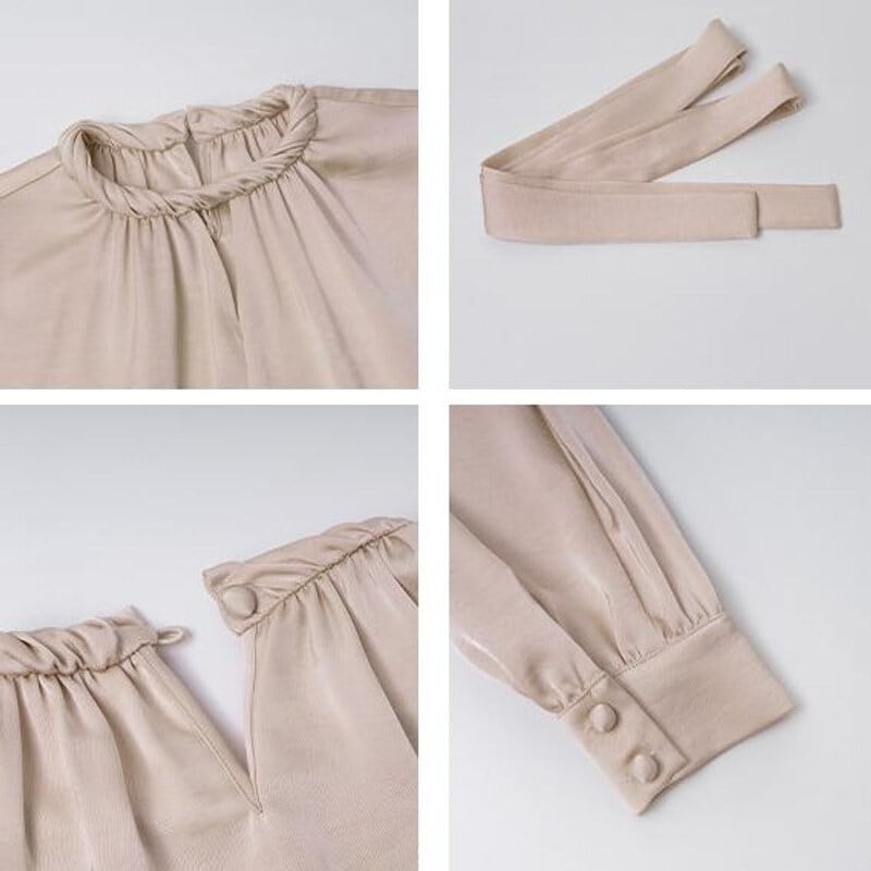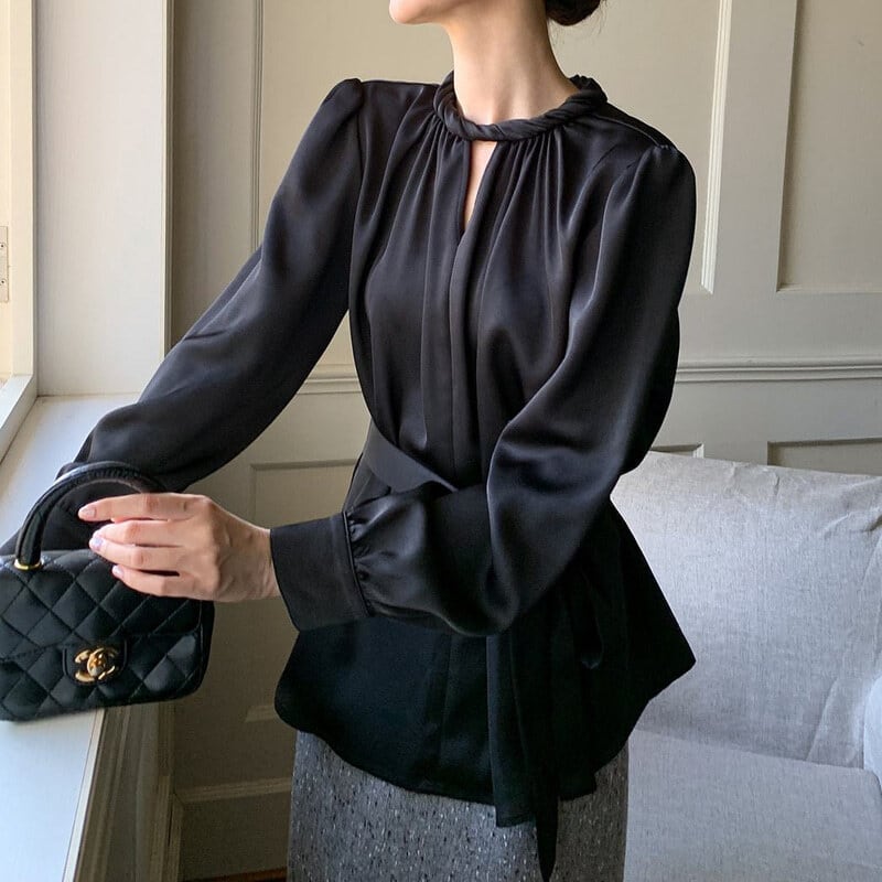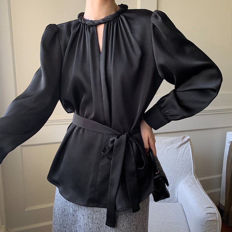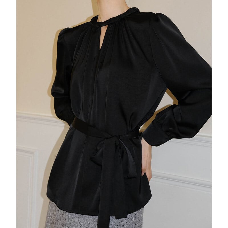 Twist design neck satin blouse M741