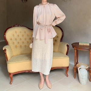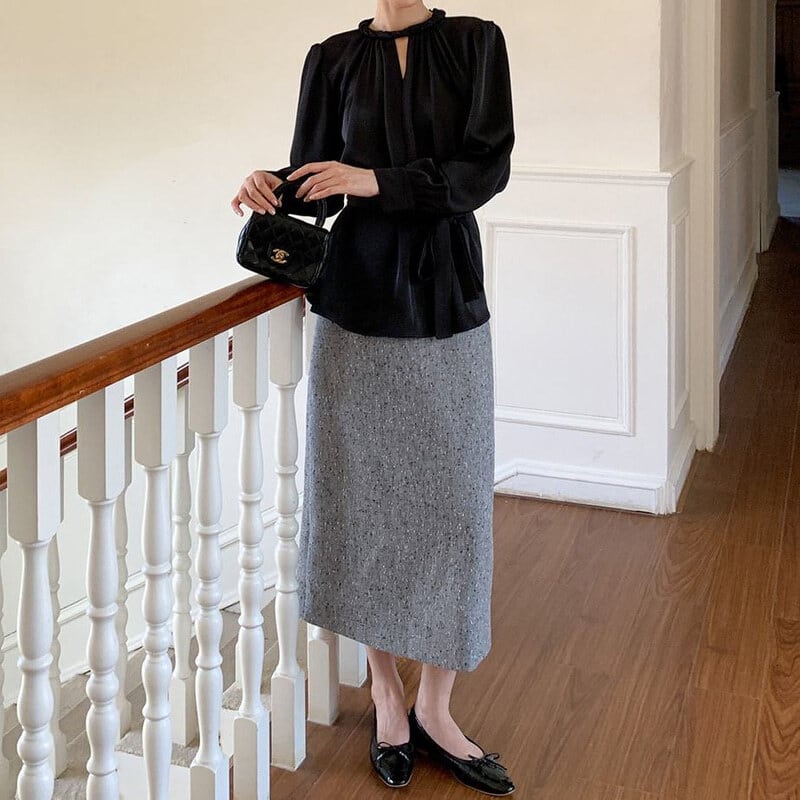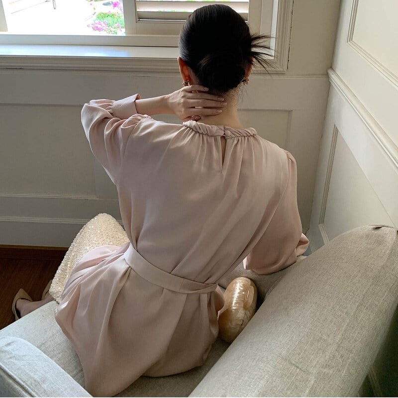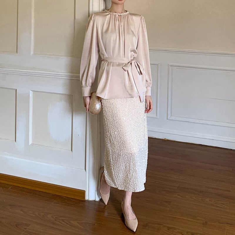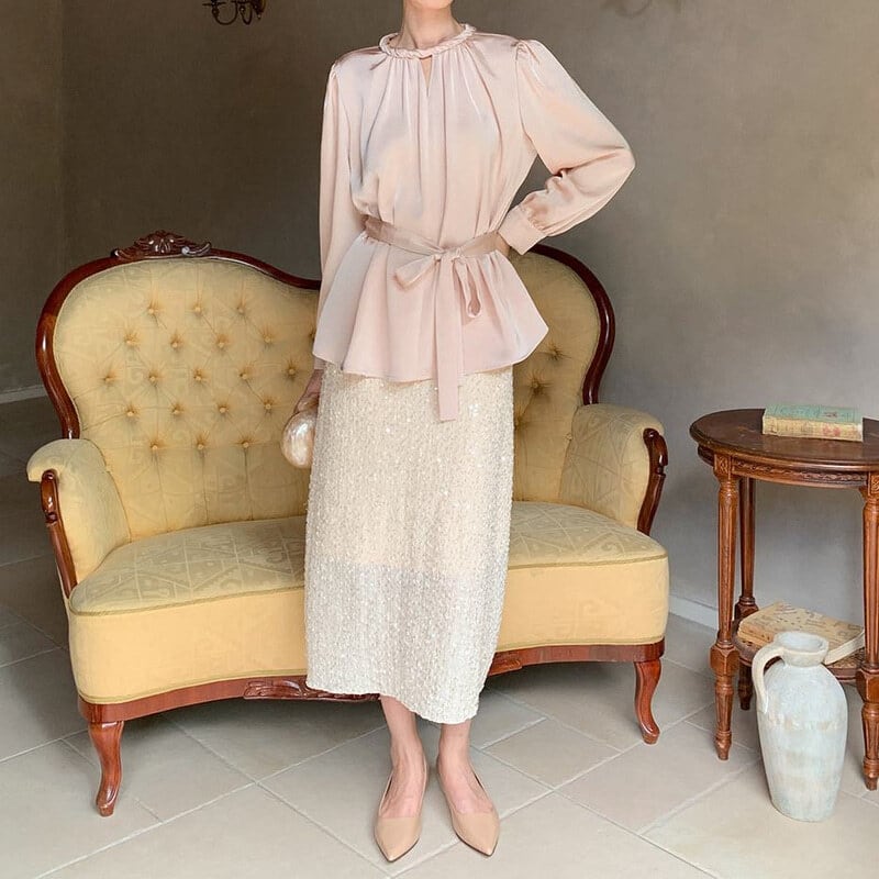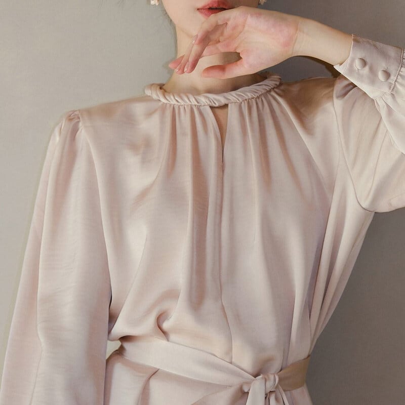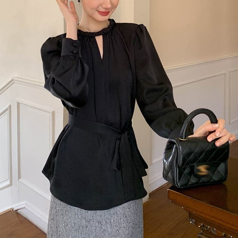 Twist design neck satin blouse M741