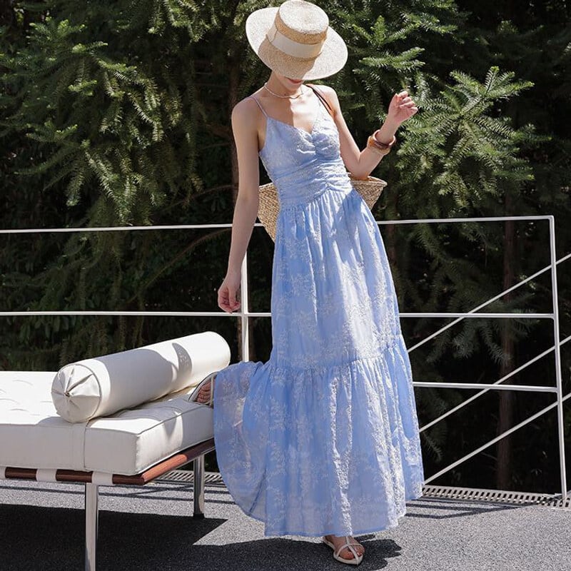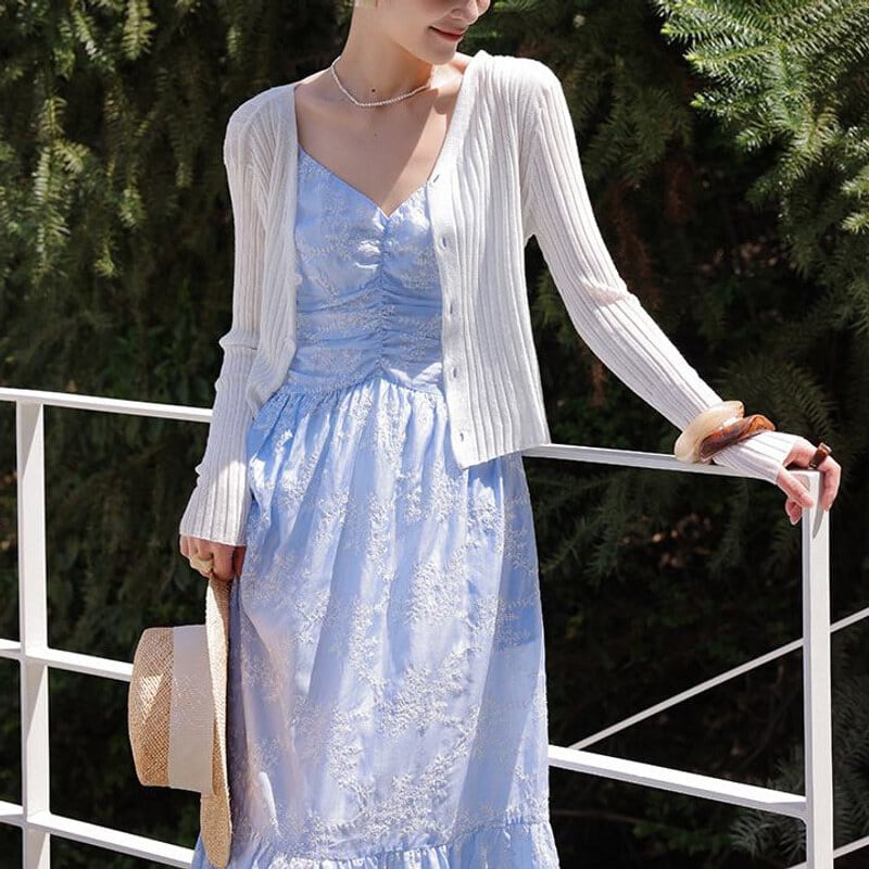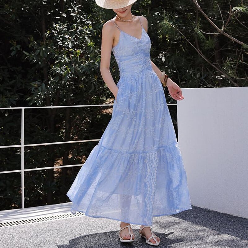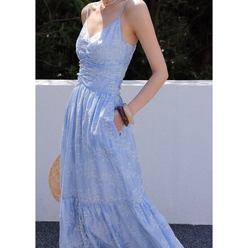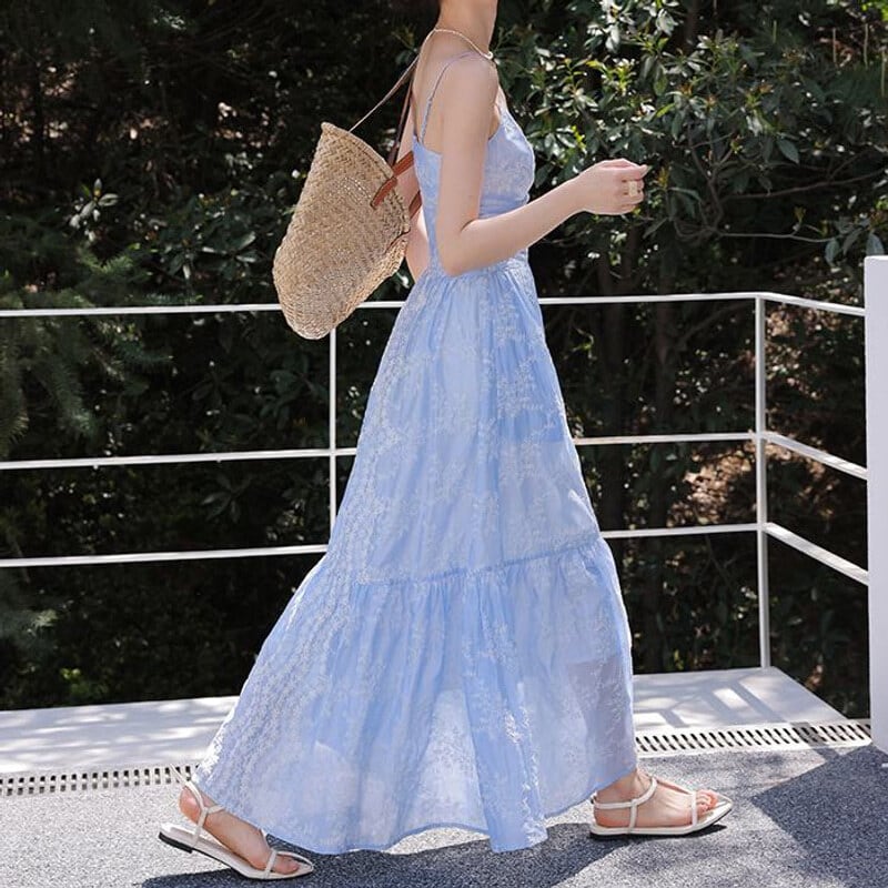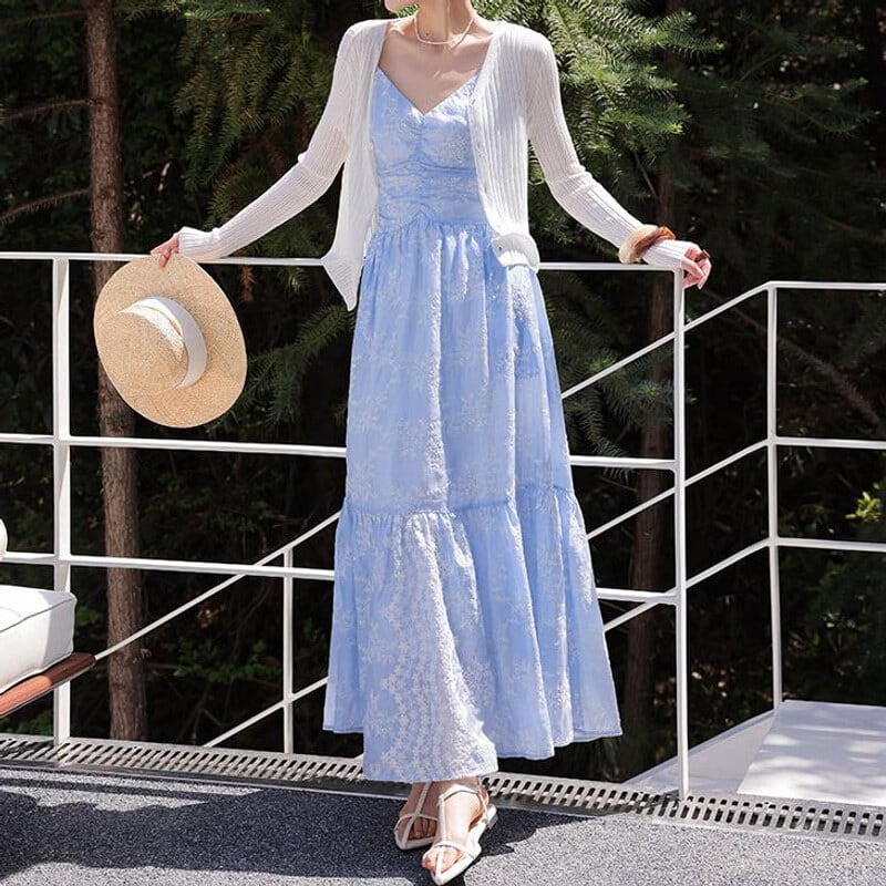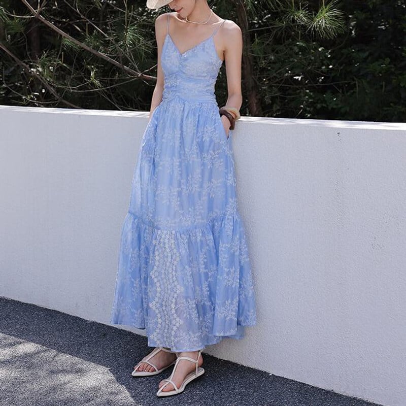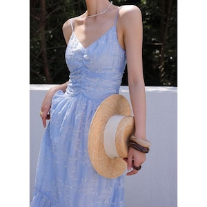 Flower embroidery cami dress M758