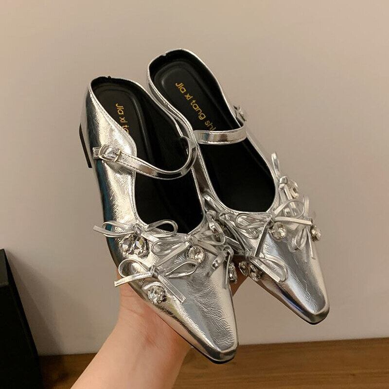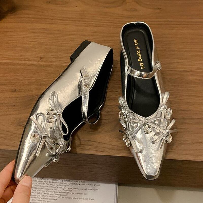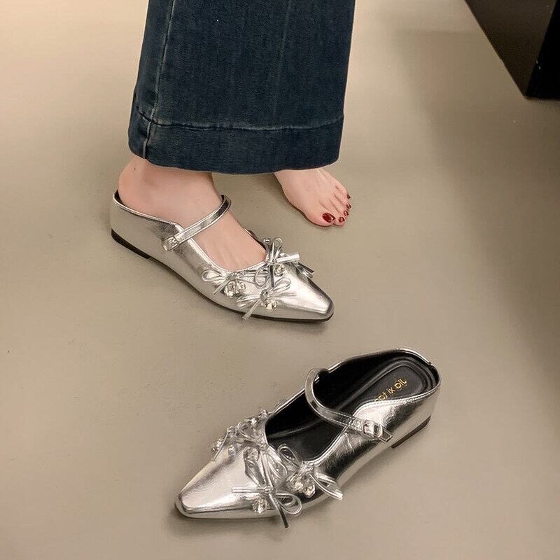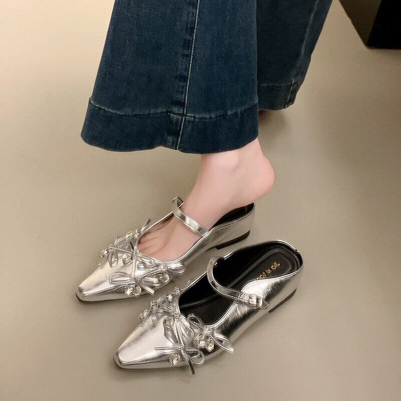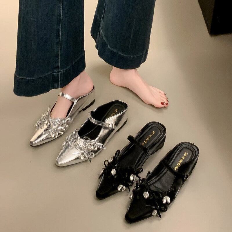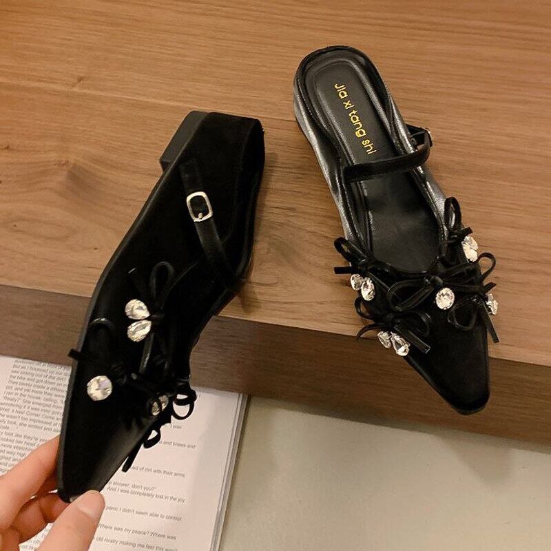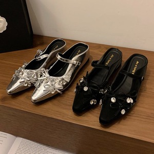 【35-40】Mid heel ribbon mule sandal M805