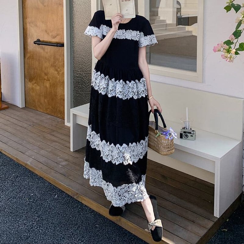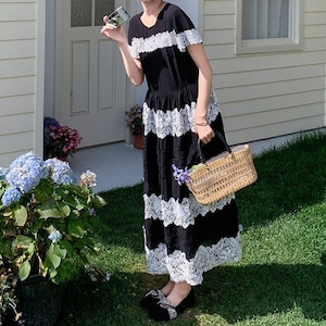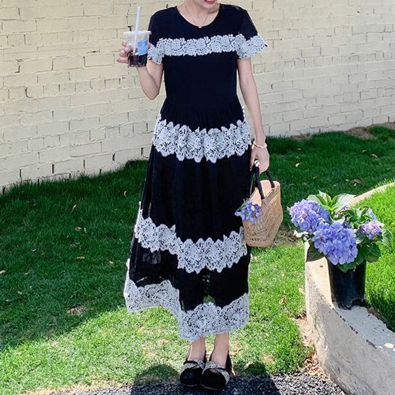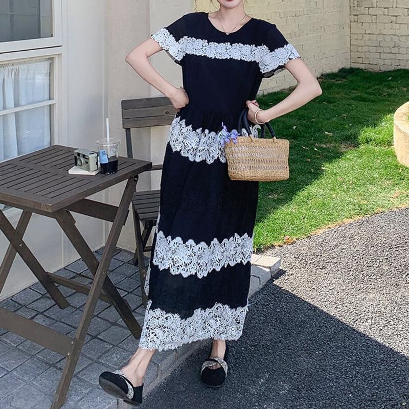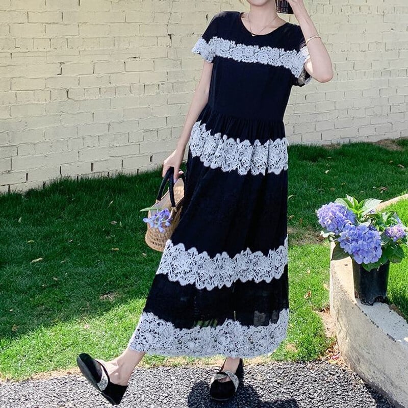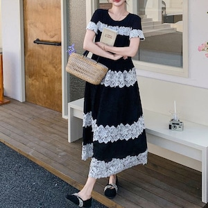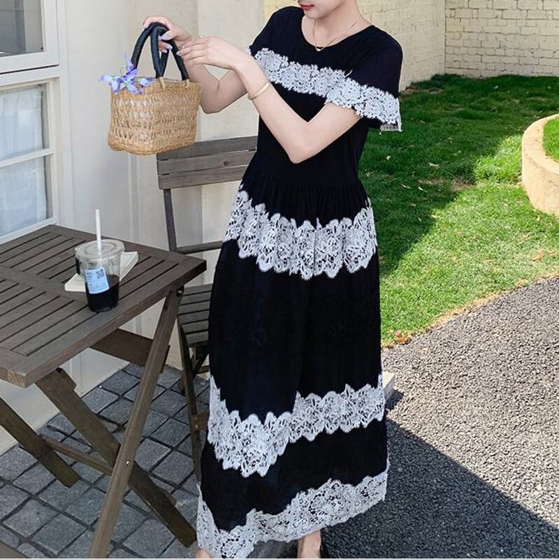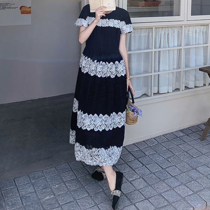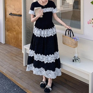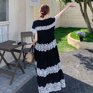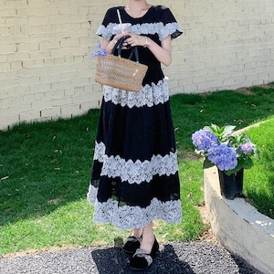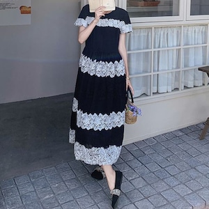 Lace border long dress M859